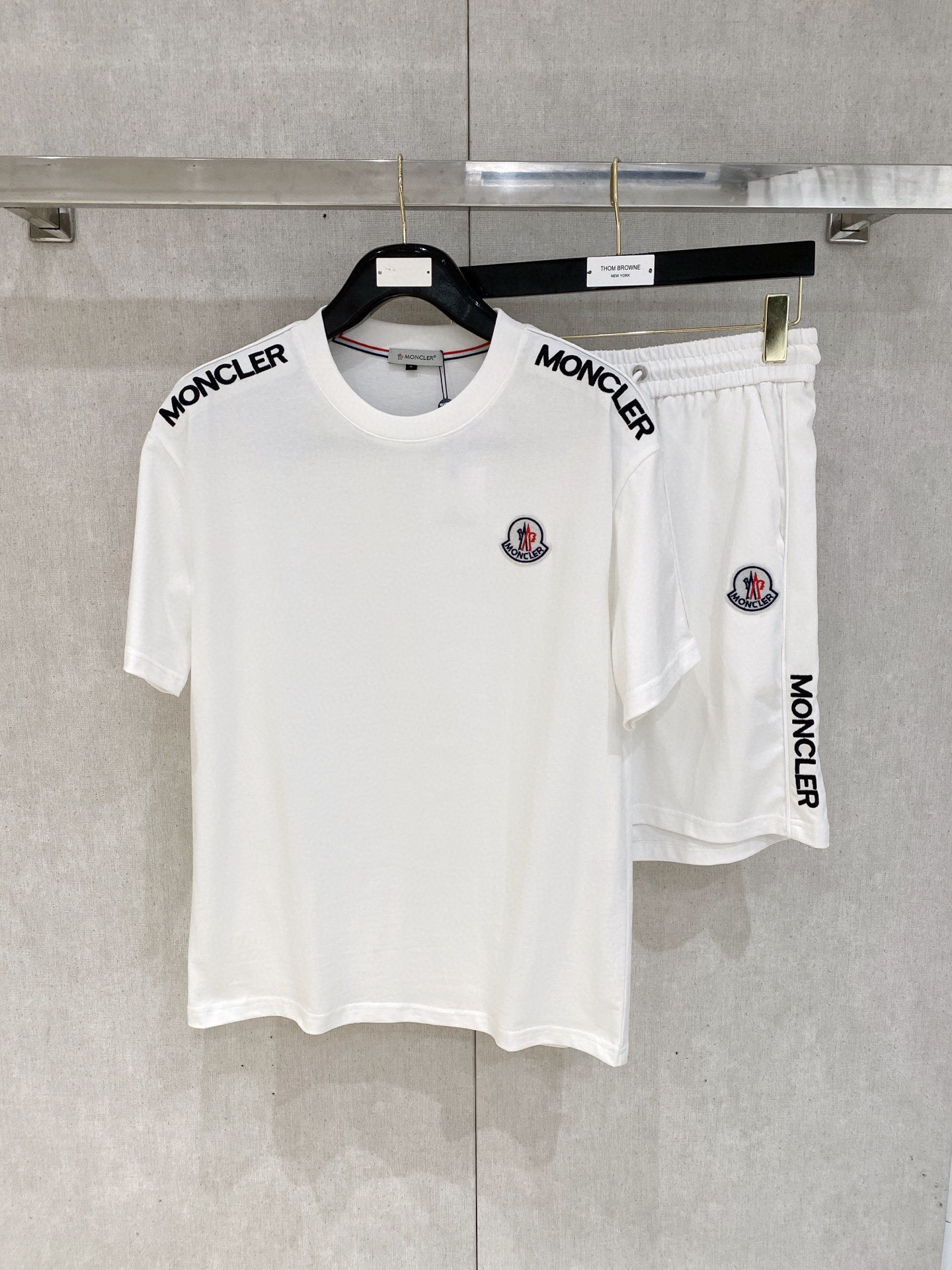 MONCLER 2025 short sleeve & shorts set. Cotton fabric, breathable & comfortable. Classic logo, versatile style. Sizes: M-3XL.