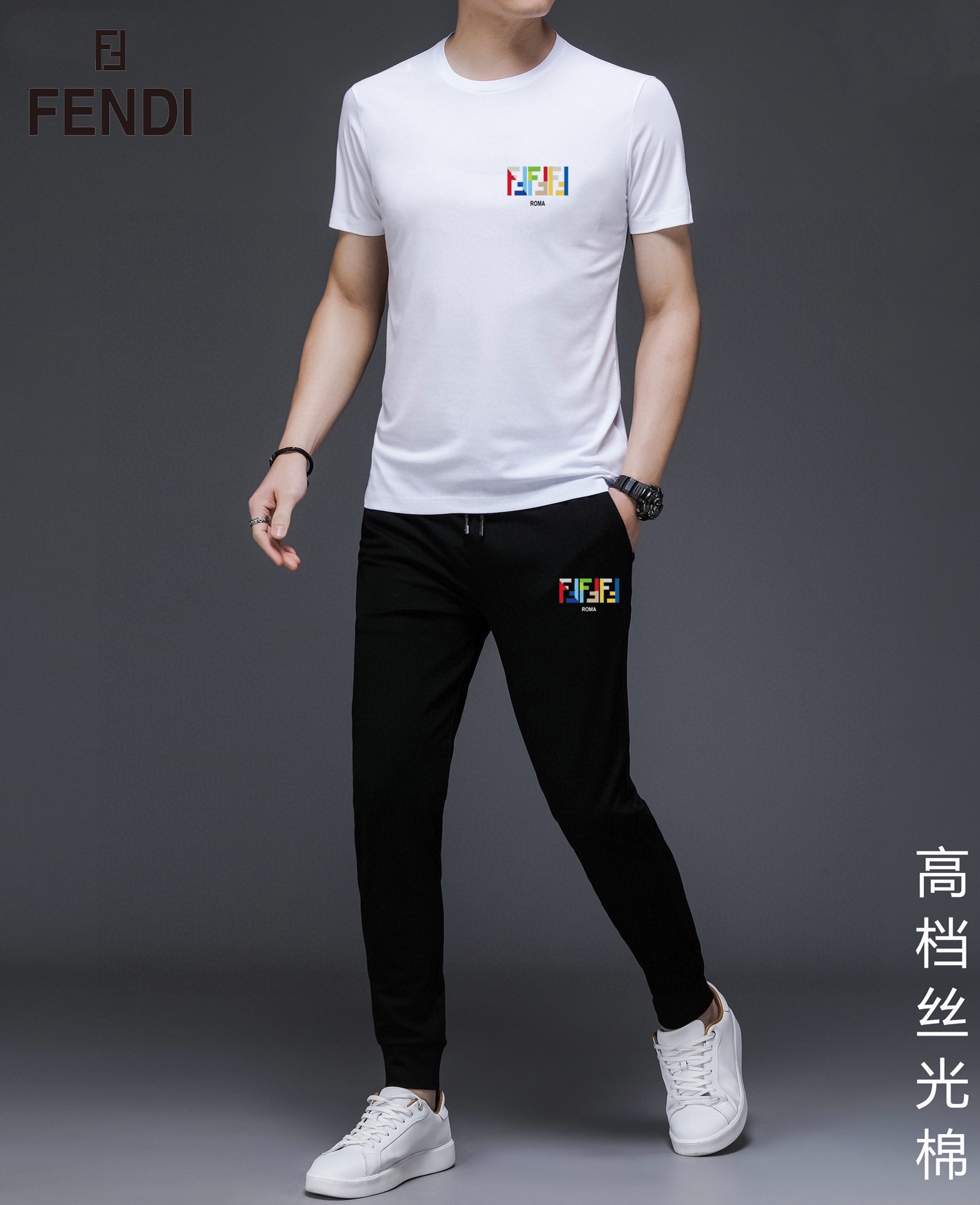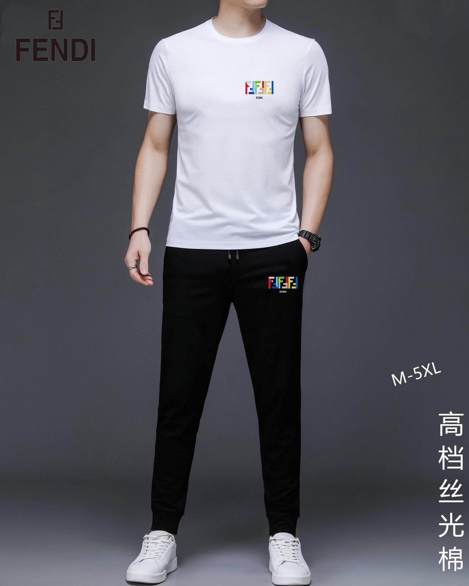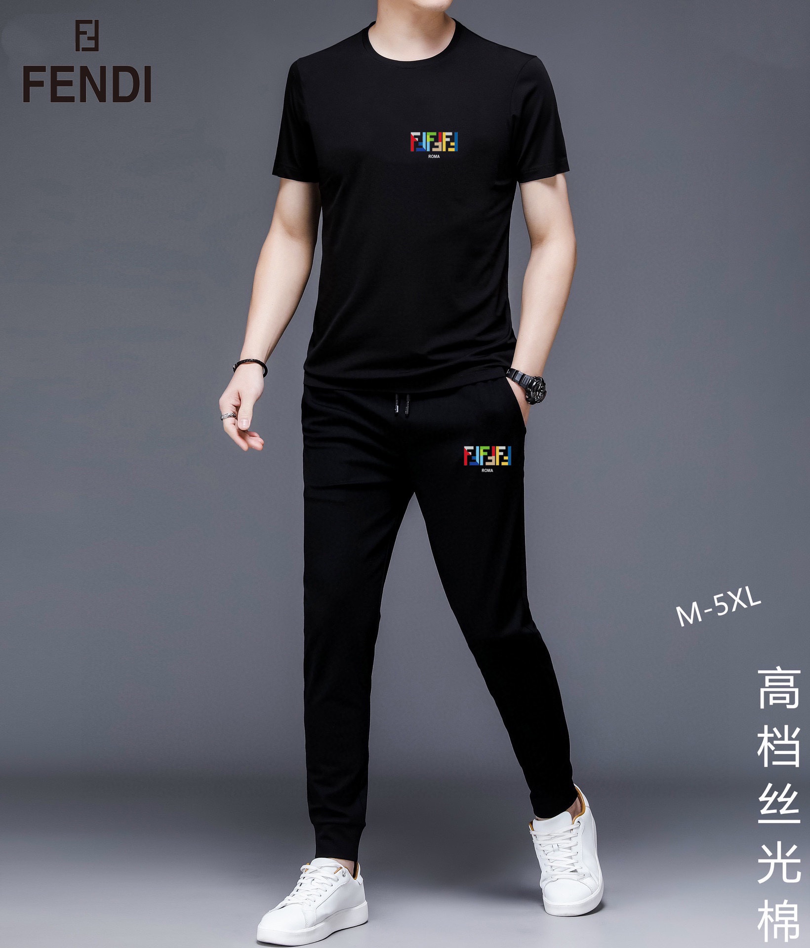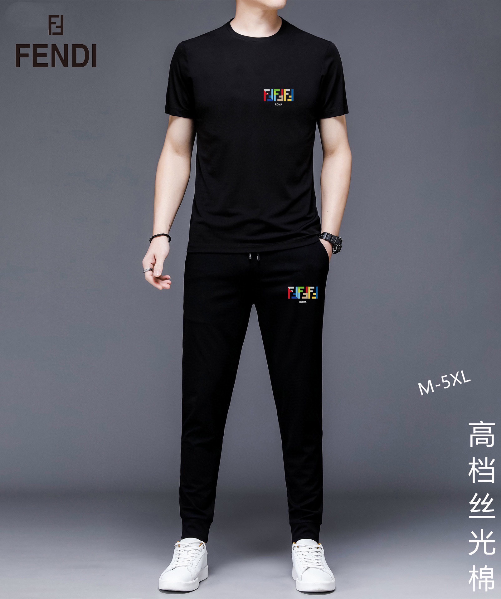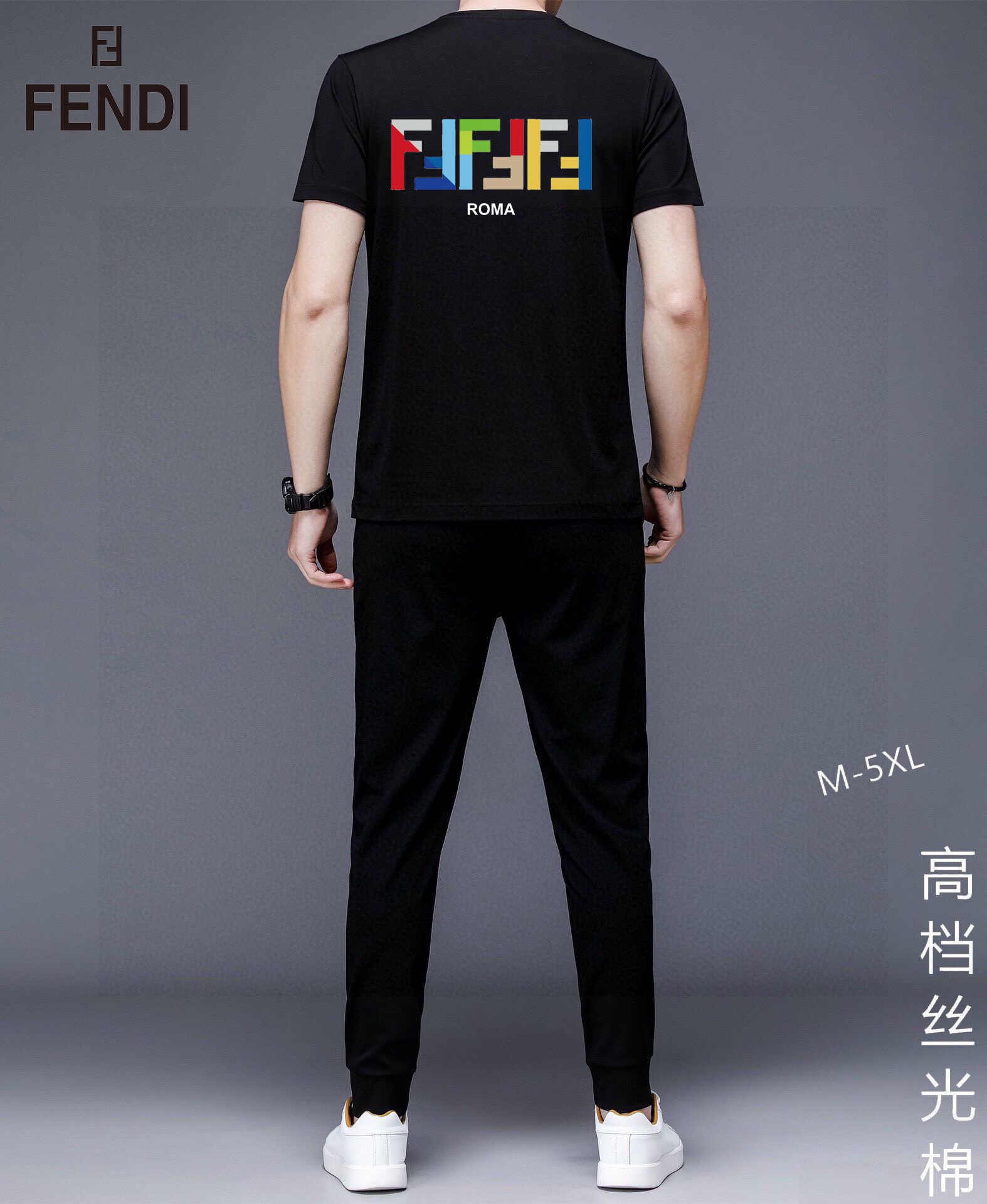 FENDI men's summer dual-gloss luxury set. Imported fabric, trendy design. Sizes M-5XL, fits up to 220 lbs.