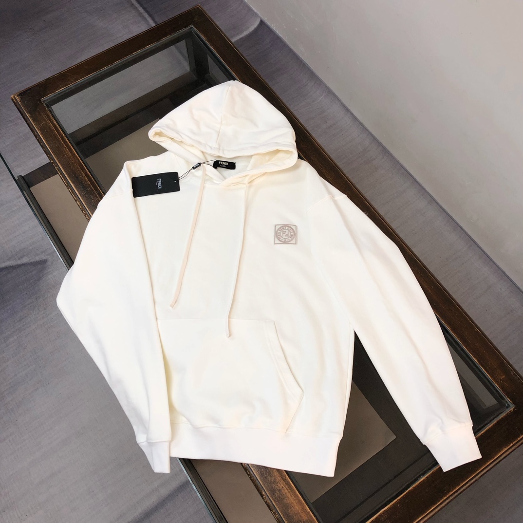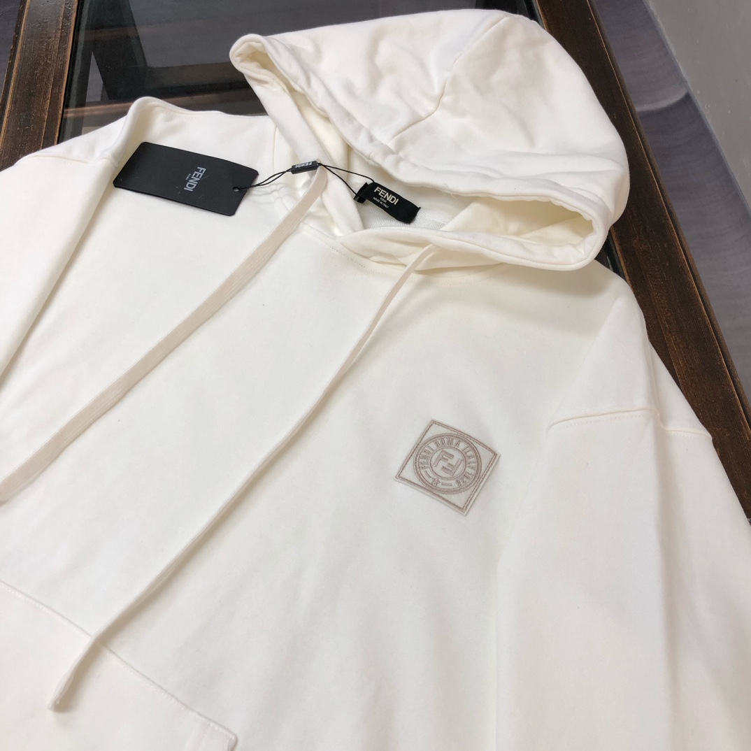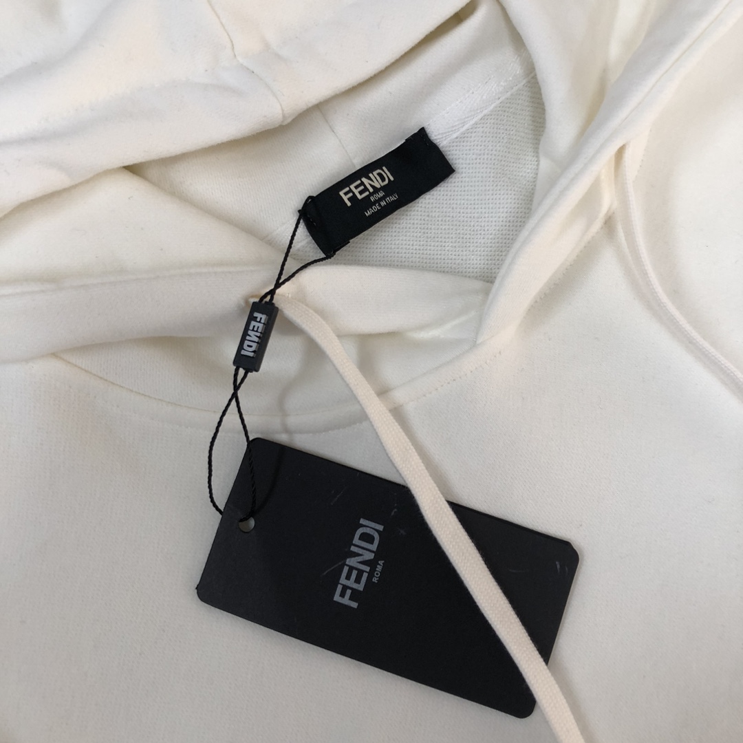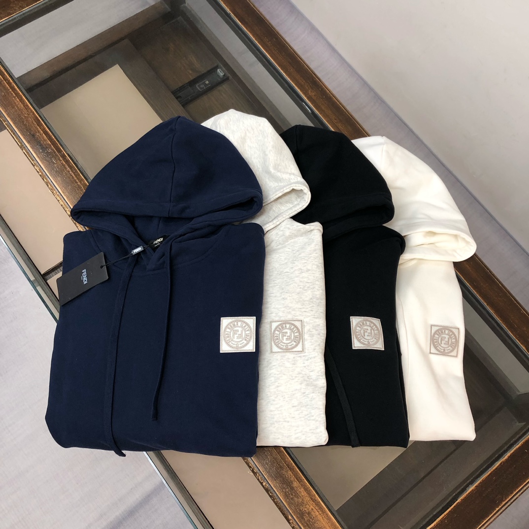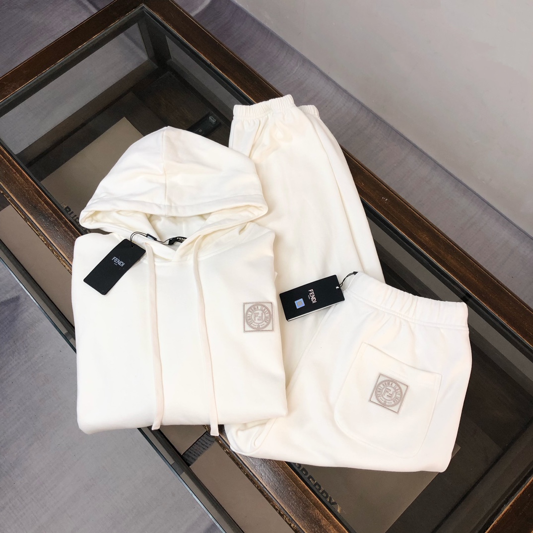 FENDI 2025 early autumn hoodie and jogger set. Custom 420g cotton, breathable fabric. Colors: black, white, blue, gray. Sizes: S to XXL.