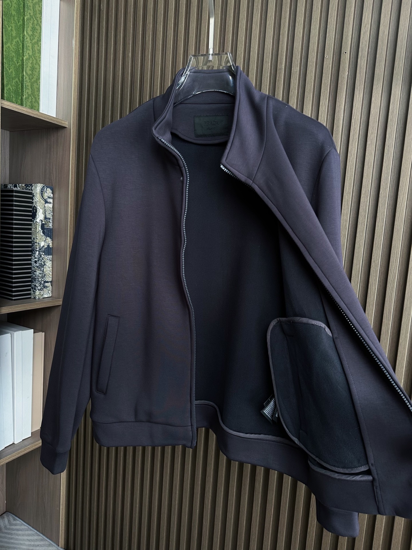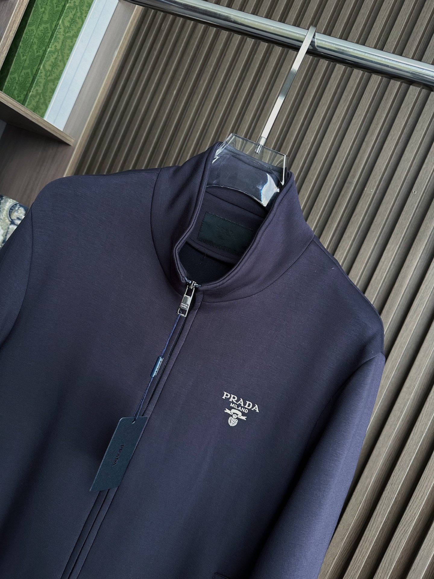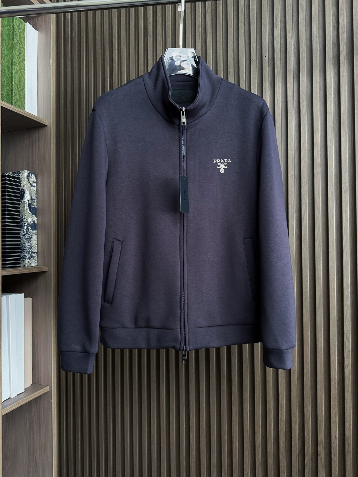 Prada 25FW stand collar set. Imported fabric, soft texture. Side pockets, custom hardware. Colors: Black, Navy. Sizes 48-56.
