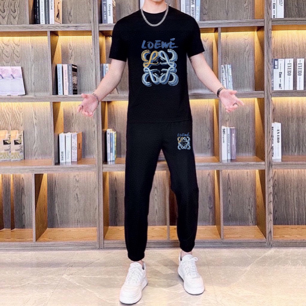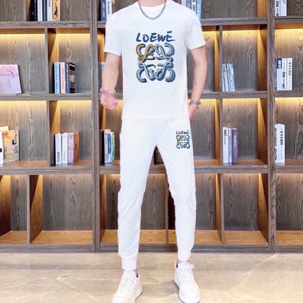 LOEWE men's summer dual-gloss luxury set. Imported fabric, trendy & versatile. Sizes M-5XL (up to 220斤).