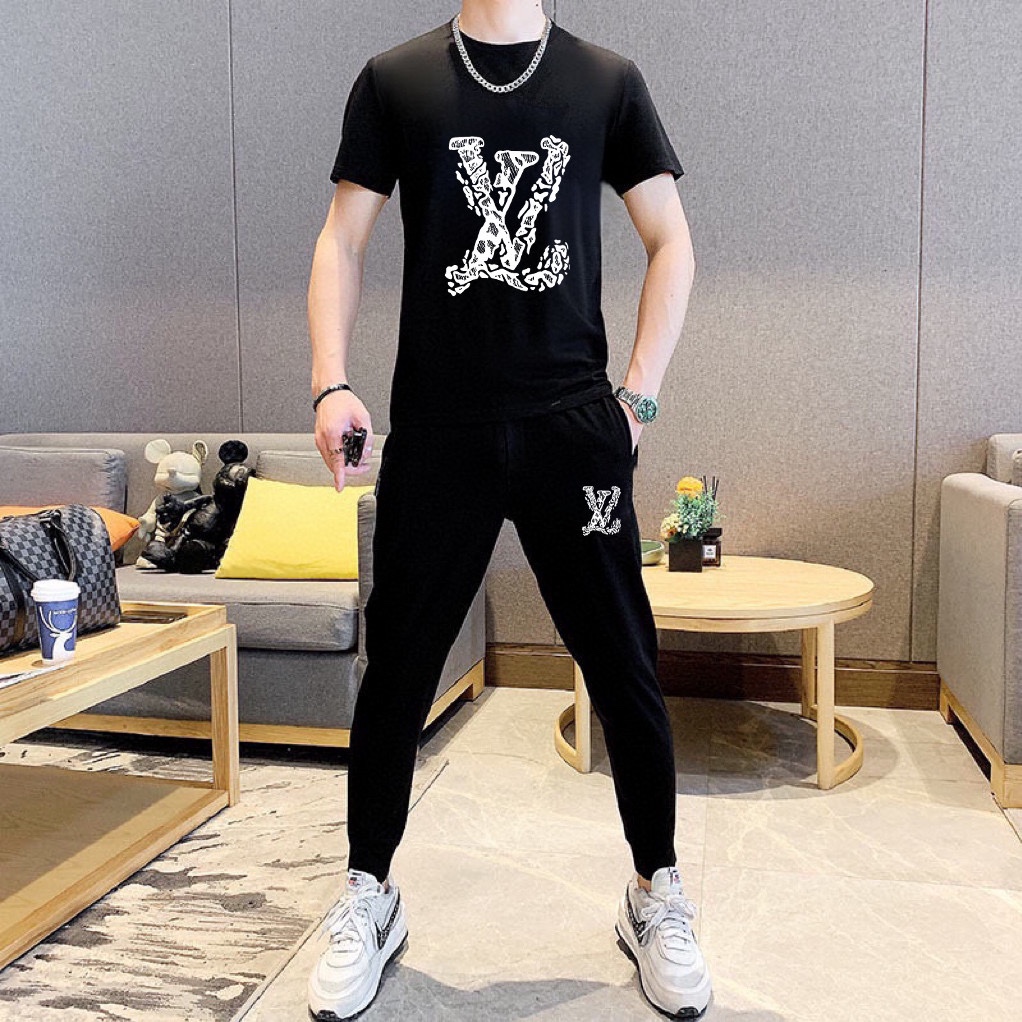 Direct wholesale of Louis Vuitton men's summer high-quality sets. Imported fabric, fashionable design, precise stitching. Sizes M-5XL.