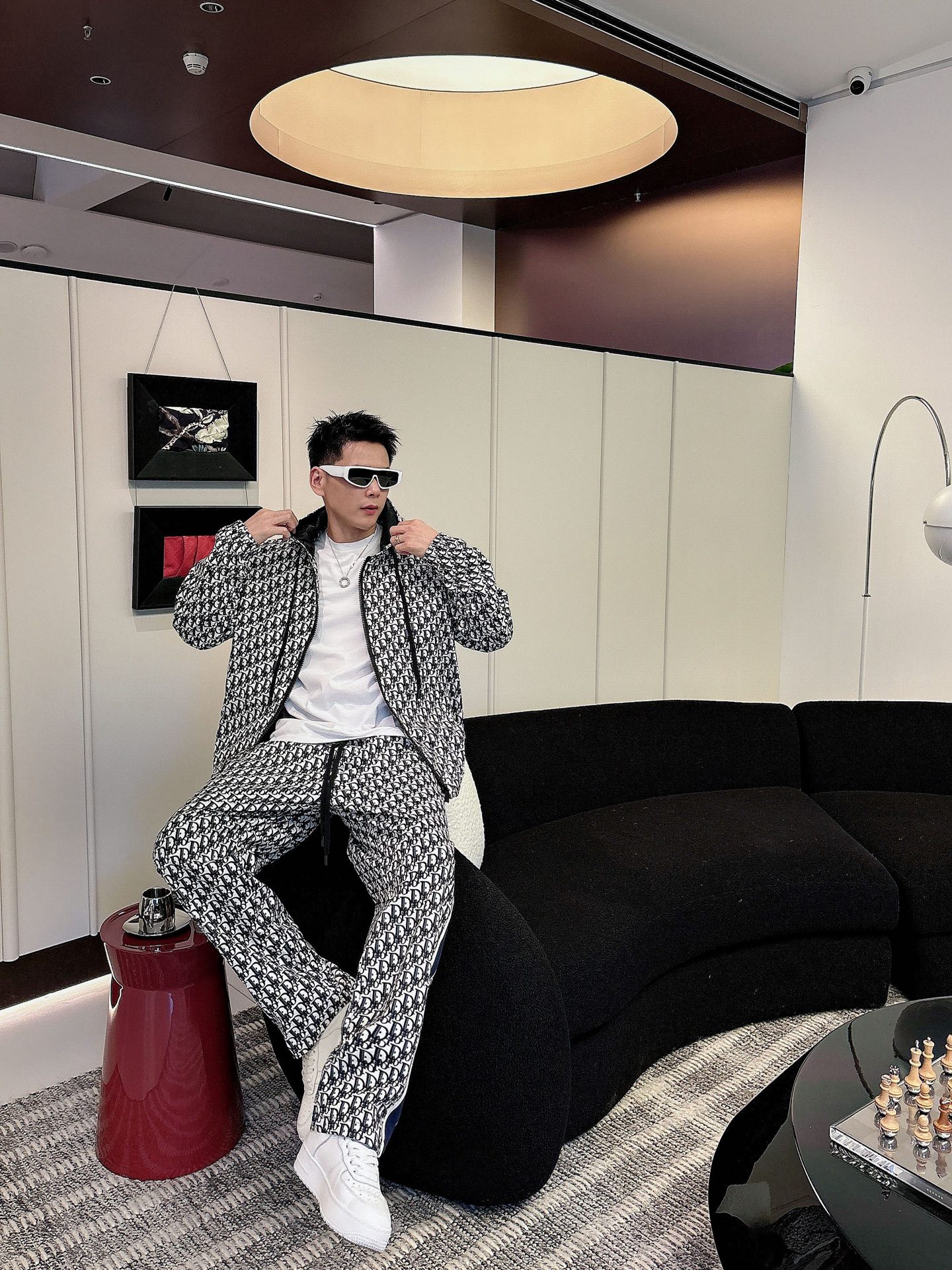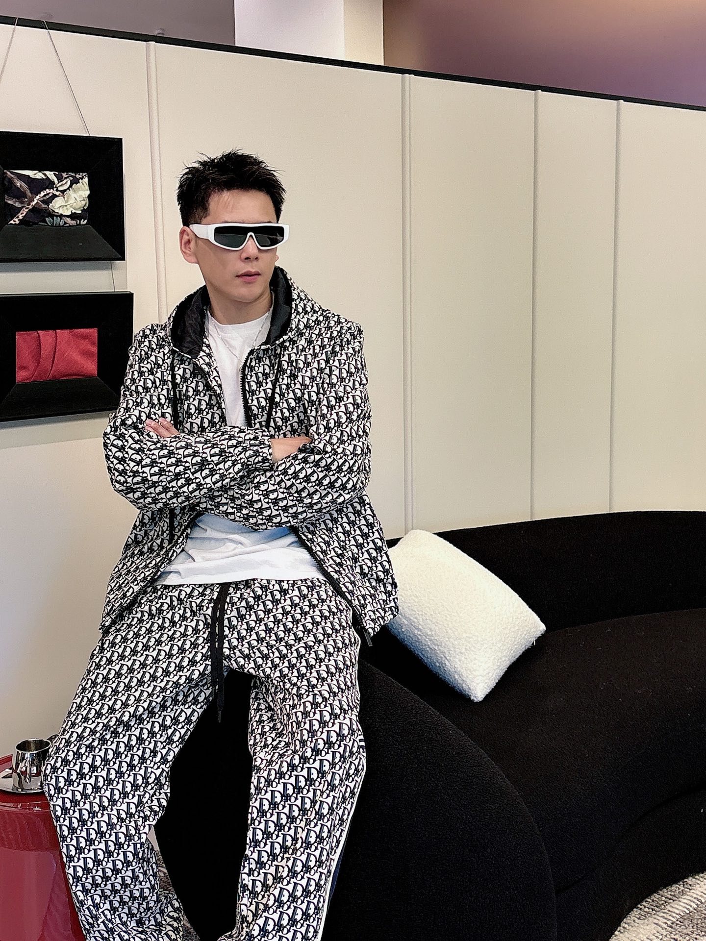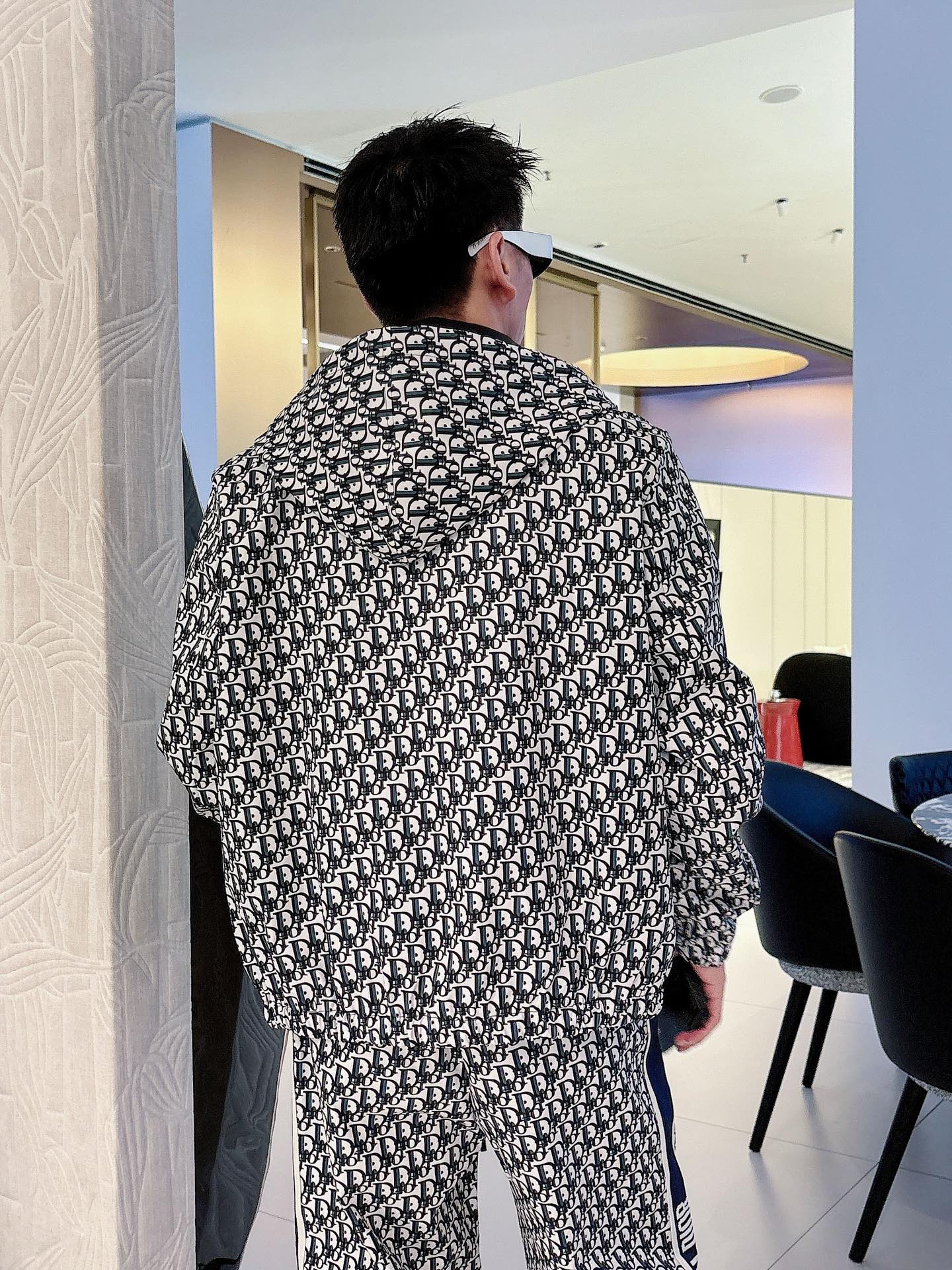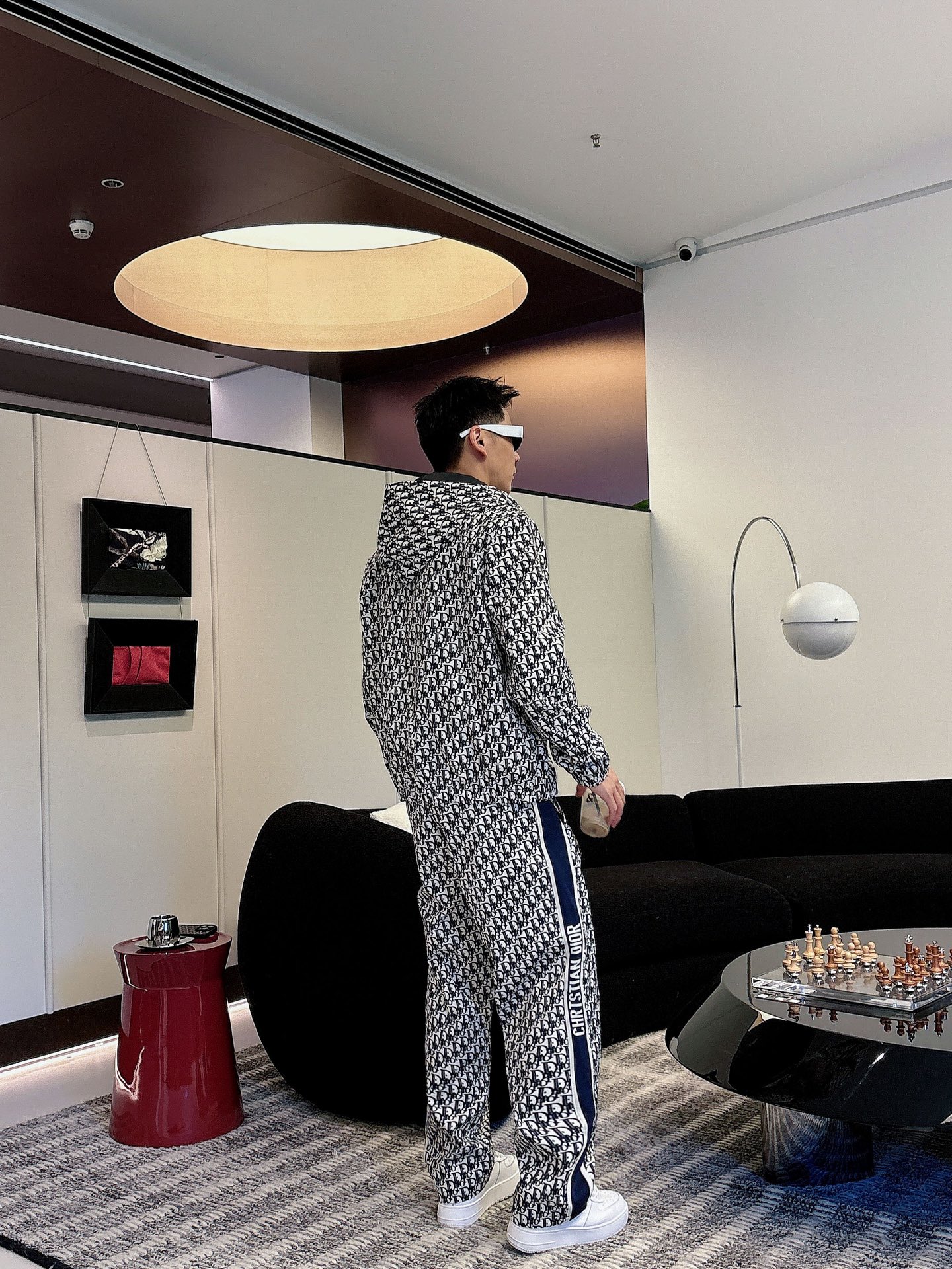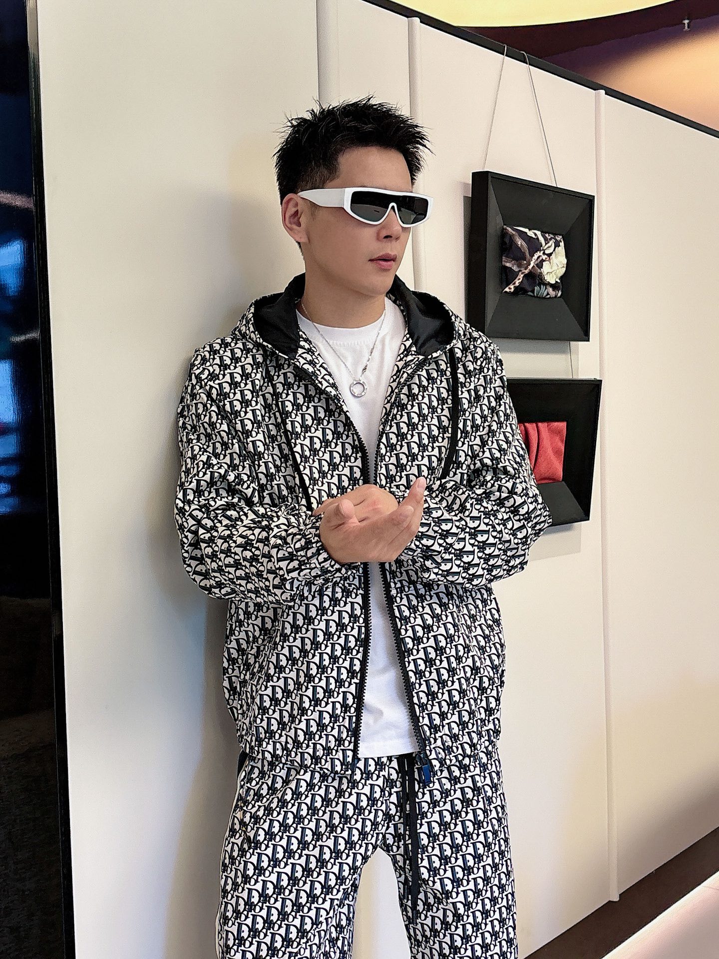Dior casual set 2025 autumn winter imported hooded拼接 design multi zipper pockets premium quality sizes M-3XL