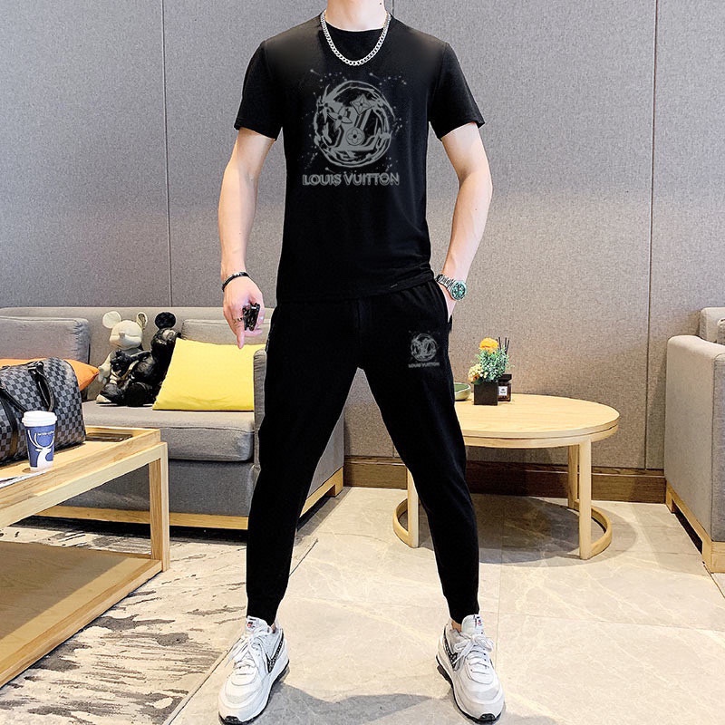 LV Louis Vuitton men's summer high-quality dual-gloss set. Imported fabric, trendy, versatile. Sizes M-5XL (up to 220 lbs).