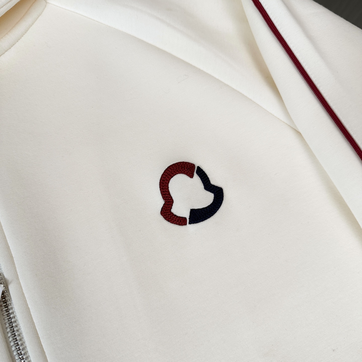 Moncler three-piece set: hooded jacket, hoodie, pants. Custom cotton blend, embroidered logo, slim fit. Lightweight, warm, minimalist style. Sizes M-3XL, colors: black, blue, off-white.