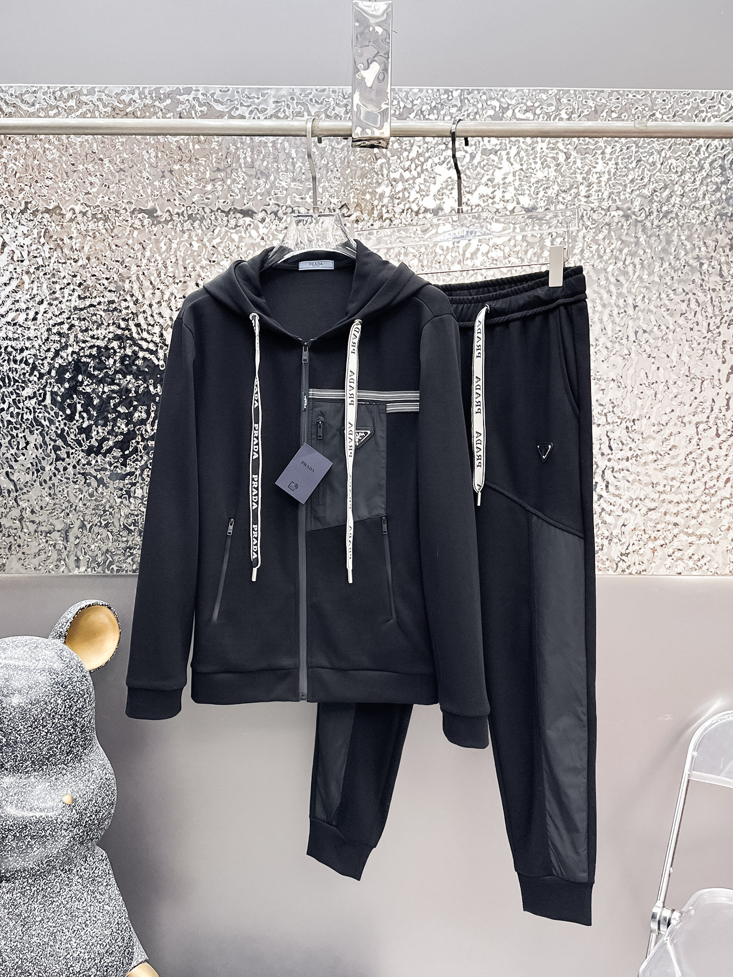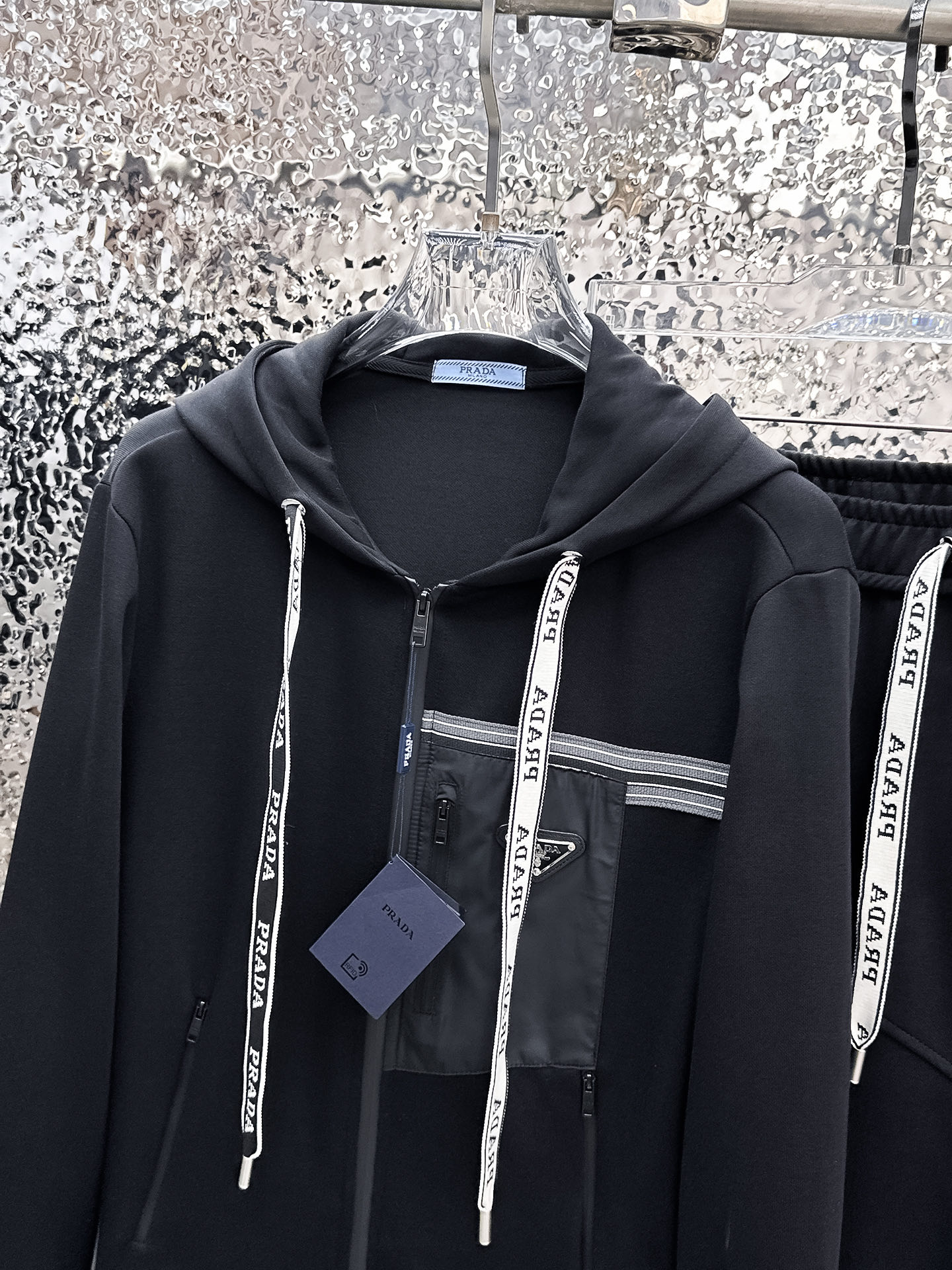 Prada premium version. Original quality with complete labels. 2025 autumn/winter imported design. Perfect inner stitching, comfortable wear. High-end custom imported fabric. Zippered cardigan set. Luxury boutique style. Sizes M-XXXL.