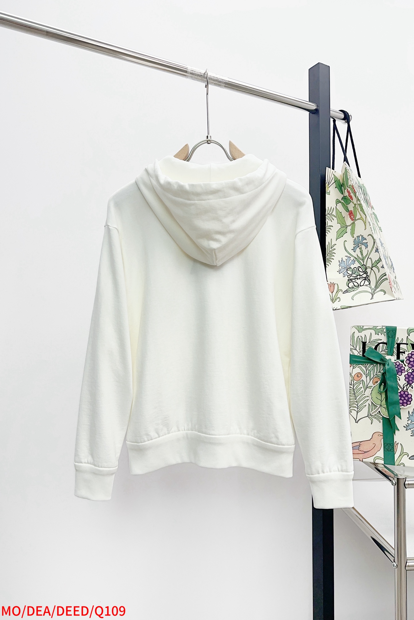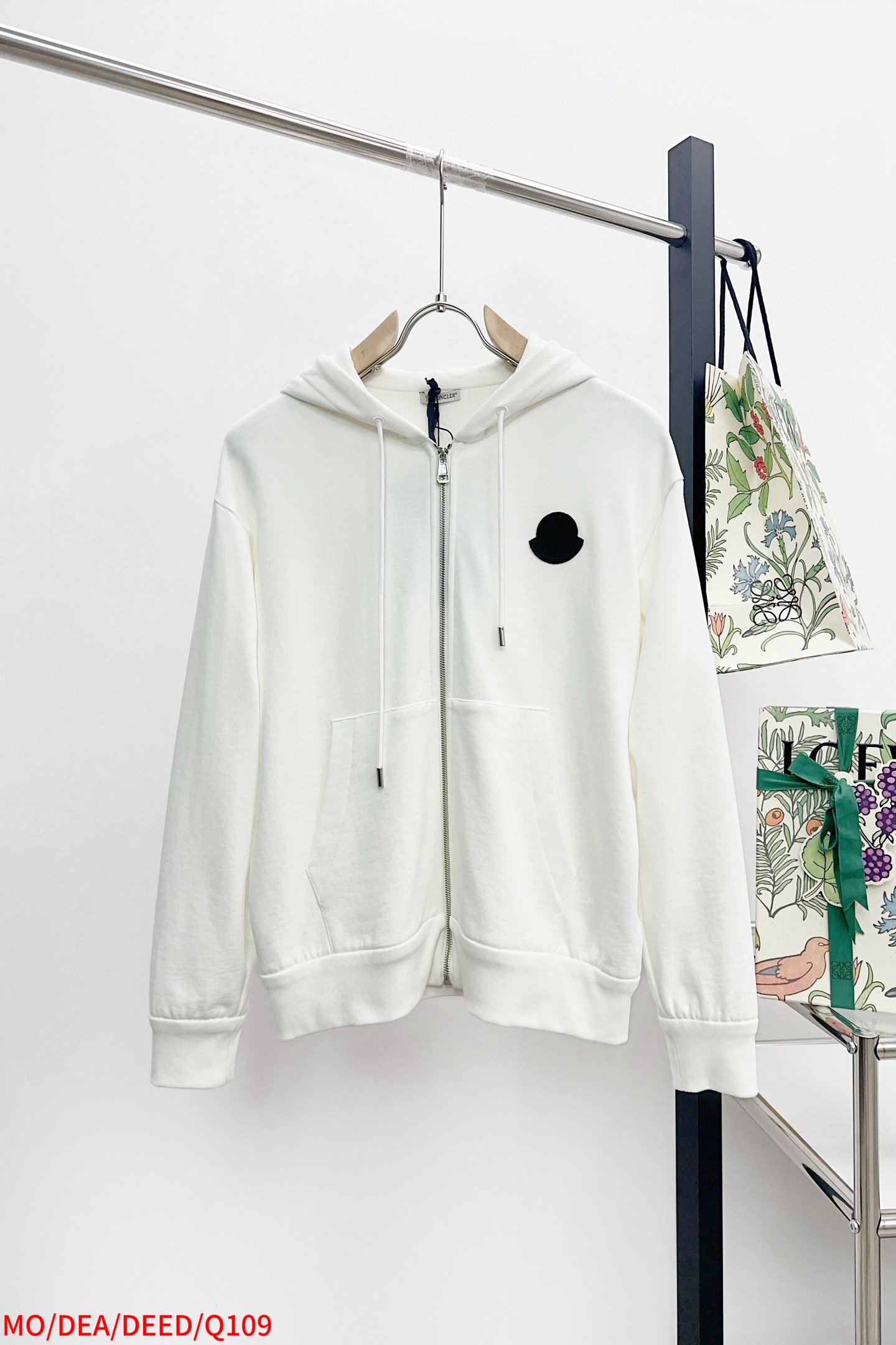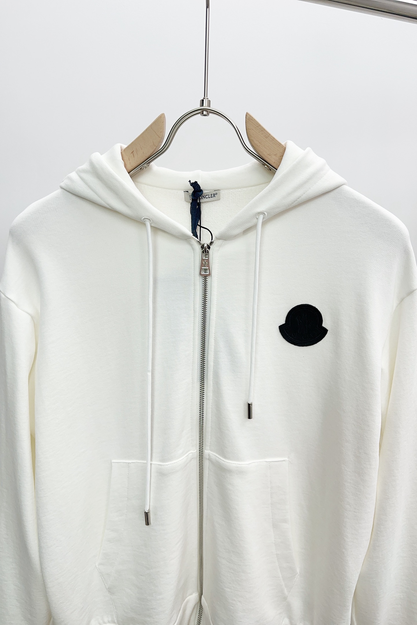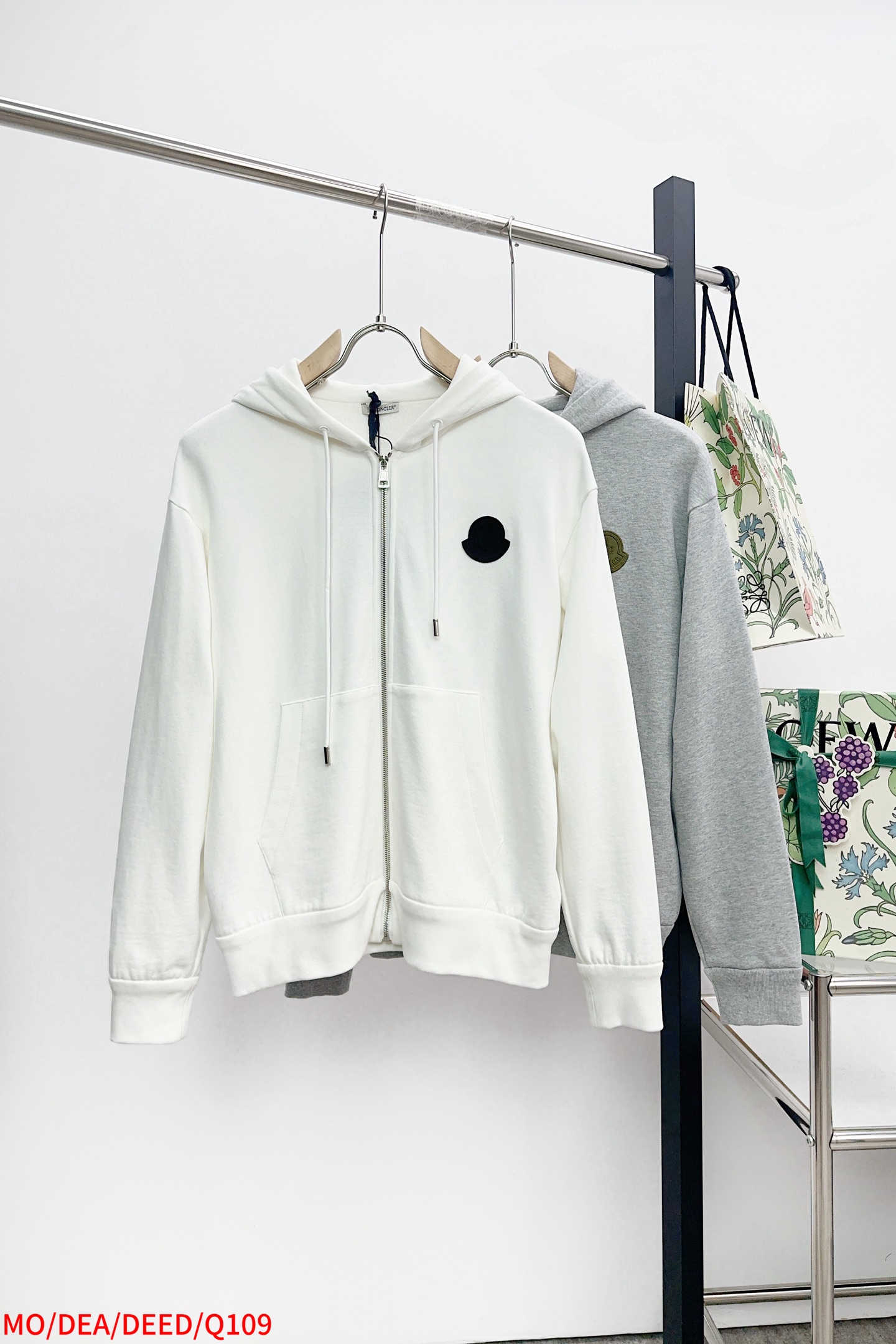 Moncler 25AW hooded cotton set, white/gray, sizes S-XL, tags included.