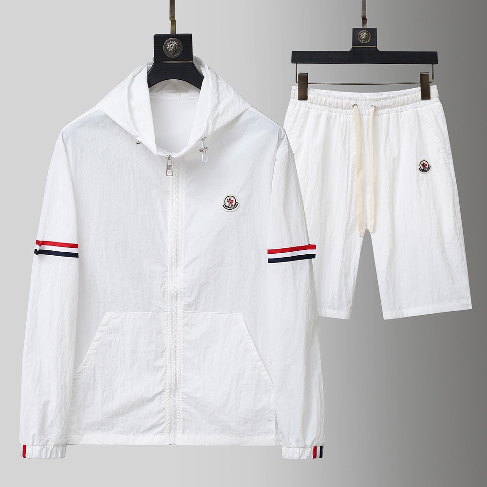 Moncler 2025 SS windbreaker & shorts set. Lightweight, UV protection, full logos. High-quality materials, custom hardware. Available in M-3XL.