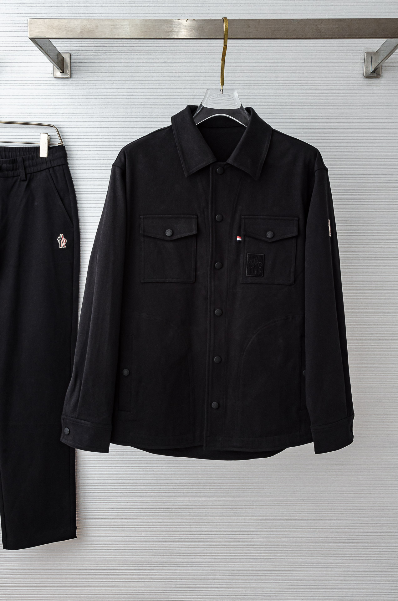 Moncler 2025FW 100% cotton casual set with straight-leg pants and lapel jacket. Premium Xinjiang cotton, breathable and anti-static. Classic, versatile design. Sizes M-3XL.