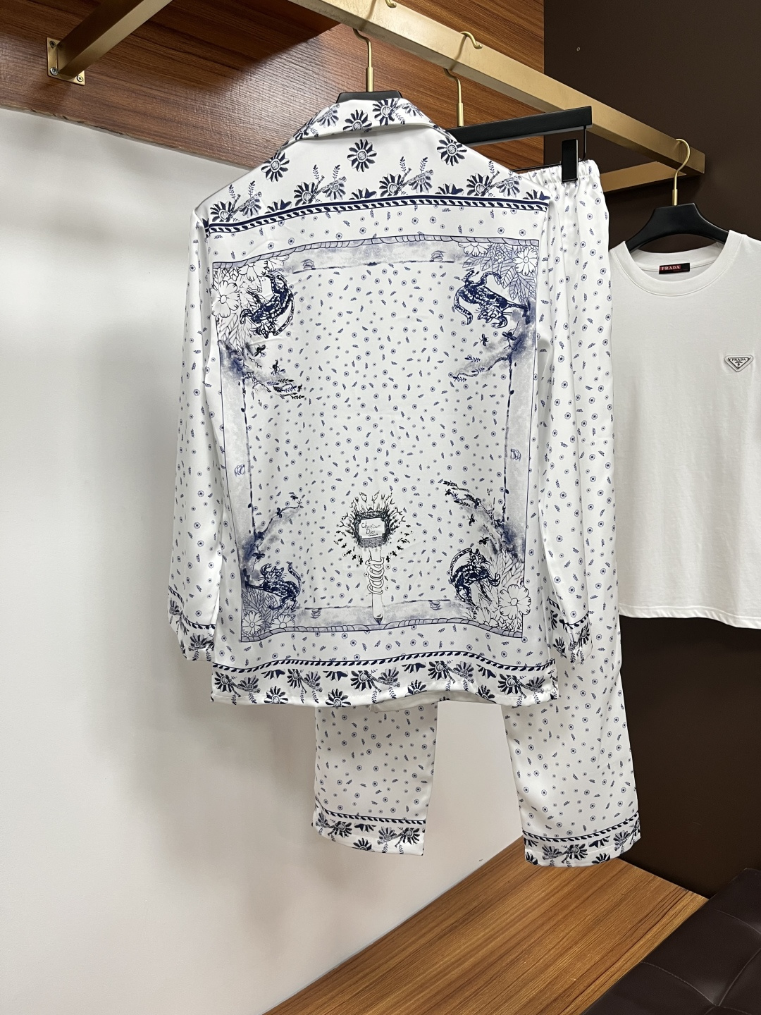 Dior couples loungewear pajama set, 2025 fall. Custom silk fabric, breathable & comfortable. Meticulous details, brand elements. Soft, relaxed cut, great fit. Sizes M-3XL. Provide height/weight.