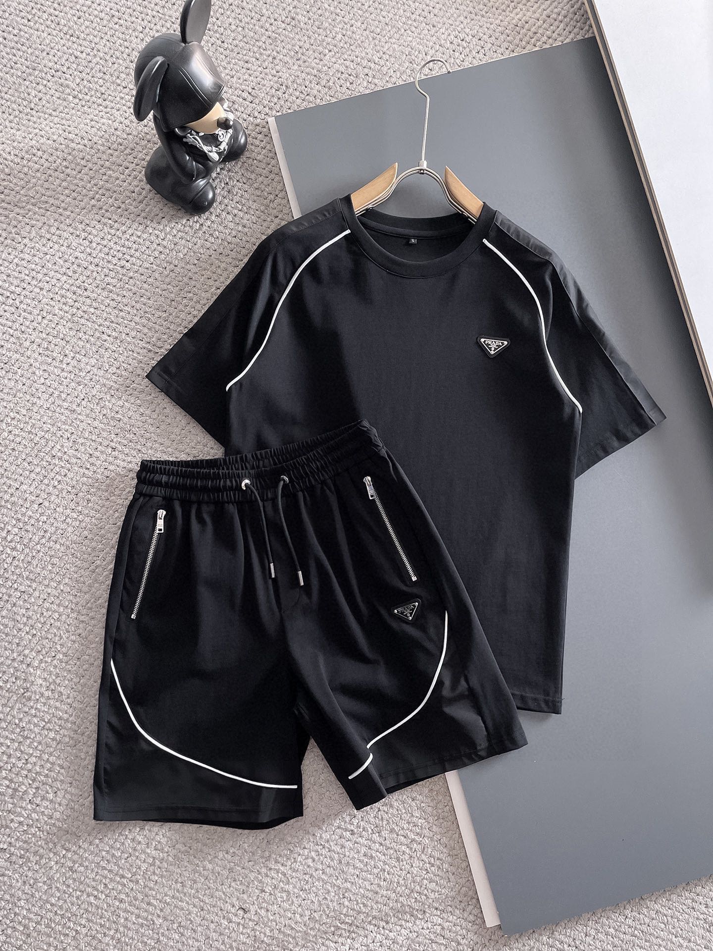 PRADA 2025 cotton short-sleeve set. Breathable, smooth, classic logo. Sizes M-3XL.