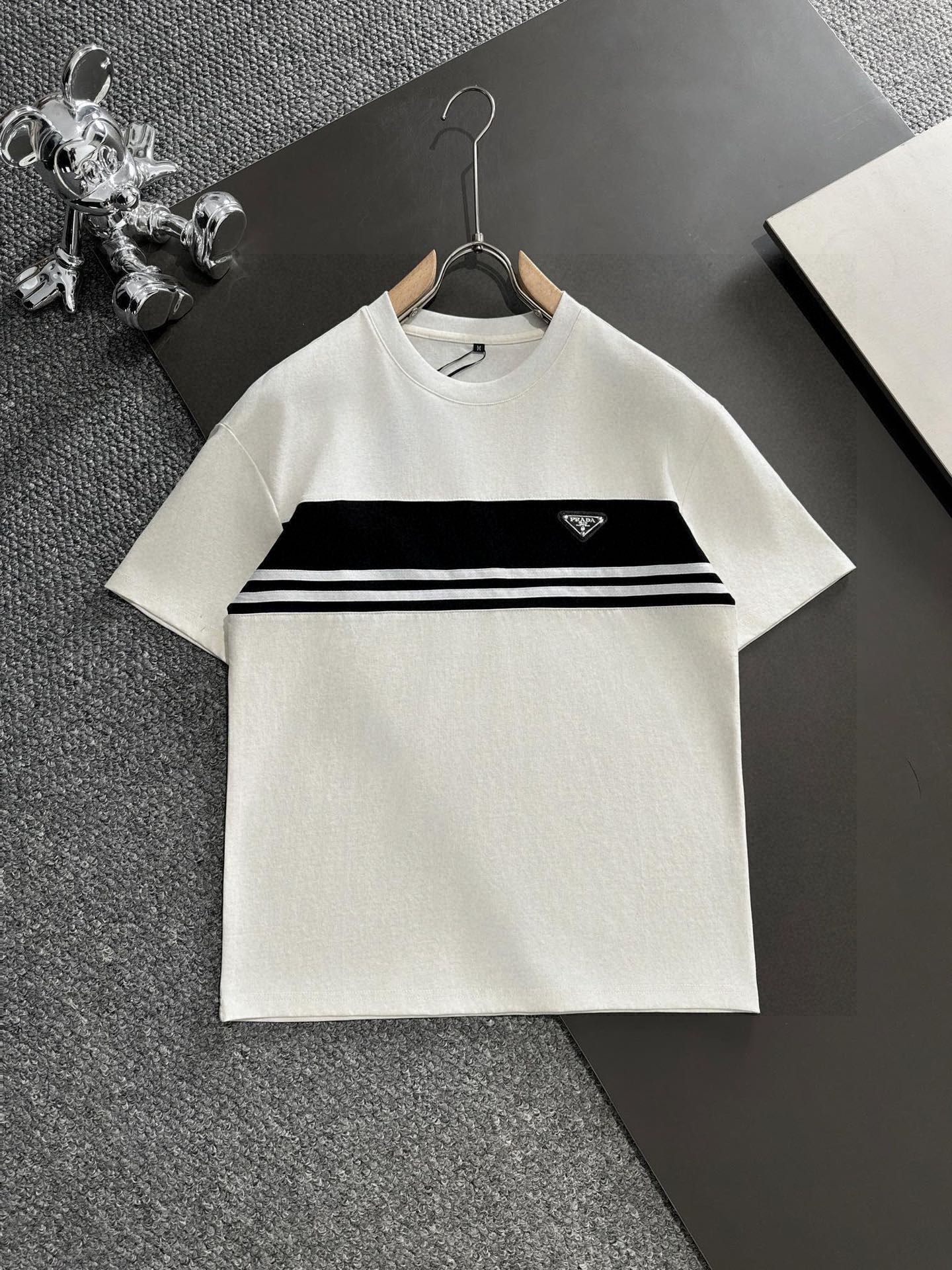 PRADA 2025 cotton short-sleeve set, breathable and comfortable with classic logo. Sizes M-3XL.