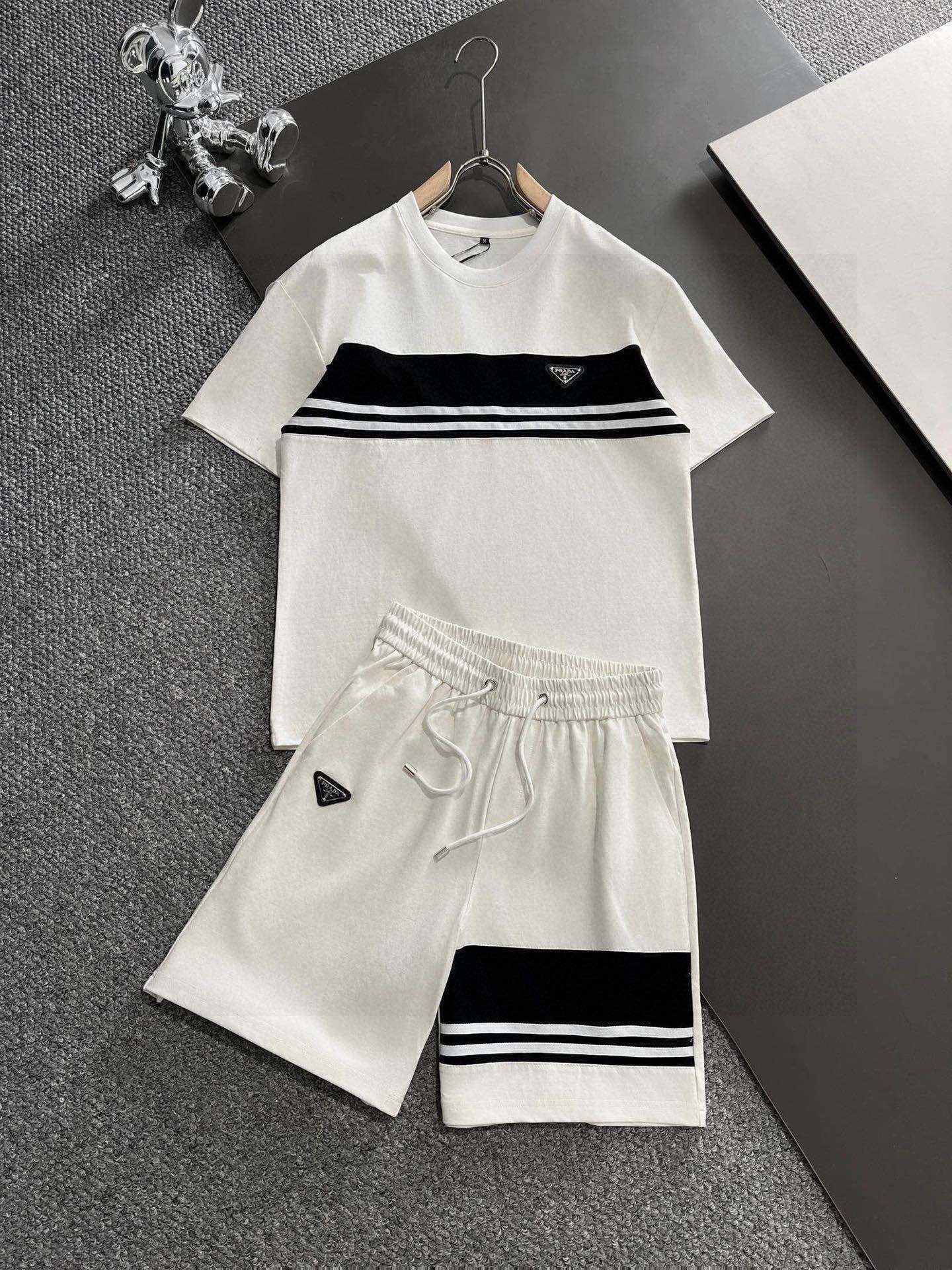 PRADA cotton T-shirt and shorts set. Breathable fabric with classic logo. Sizes M-3XL.