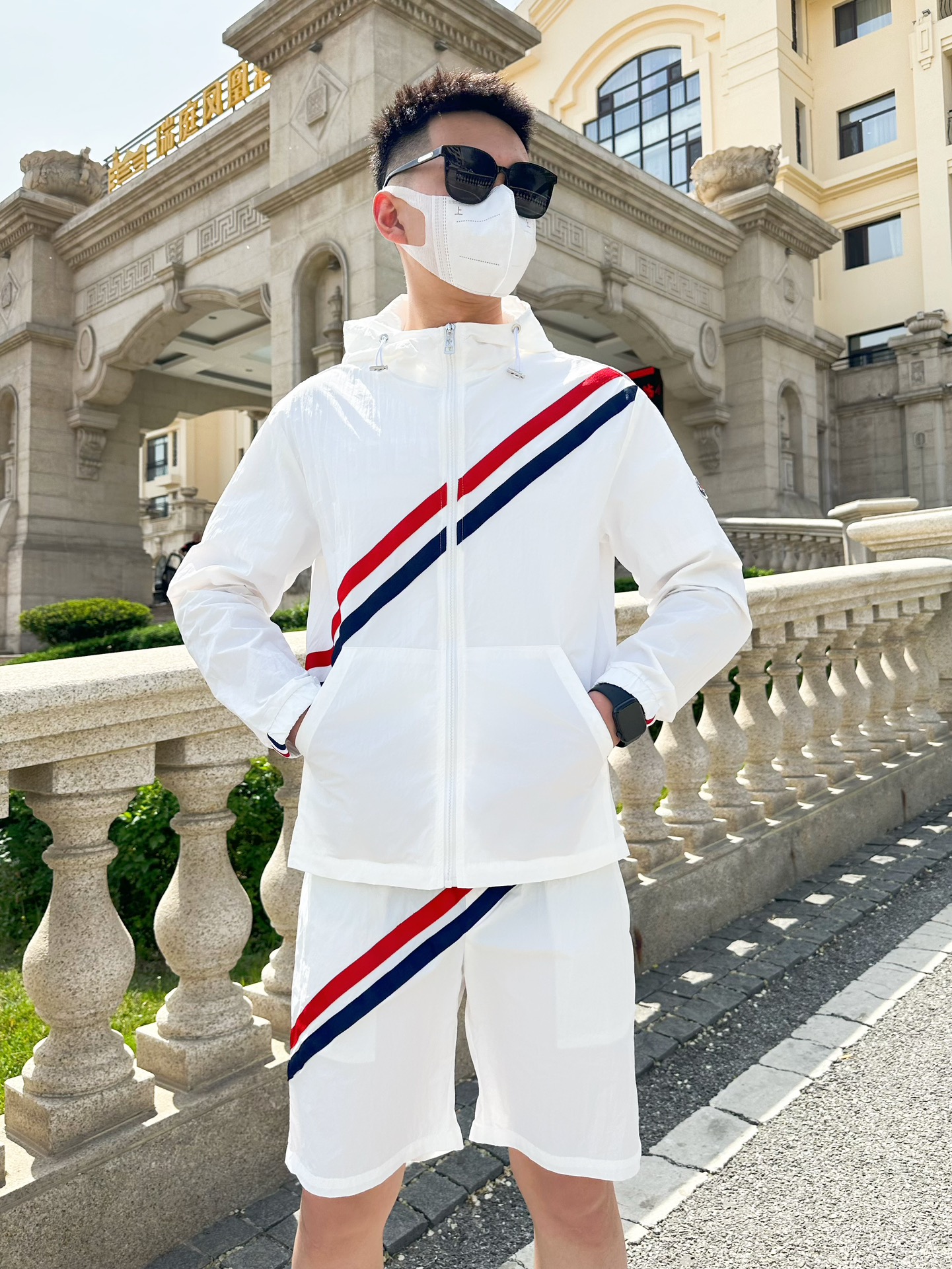 Moncler 2025 summer sun protection shorts set. Lightweight high-quality fabric, comfortable and breathable. Made by top domestic factory. Sizes M-XXXL. Provide height/weight when ordering.