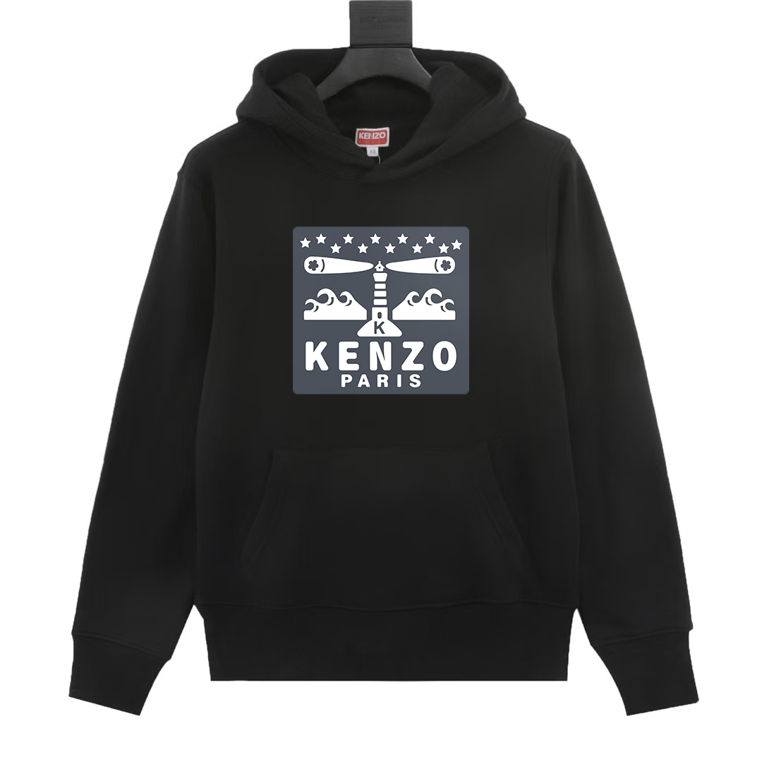 KENZO new print hoodie, 420g terry. Colors: Black, Gray. Sizes: XS-L.