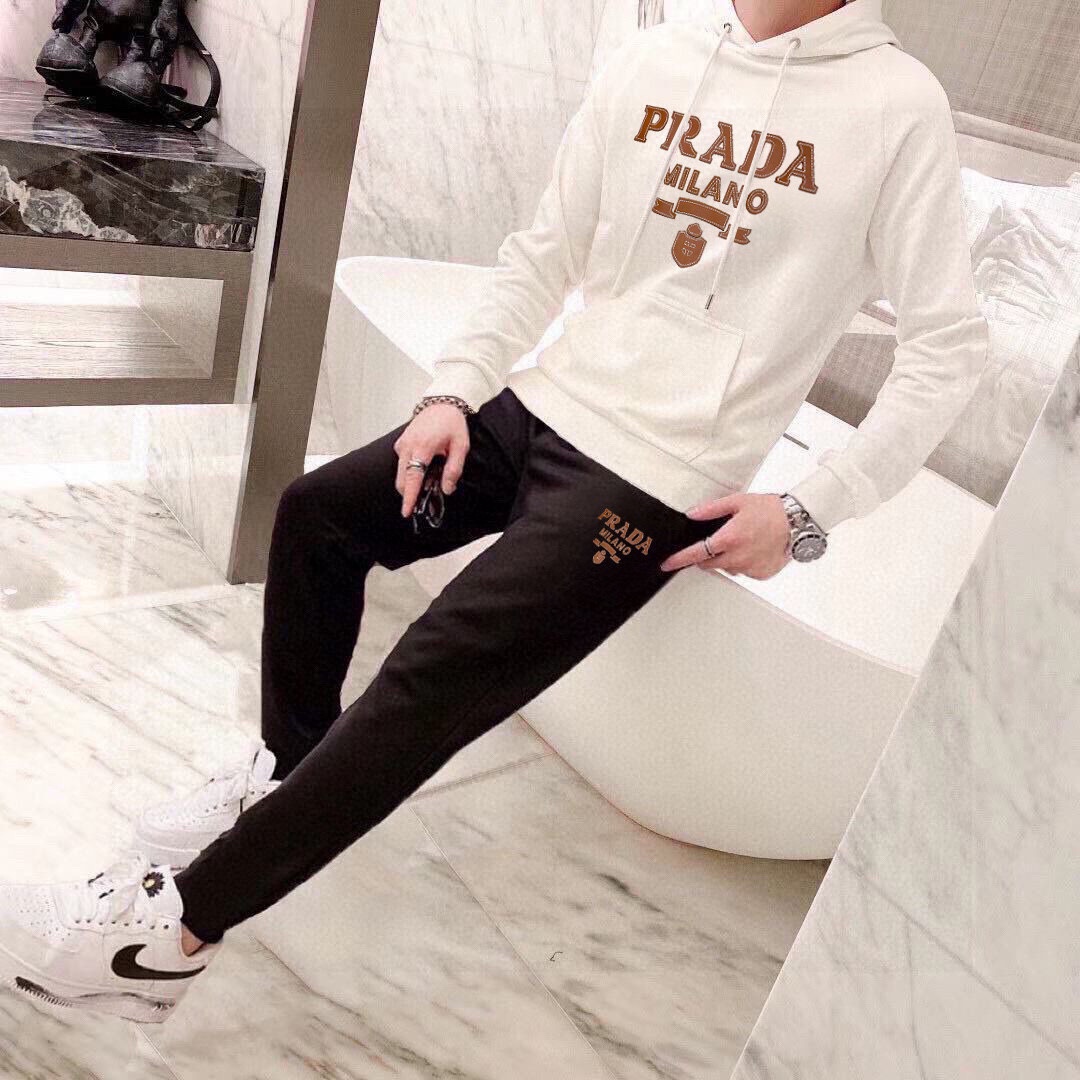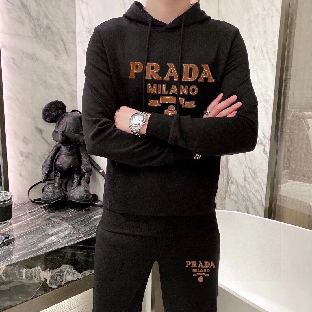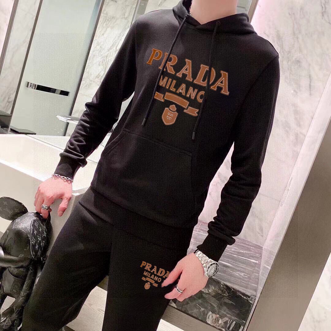 Prada 2025 new hoodie set. Top designer, 100% Roman cotton, comfortable and elegant. Sizes M-5XL (fits up to 220kg).