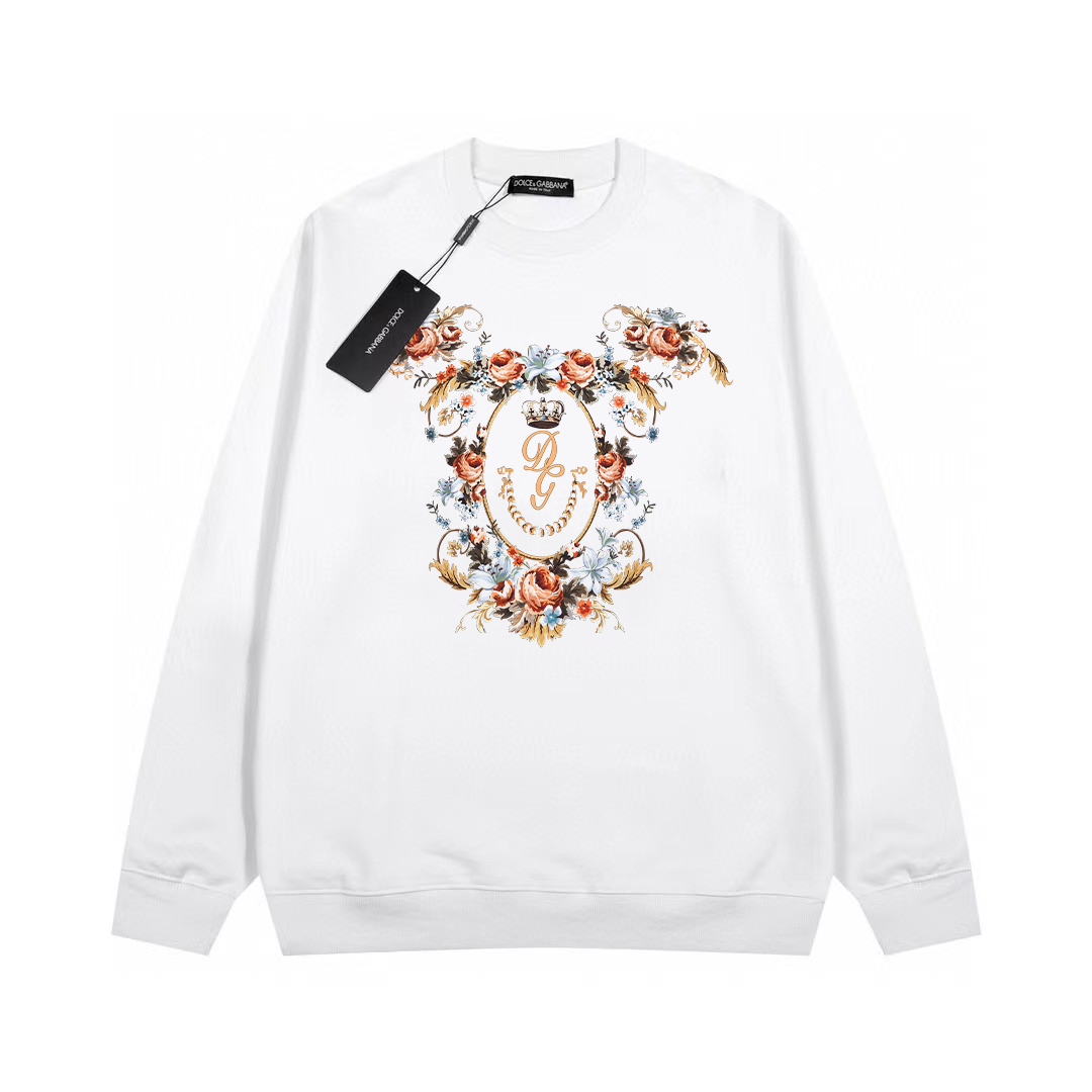 Dolce & Gabbana D&G printed crewneck sweatshirt. The most anticipated sweatshirt for the 2024 spring/autumn season. High-end custom premium series, belongs to the brand's high-end mainline. Patent top-tier cotton fabric, interprets conventional styles through innovation. The fabric configuration颠覆es the norm, with noteworthy details.