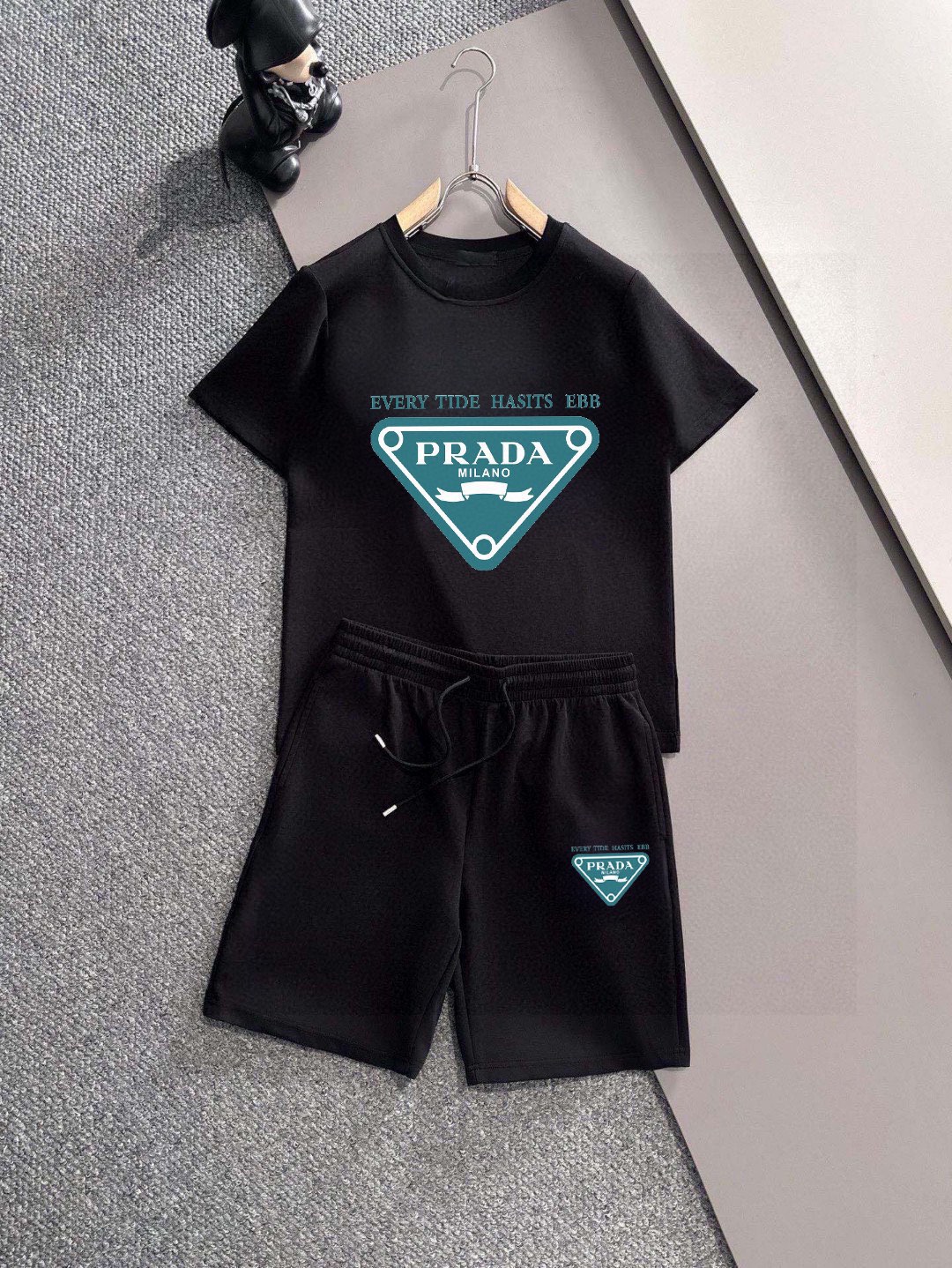 PRADA men's short sleeve and shorts set, 2025 new style. High-end version, soft feel, comfortable fit, excellent tailored silhouette. Sizes: M-5XL.