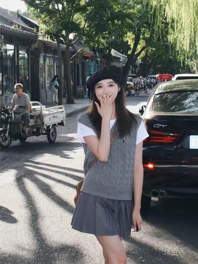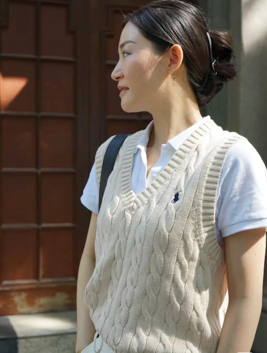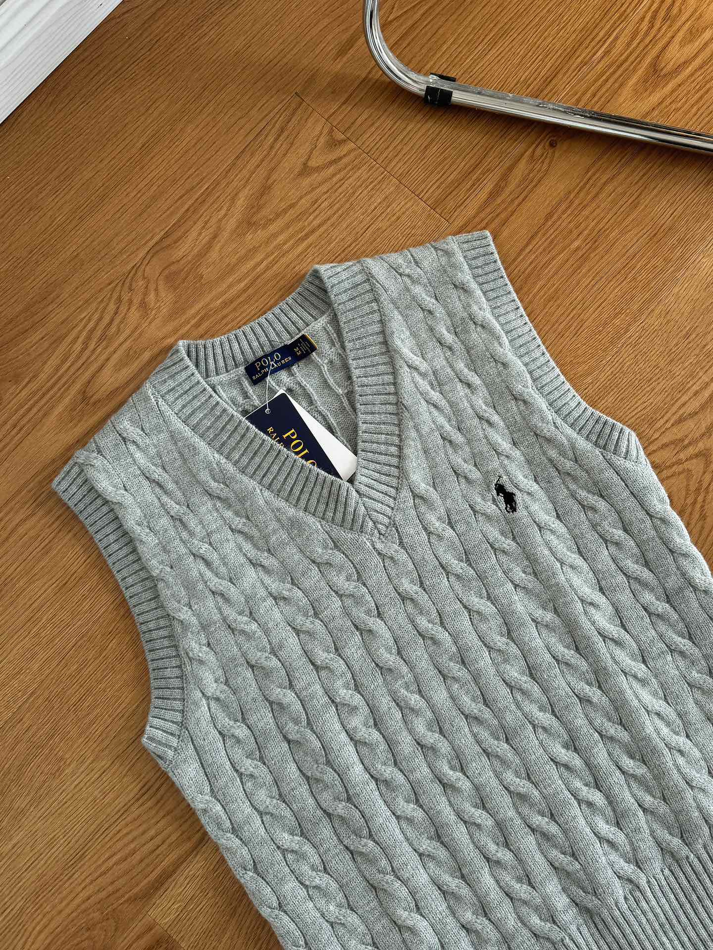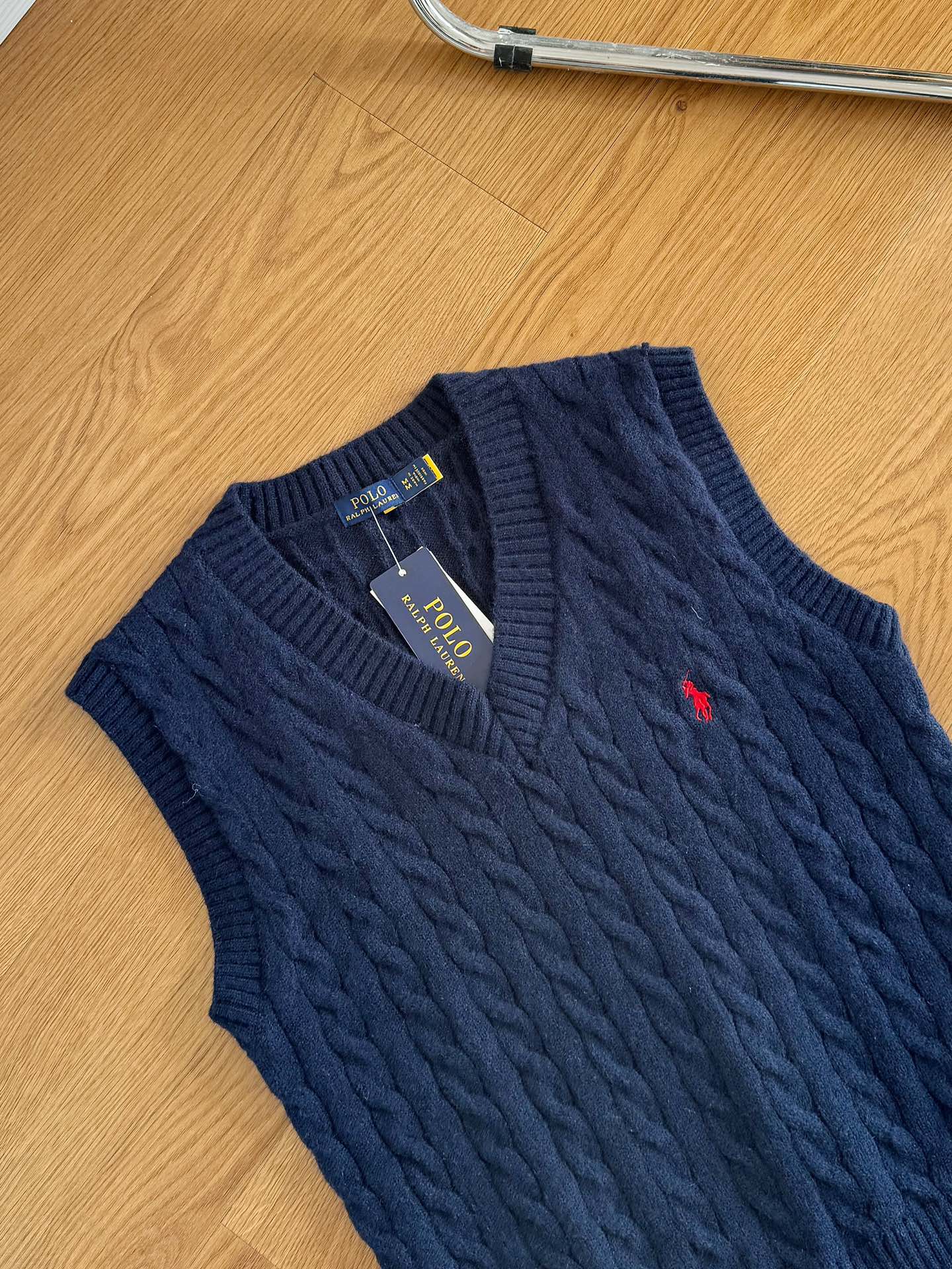 Ralph Lauren knit vest. Slim fit, retro style. Versatile layering piece. Soft fabric. Colors: navy, gray, beige. Sizes M, L.