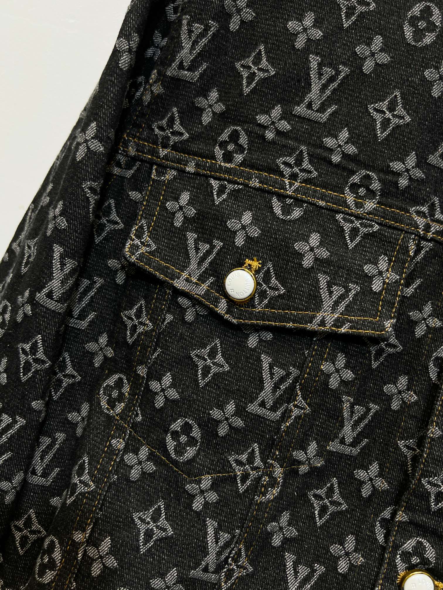 Louis Vuitton Monogram Dust set FW24. Jacket & pants with mother-of-pearl buttons. Unisex sizes S,M,L,XL. Stylish, luxurious design.