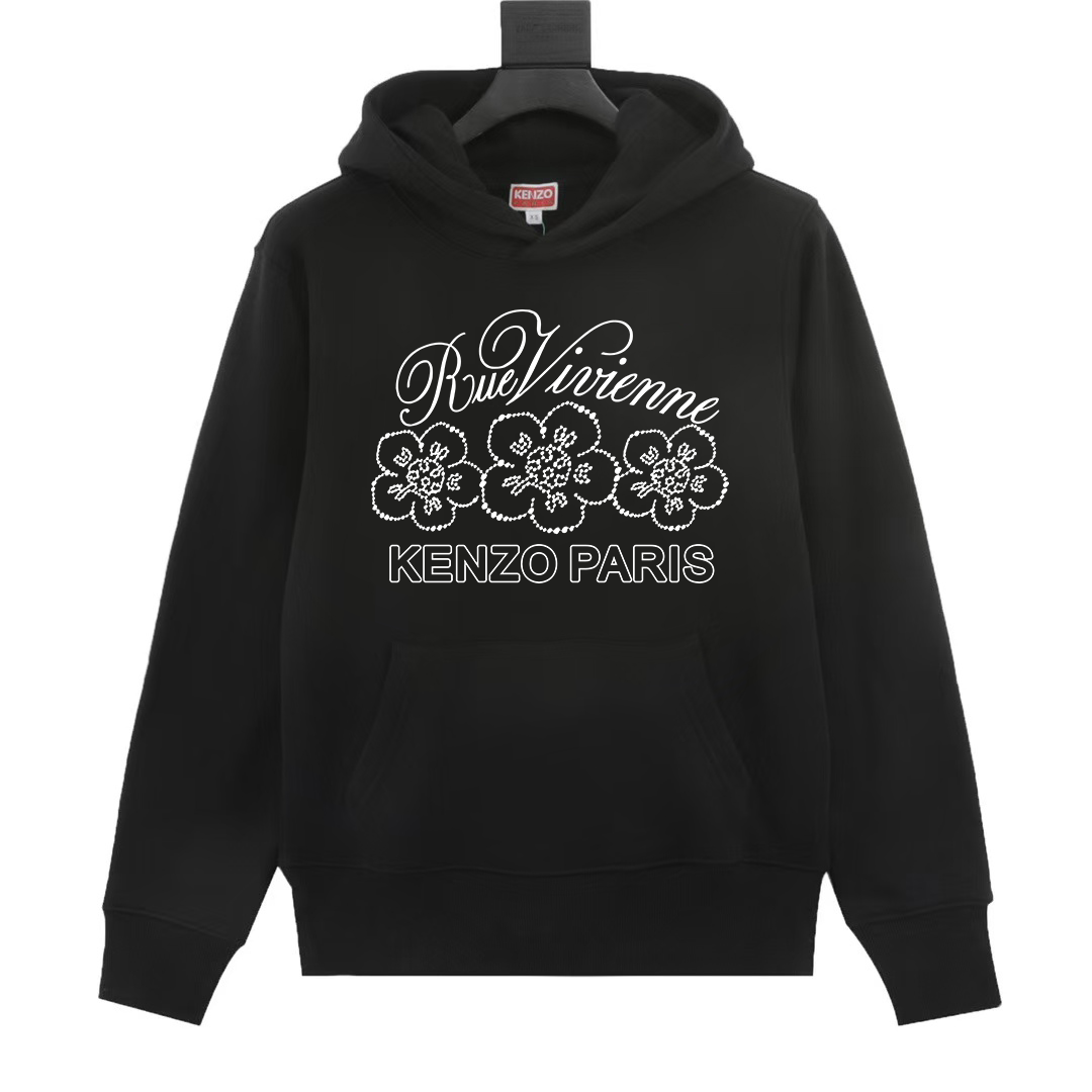 KENZO new print 420g terry hoodie. Colors: black, gray. Sizes: XS-L.