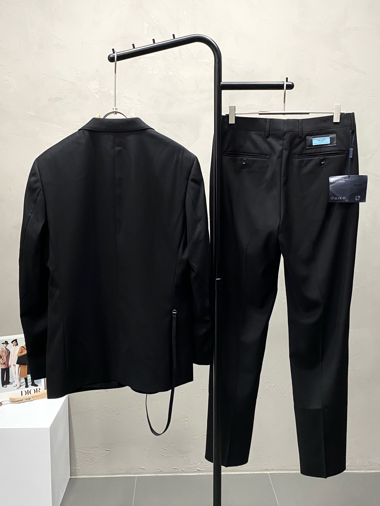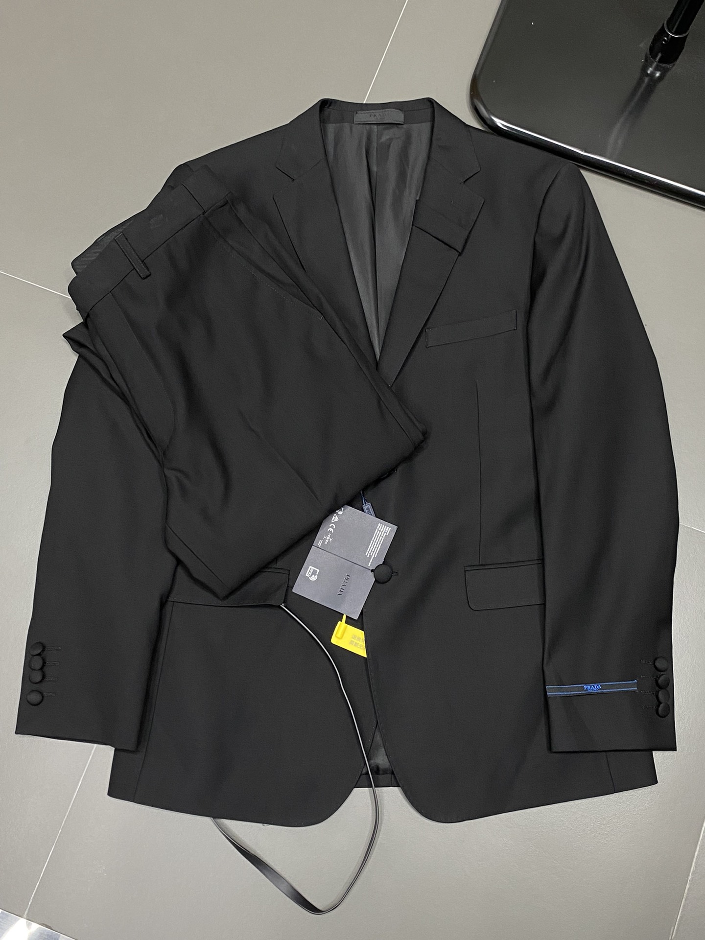 Prada spring/autumn suit set. Imported polyester fabric, breathable & warm. Neat stitching, logo hardware. Sizes: jacket 46-58, pants 29-38.