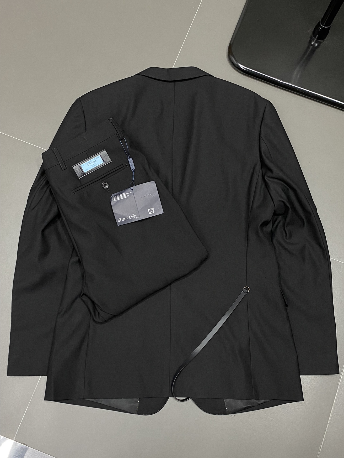 Prada spring/fall suit set. Imported polyester fabric, breathable & soft. Tidy stitching, logo hardware. Sizes: jacket 46-58, pants 29-38.