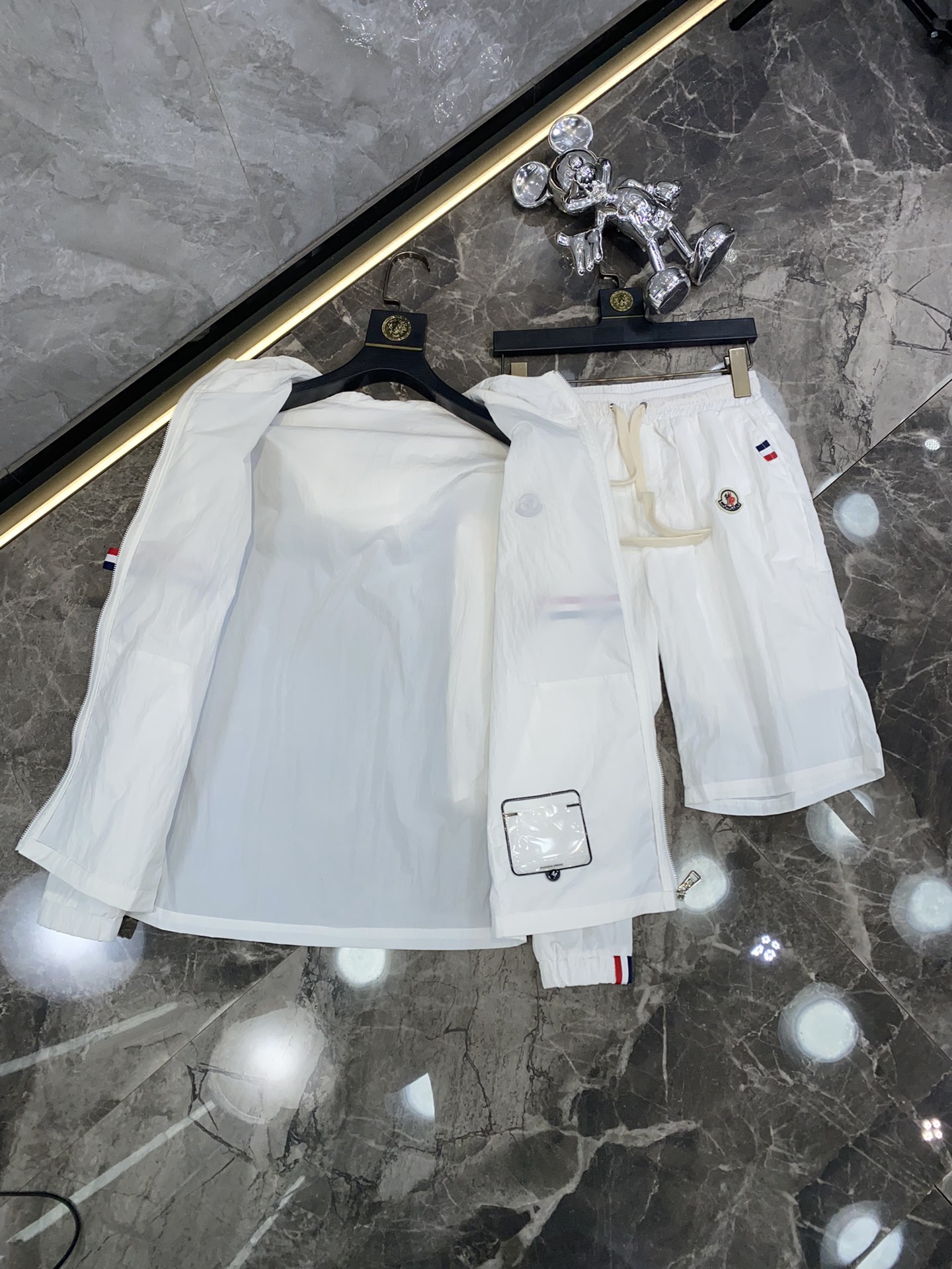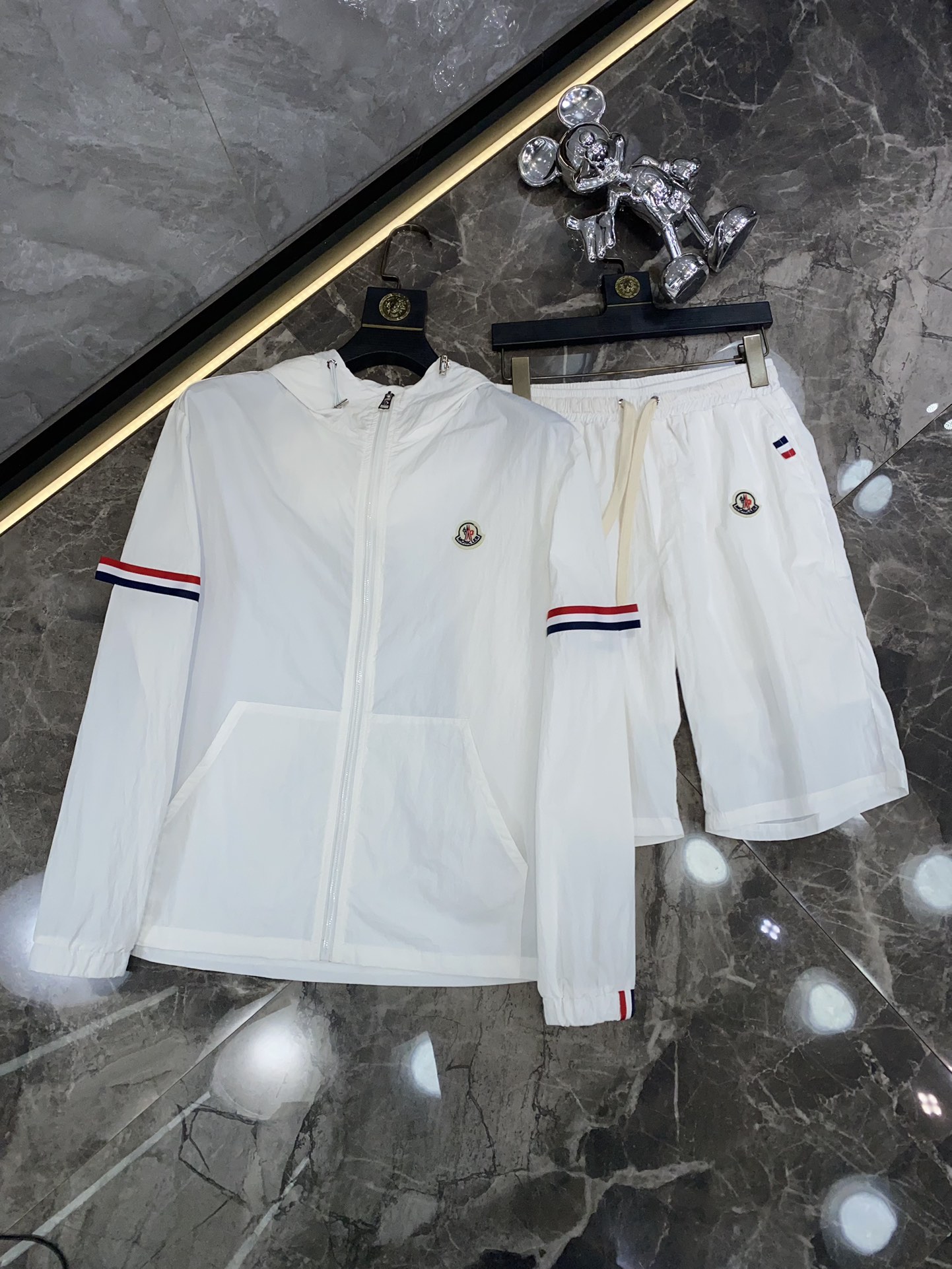 Moncler 2025 SS windbreaker & shorts set. Original labels, custom hardware, premium fabric. Versatile, comfortable. Colors: as shown. Sizes: M-3XL.