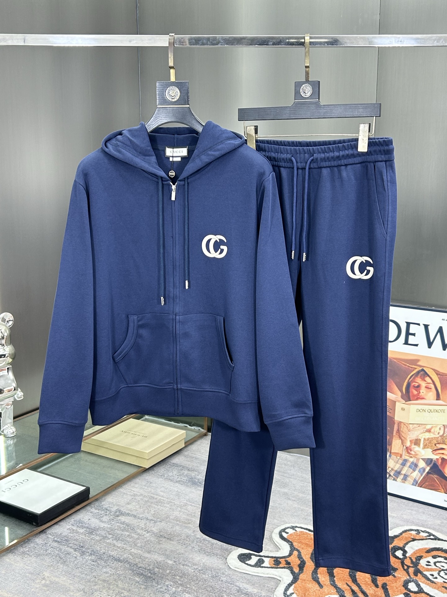 Gucci set: premium拼接休闲裤与logo刺绣。经典黑白织带,定制面料,精工制作。舒适时尚,尺码M-3XL。