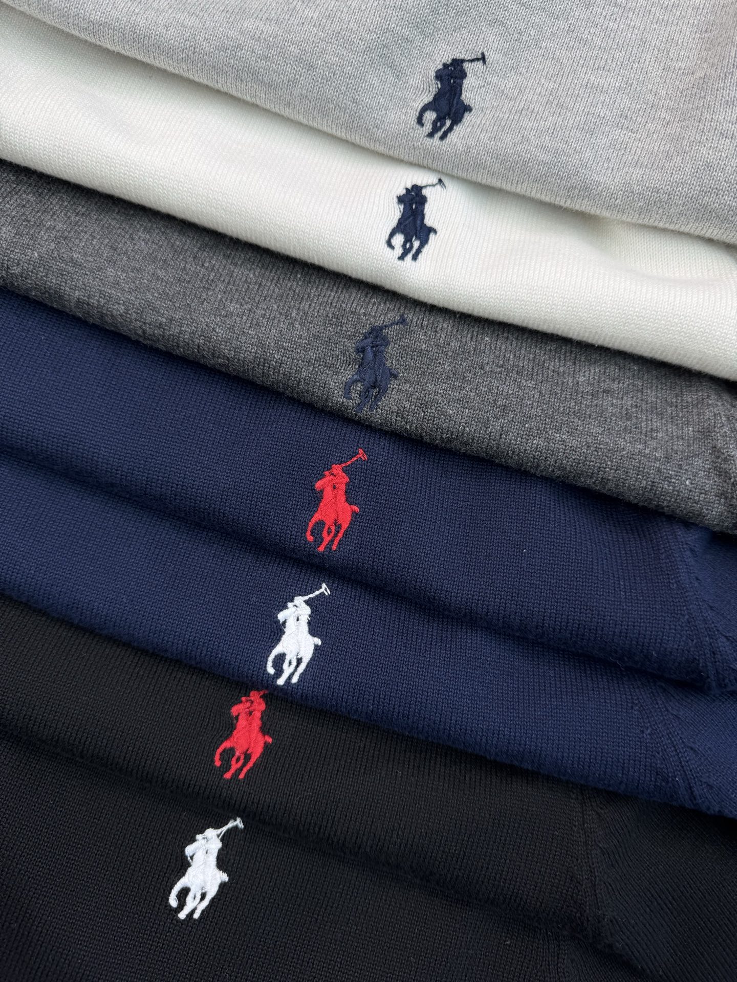 Home • Apparel • Ralph Lauren embroidered pony knit sweater. Sizes S-XL. Colors: white, gray, navy, black. 100% cotton. Chest: 106-118cm, length: 67-73cm.