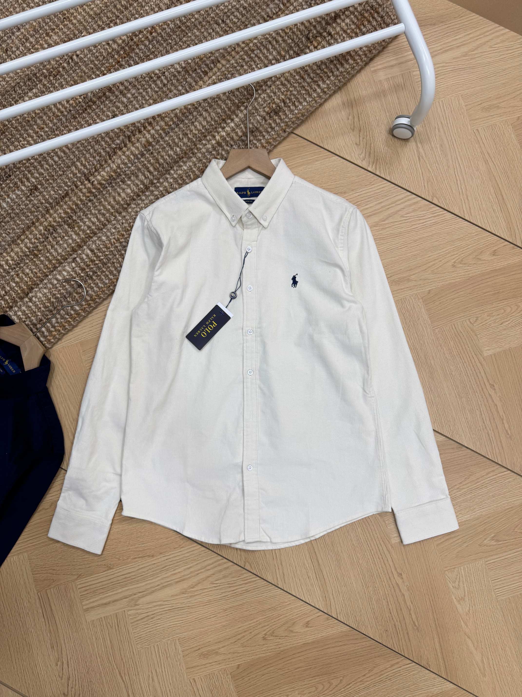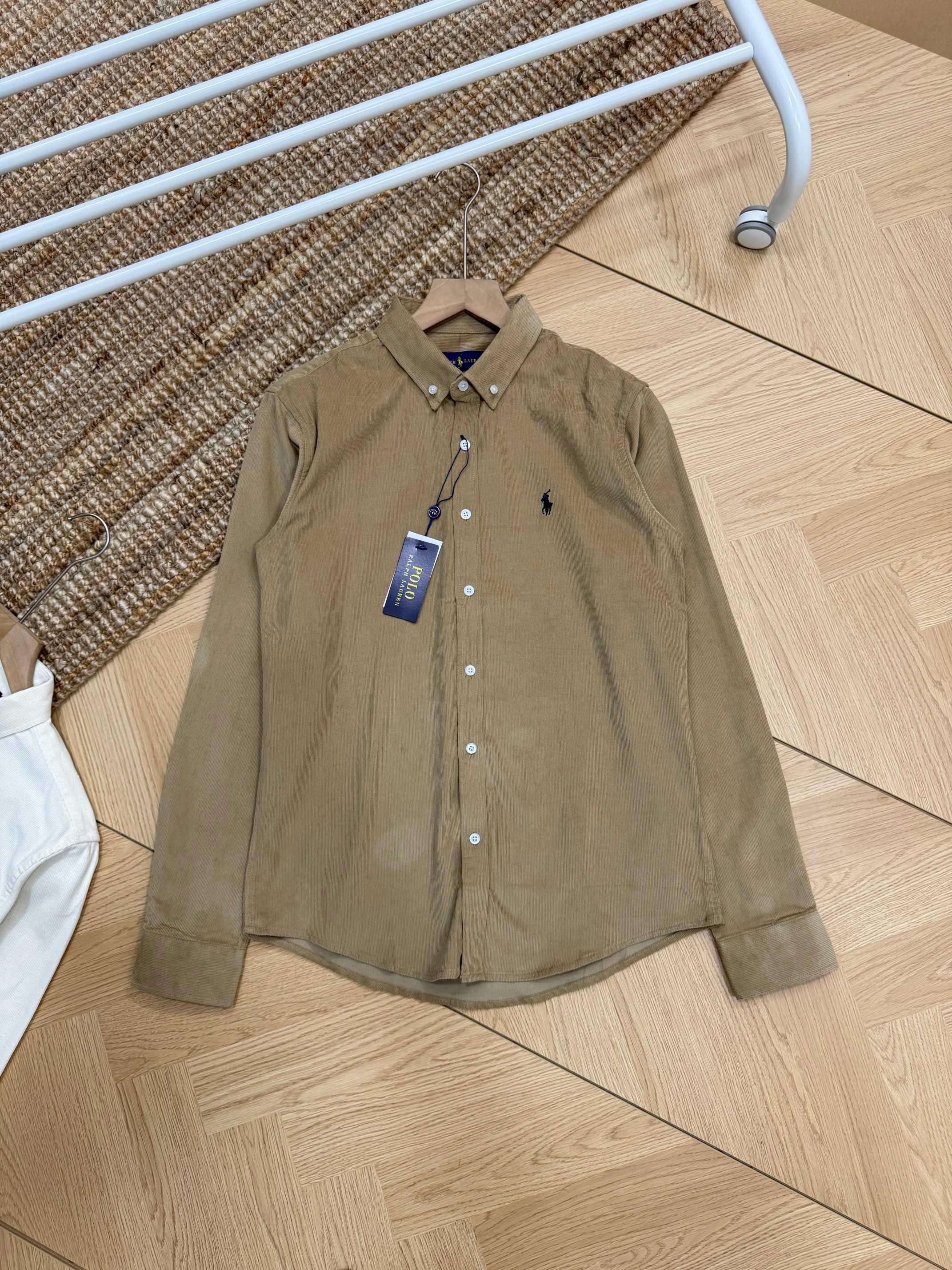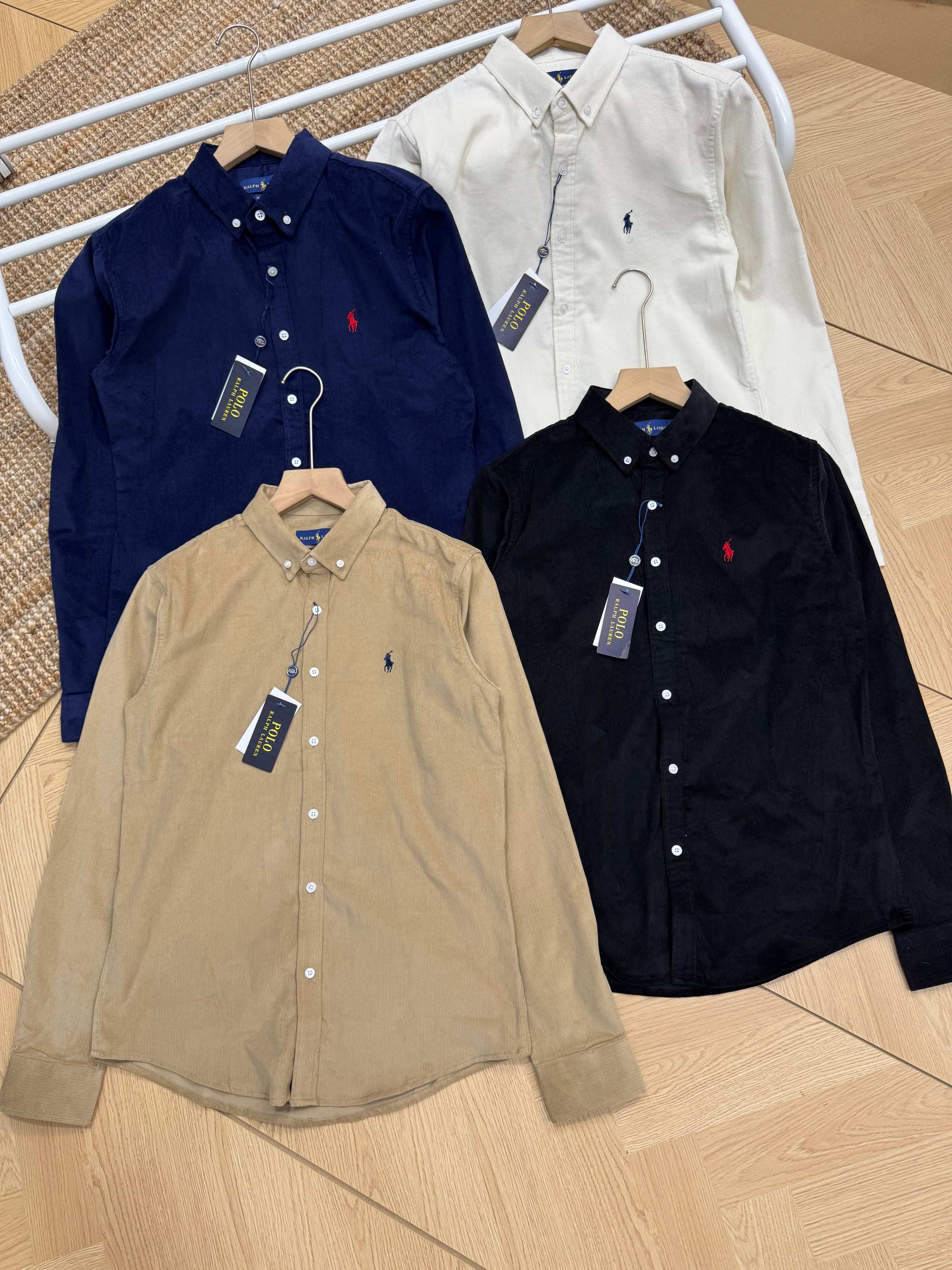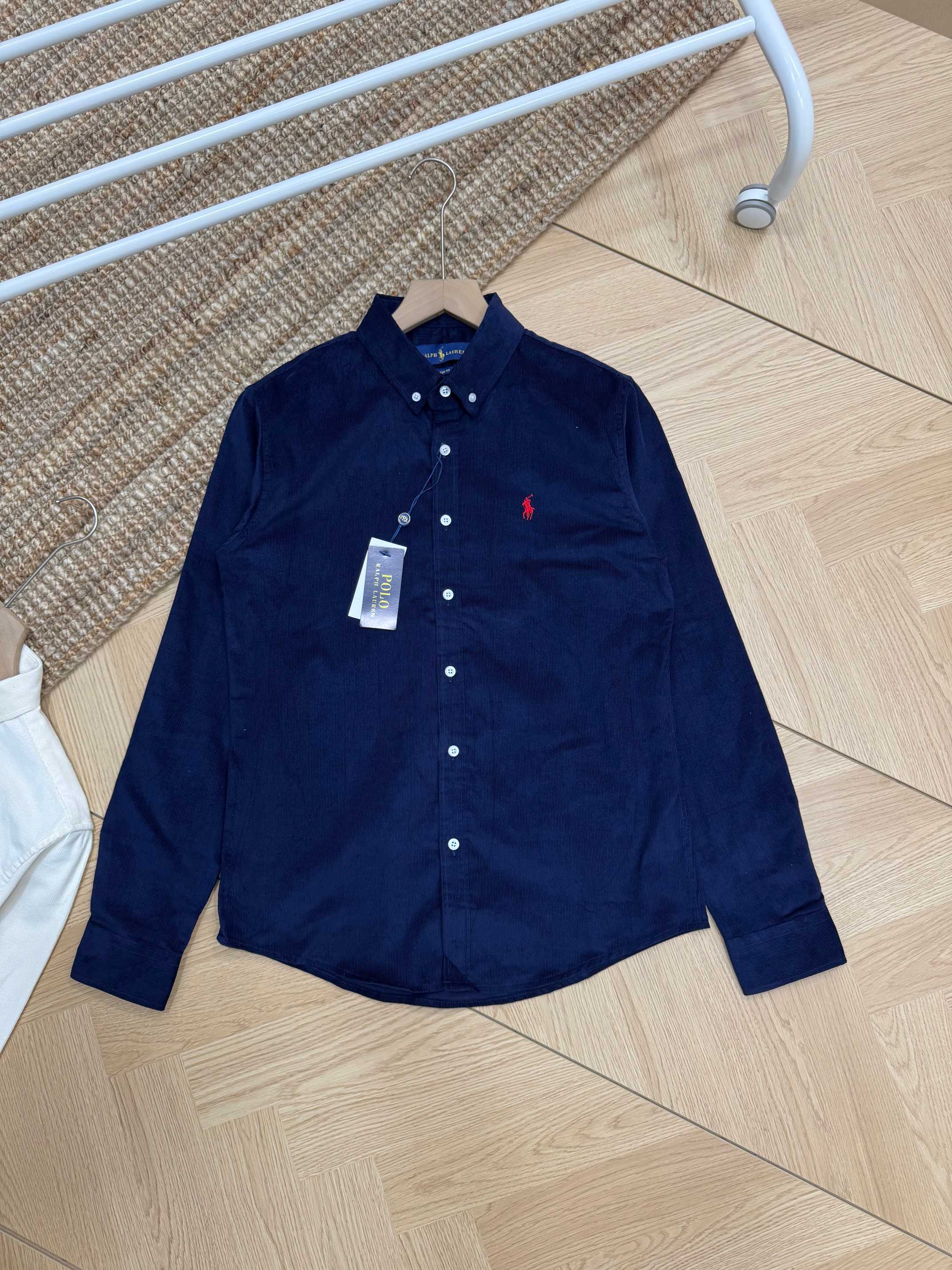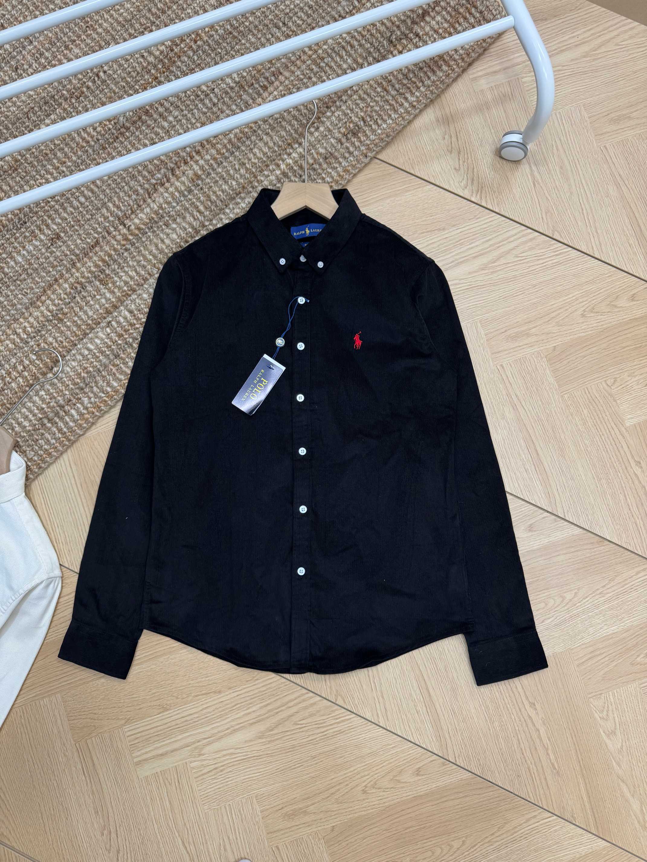 Ralph Lauren corduroy shirt in 4 colors. Classic embroidered logo. M-XXL. Black, off-white, navy, khaki. Versatile vintage style for autumn/winter layering.