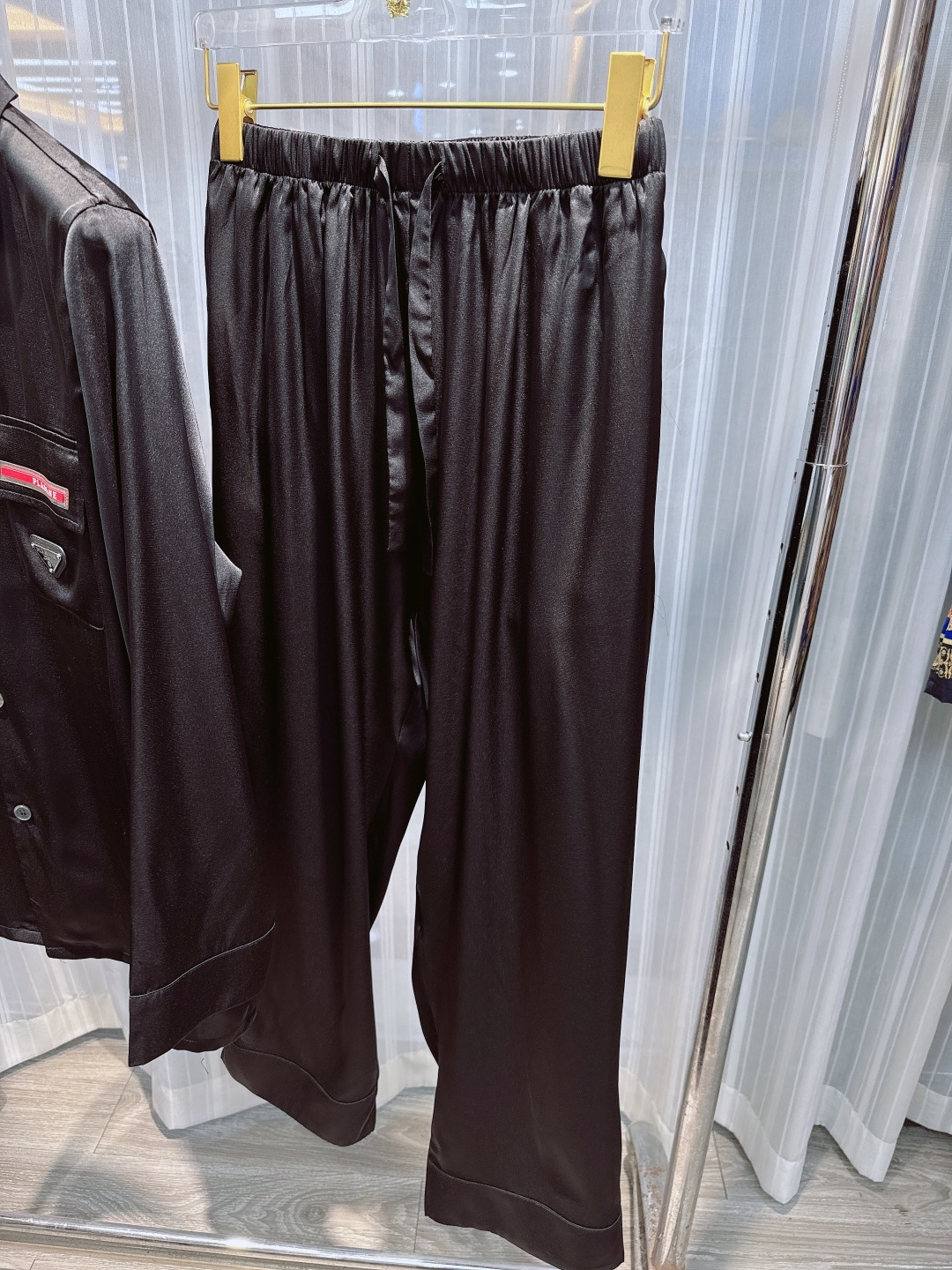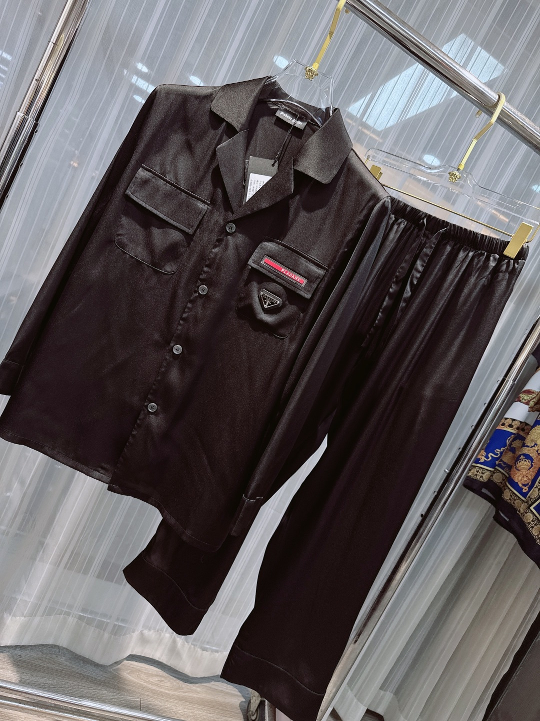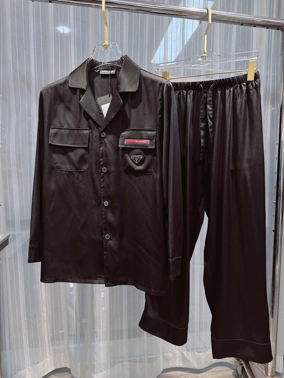 New Prada homewear set. Korean silk, unisex, long sleeves/pants. Sizes M-3XL. Hand wash recommended.