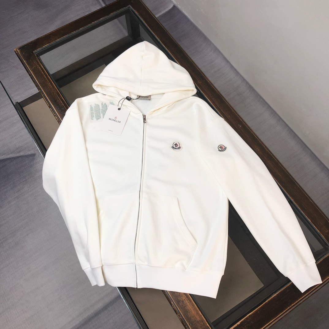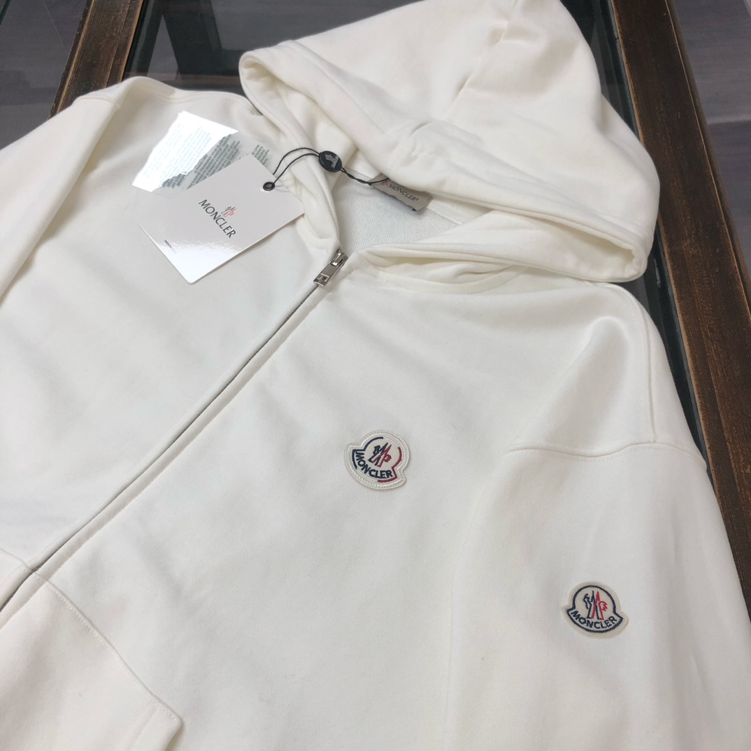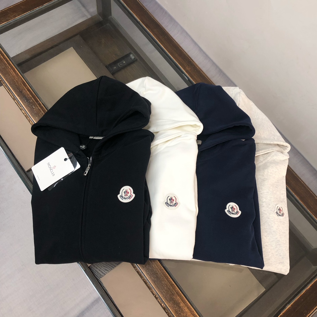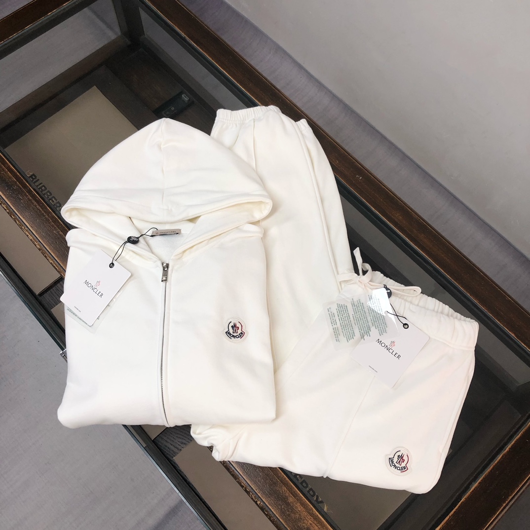 MONCLER 2025 early autumn hoodie & pants set. Custom 420g cotton, breathable. Colors: black, white, blue, gray. Sizes: S-XXL.