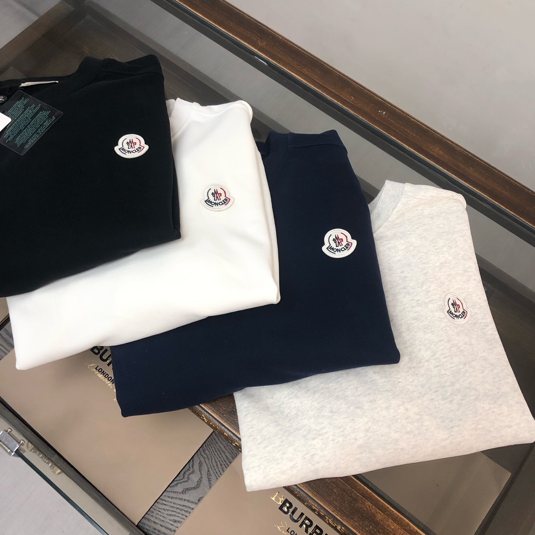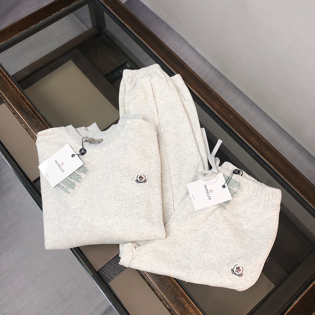 Moncler 2025 early autumn new unisex sweatshirt and pants set. Custom 420g cotton, breathable, logo detail. Colors: black, white, blue, gray. Sizes: S-XXL.