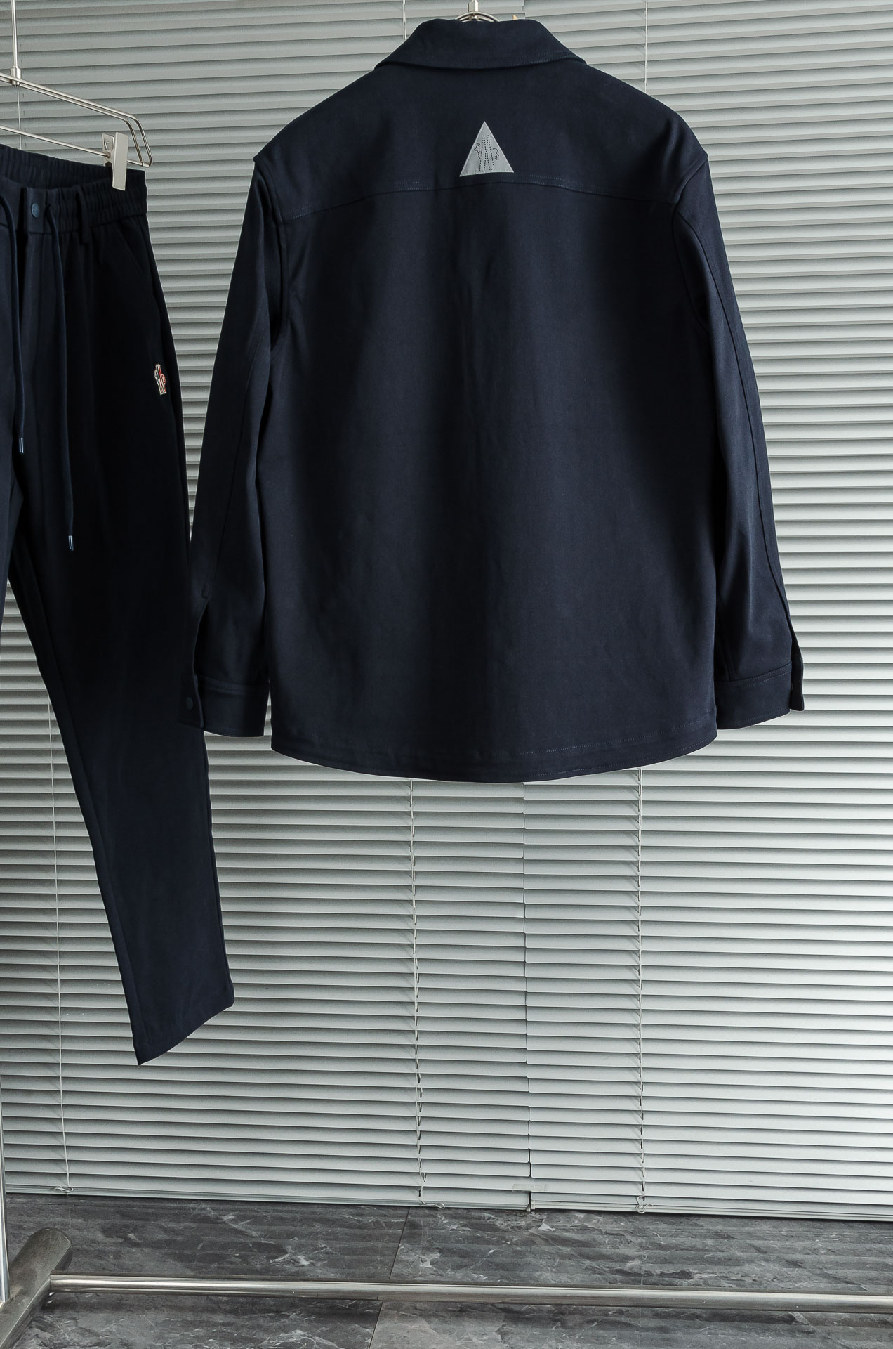 New Moncler 2025FW 100% cotton casual set with straight-leg pants and lapel jacket. Premium Xinjiang cotton, breathable, soft, wrinkle-resistant. Classic, versatile, high-end street style. Sizes M-3XL.
