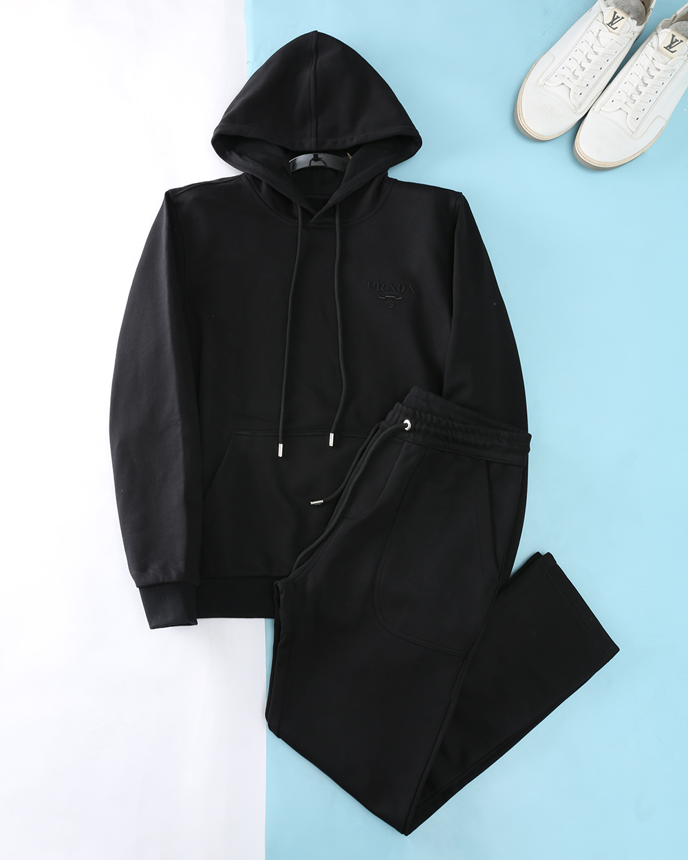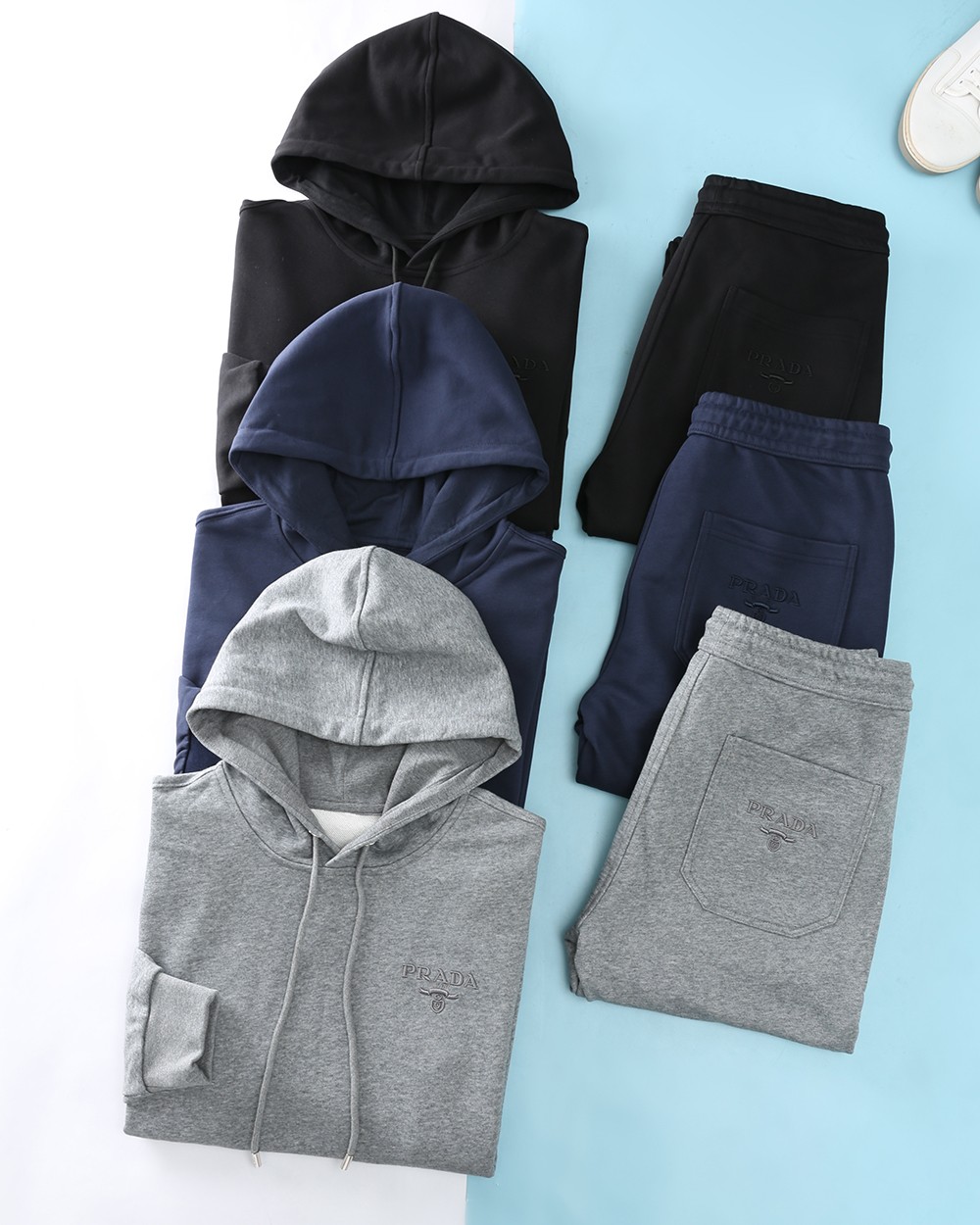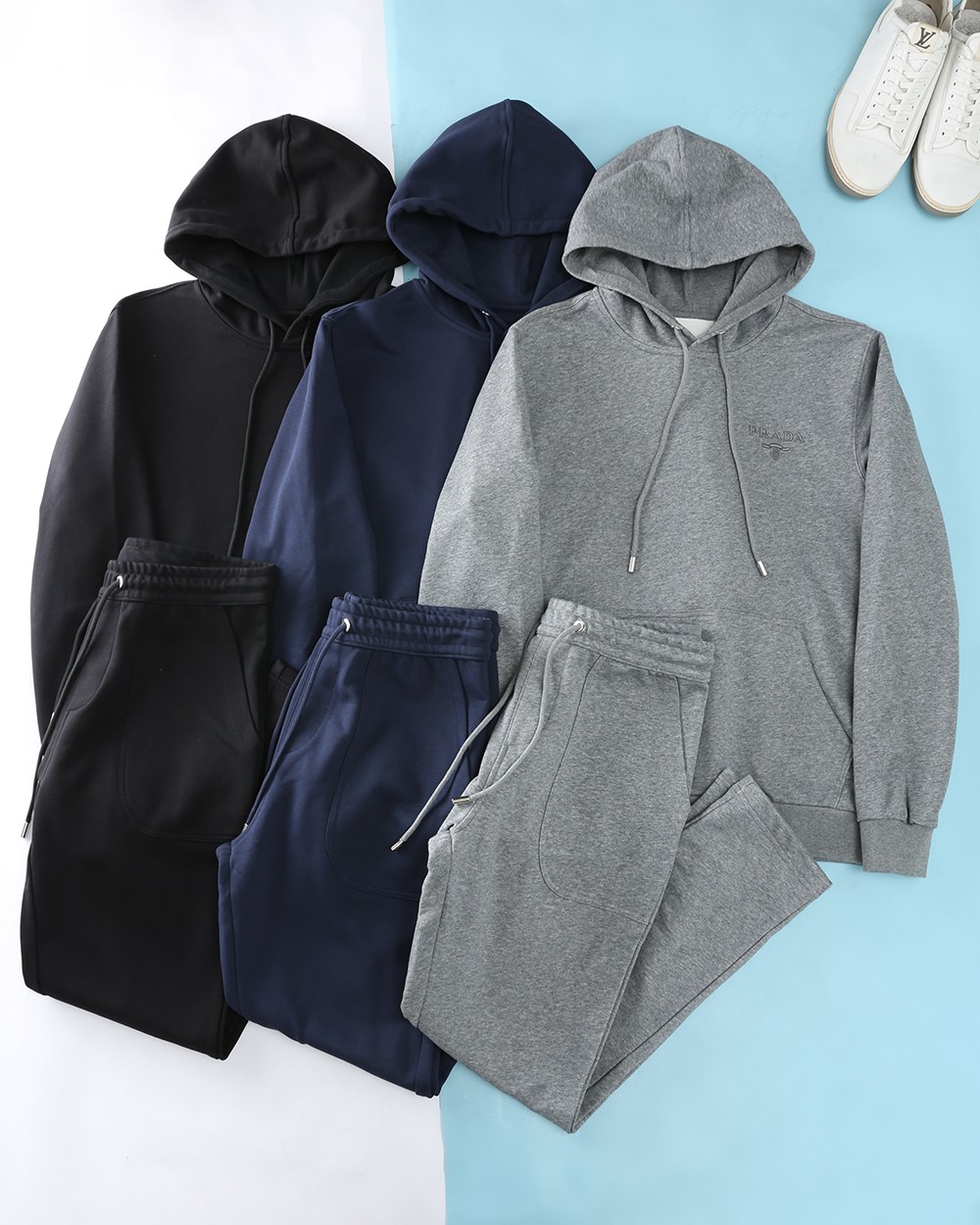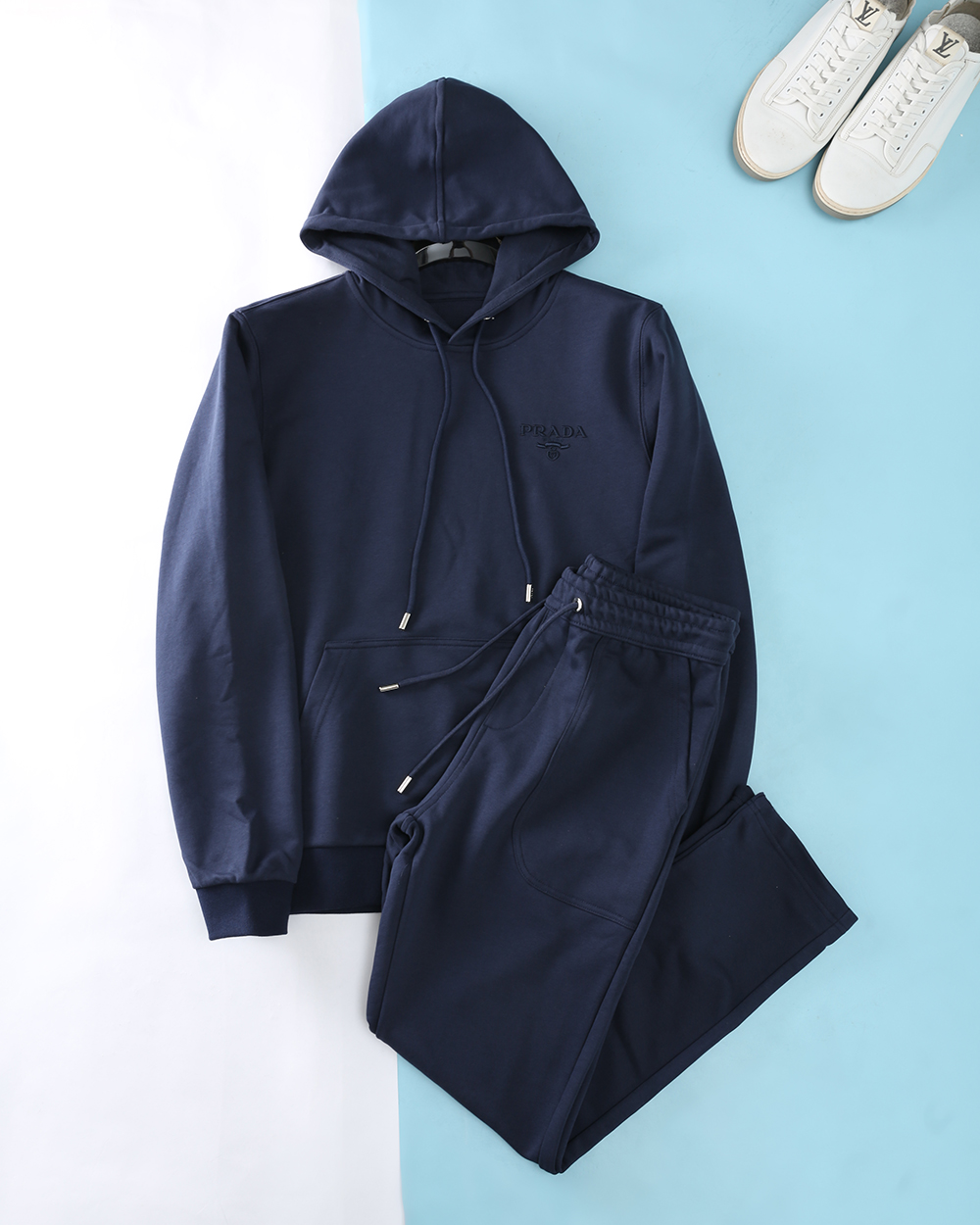 New PRADA set: 2025 autumn/winter collection, available in stores. High-density polyester, comfortable and stylish. Sizes M-3XL, colors: black, blue, gray.