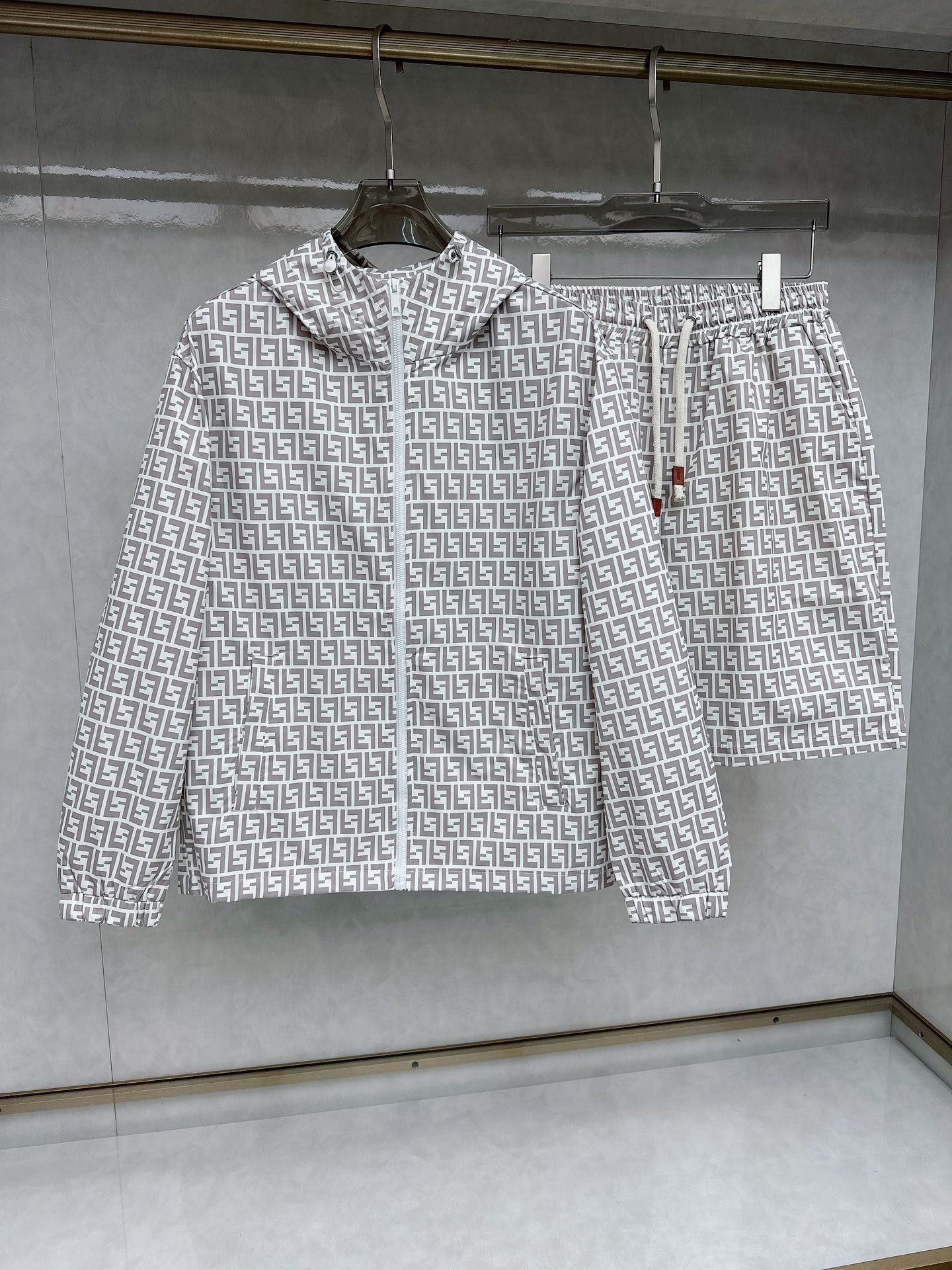 Fendi 2025 summer sun protection shorts set. Overseas edition, luxury custom fit. Imported poly-fiber fabric, soft, comfortable, sweat-absorbing. High-density material, retains shape after washing. Street fashion, home essential. Sizes M-XXXL. Provide height/weight when ordering.