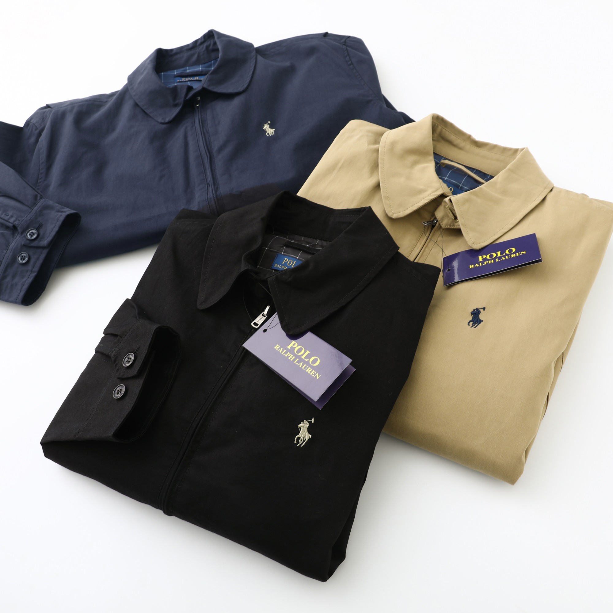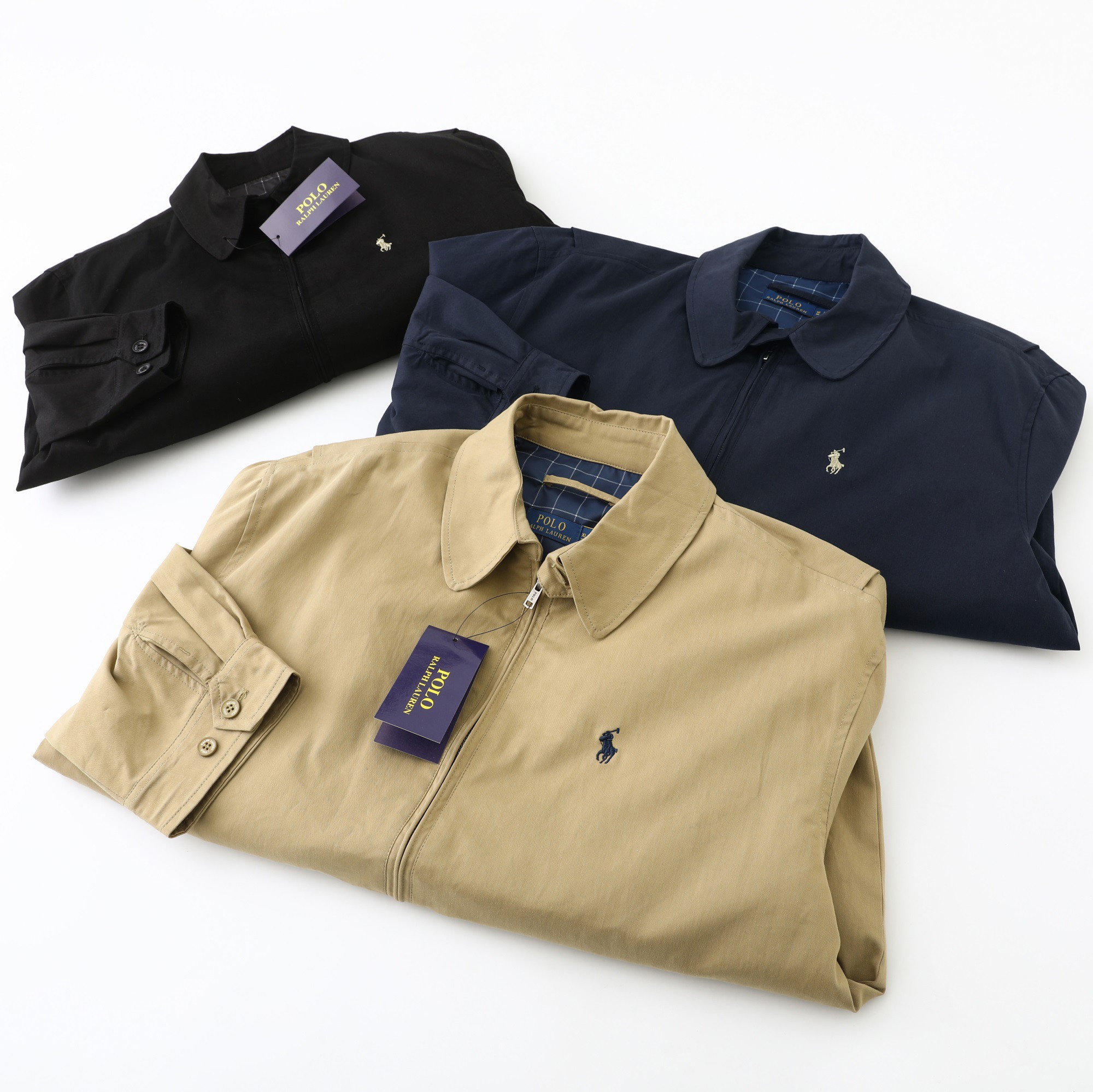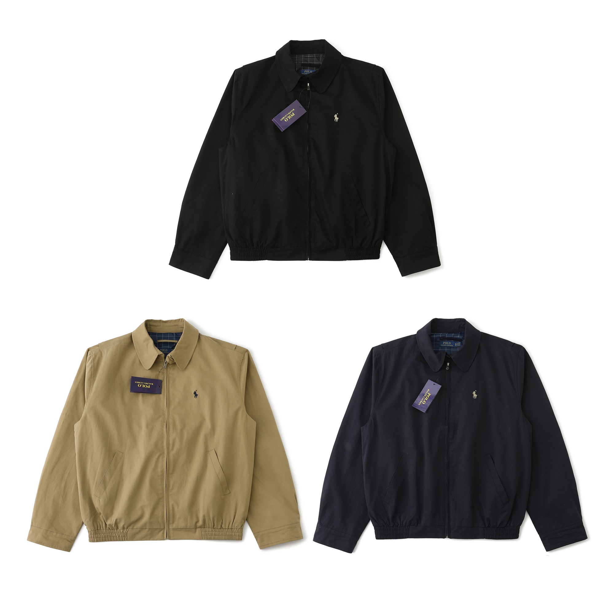 Ralph Lauren classic zip jacket, unisex. Harrington style, windproof, cotton blend. Versatile retro design. Colors: khaki, navy, black. Sizes: S/M/L/XL.