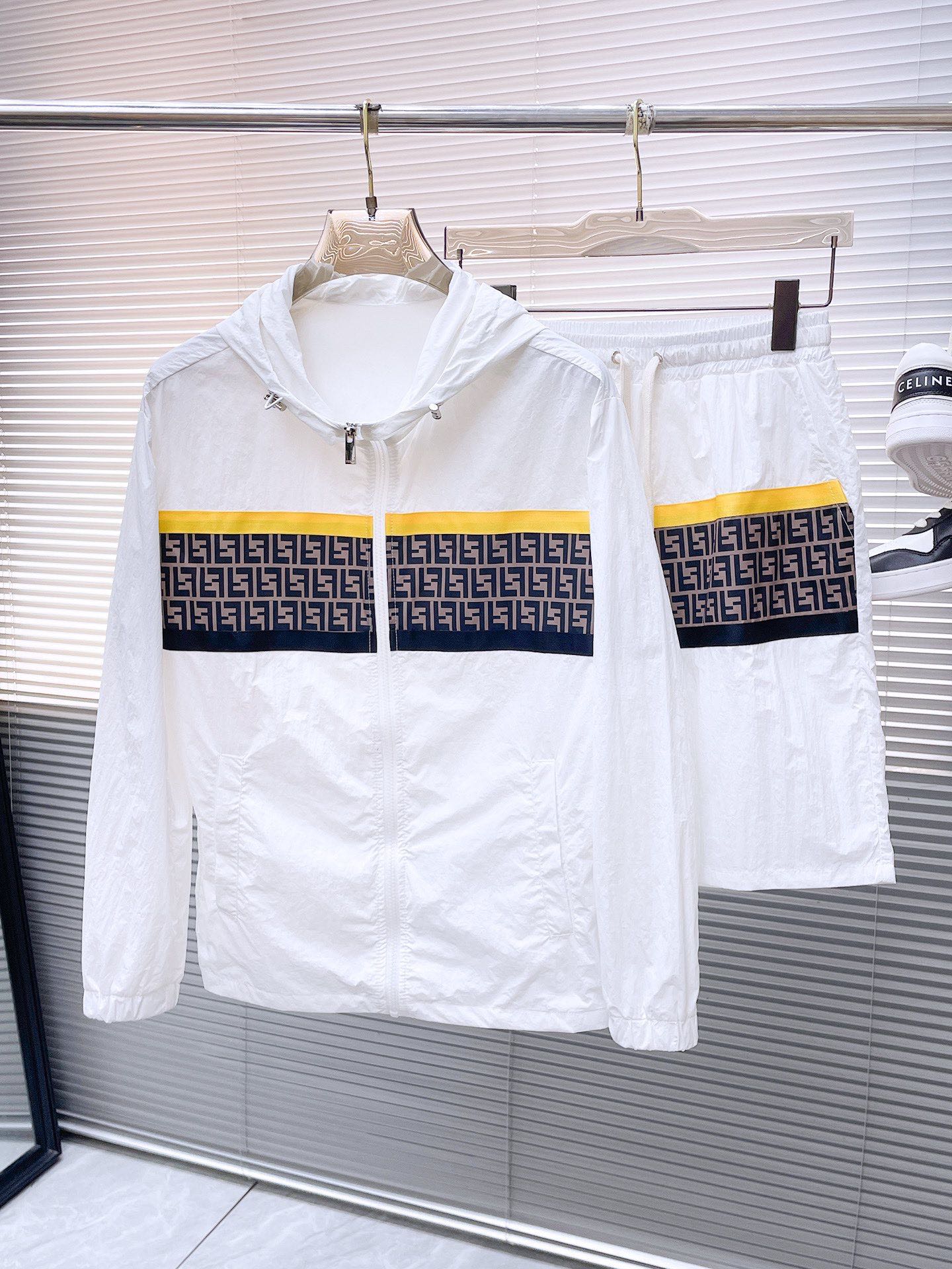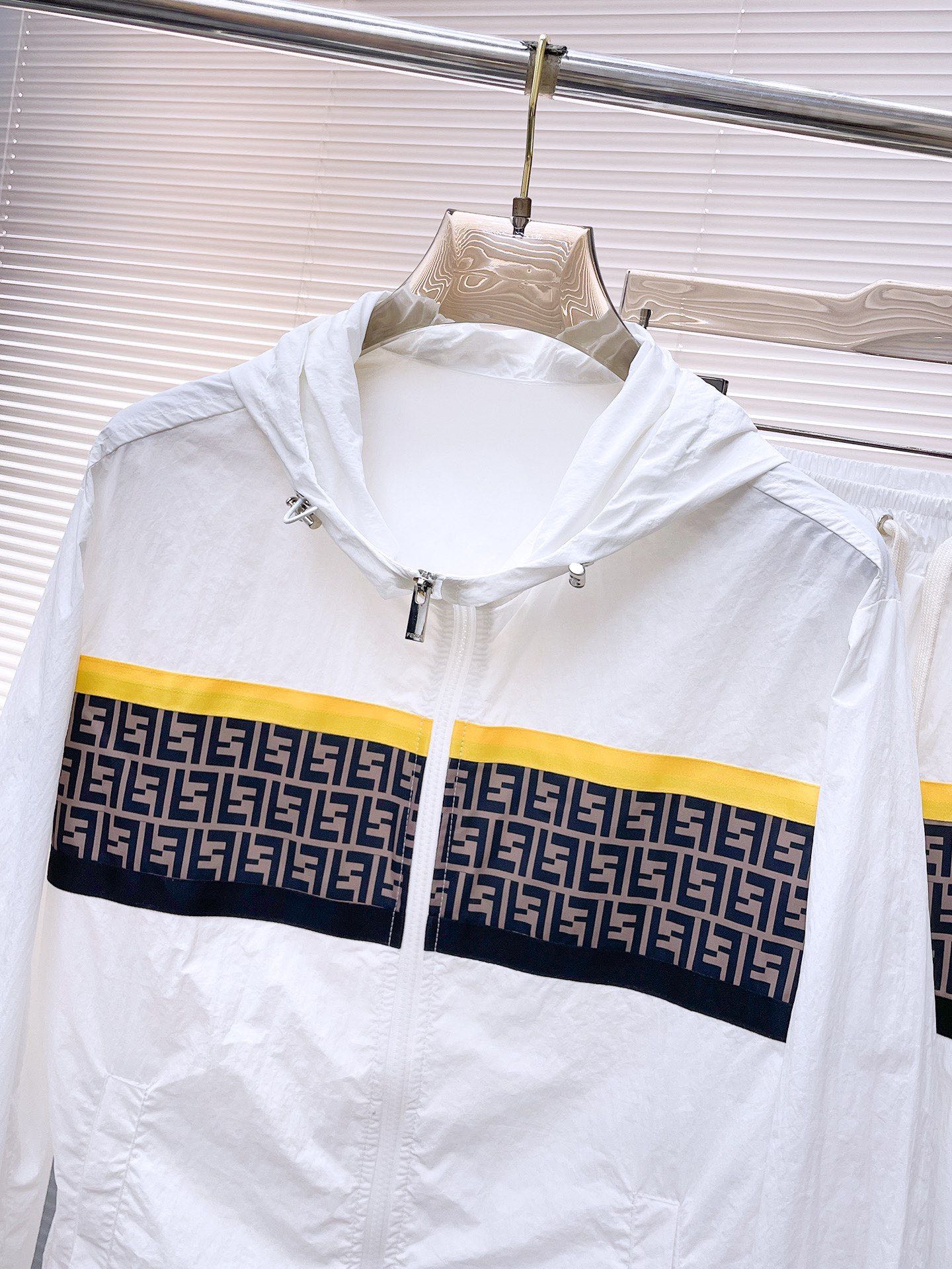 Fendi 2025 summer sun protection suit. Imported lightweight nylon, 3D print, soft & comfortable. Windproof, waterproof, UV protection. Stylish, quality details. Sizes: M to XXXL.