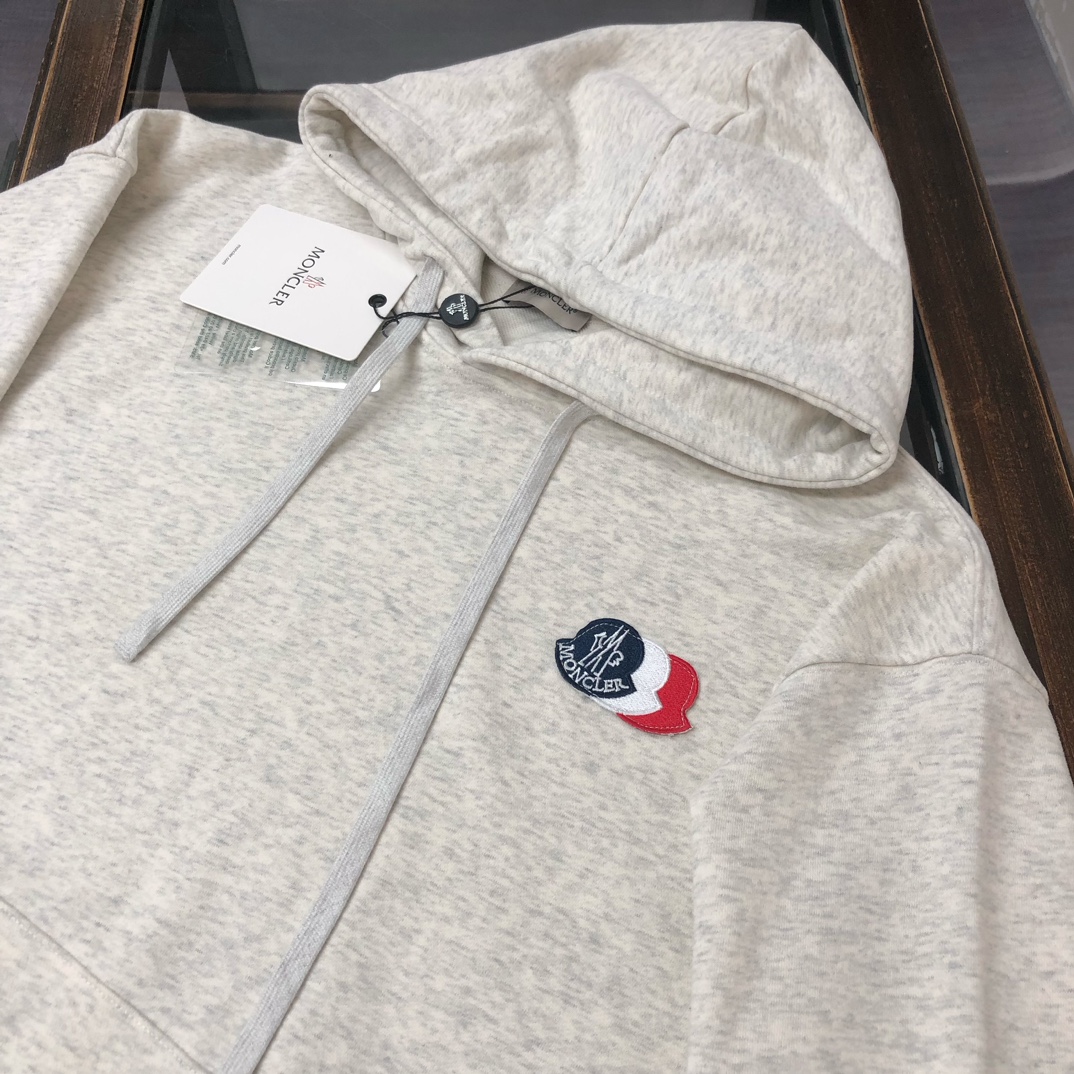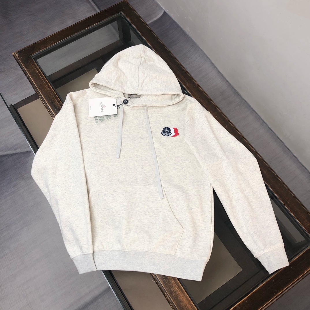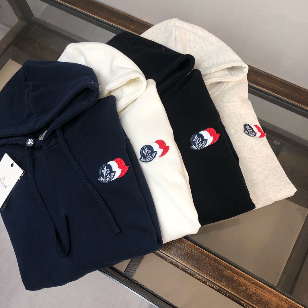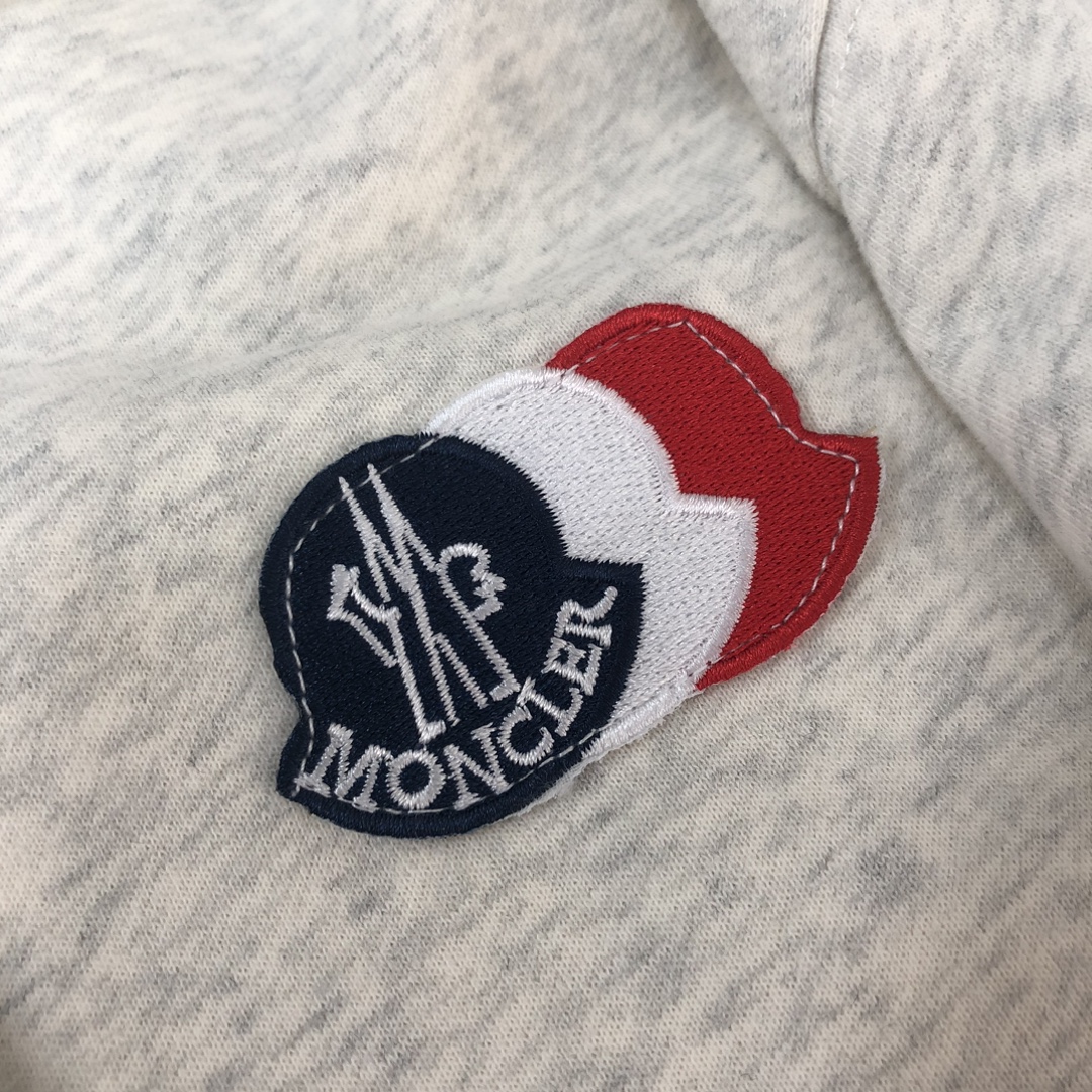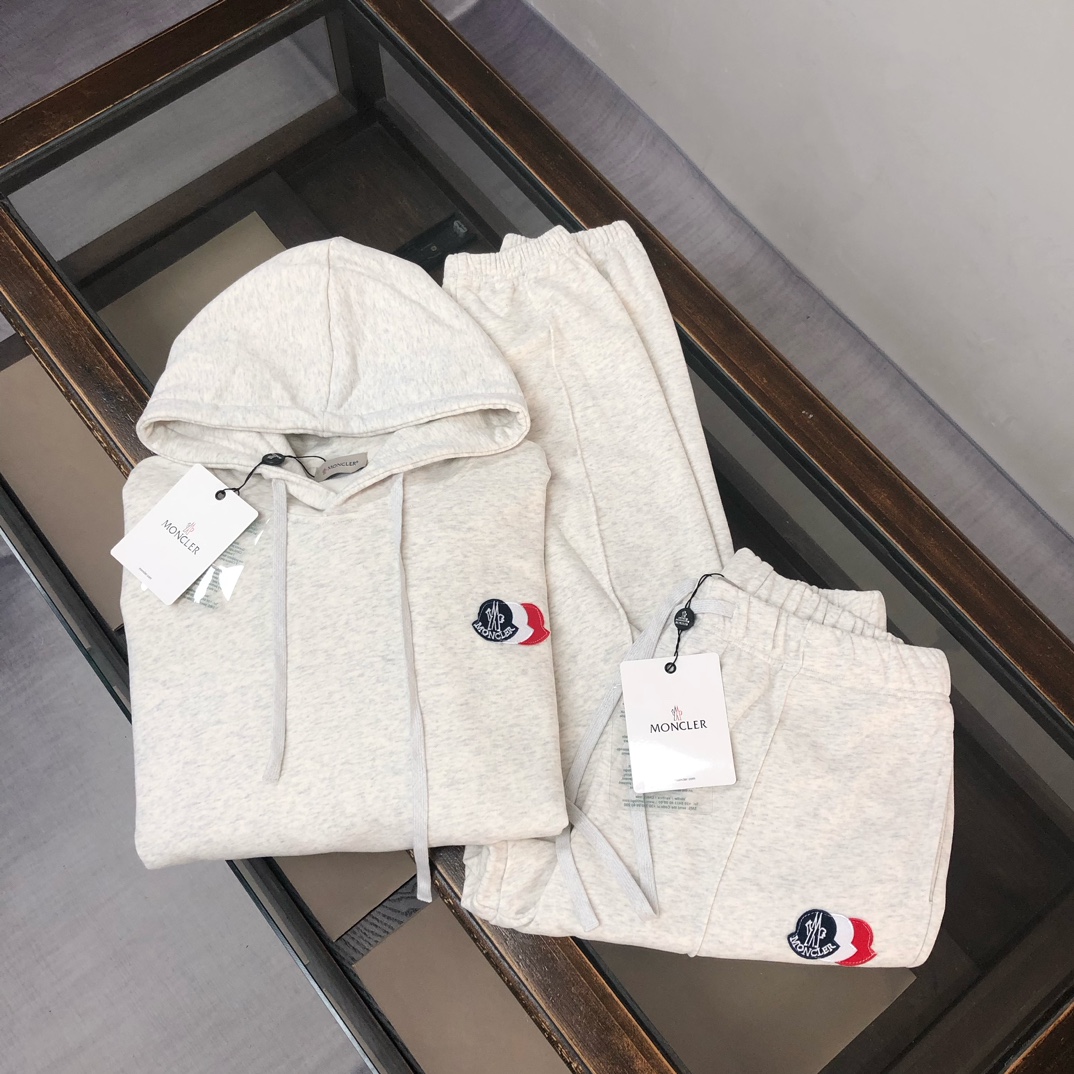 MONCLER 2025 early autumn hoodie & pants set. Custom 420g cotton, breathable. Colors: black, white, blue, gray. Sizes: S-XXL.