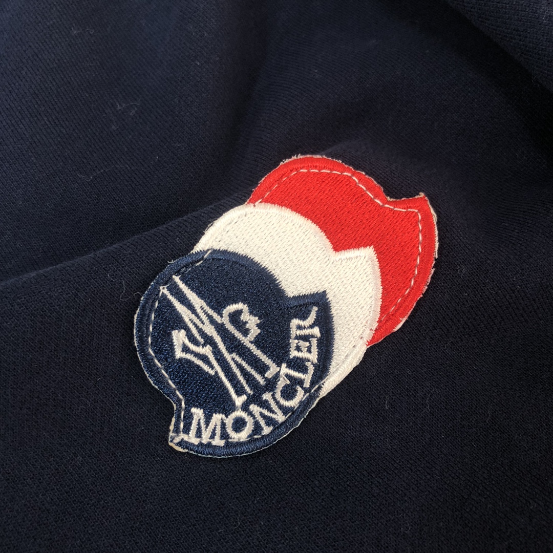 MONCLER 2025 early autumn hoodie and pants set. Custom 420g cotton, breathable, logo detail. Colors: black, white, blue, gray. Sizes: S-XXL.