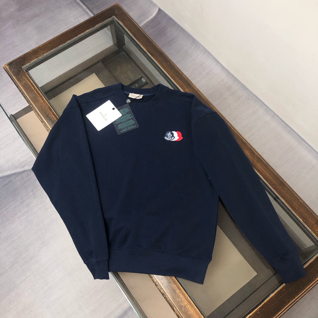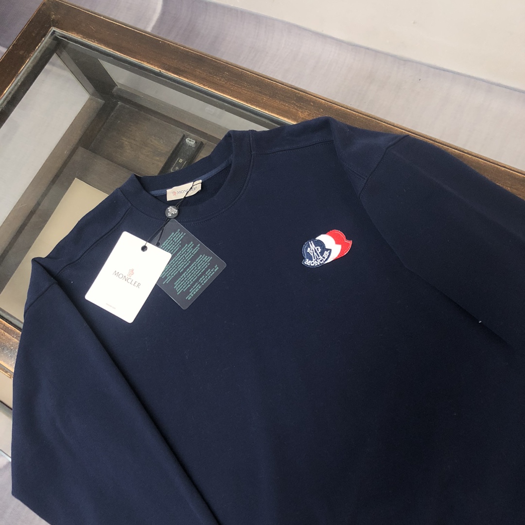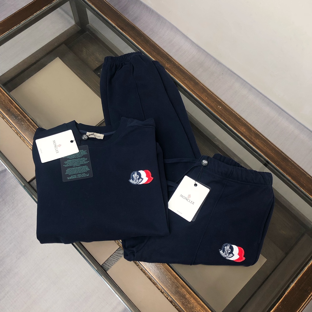 MONCLER 2025 early autumn couples sweatshirt & pants set. Custom 420g cotton, tailored fit. Colors: black, white, blue, gray. Sizes: S-XXL.