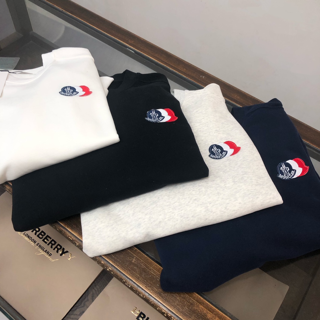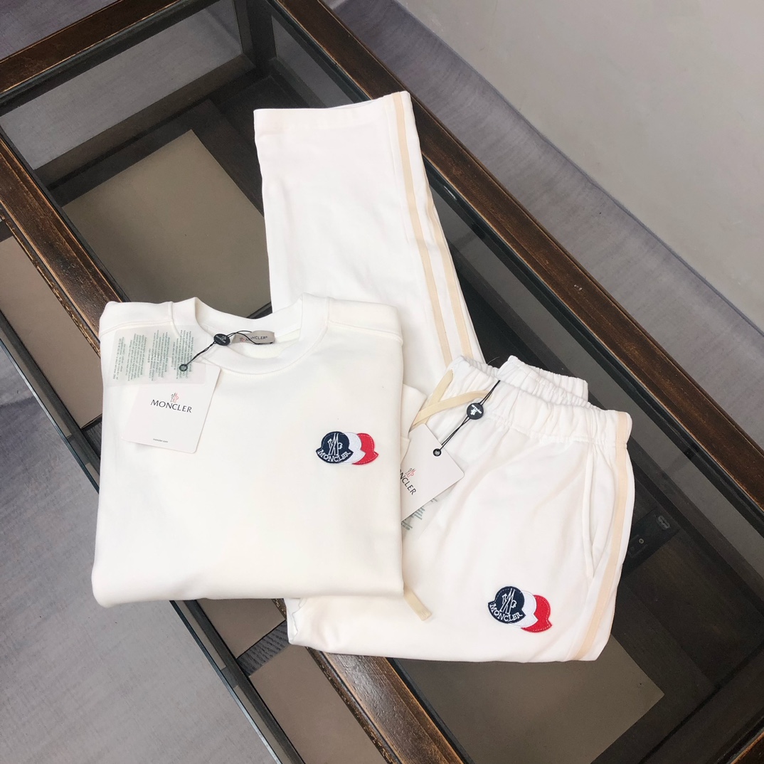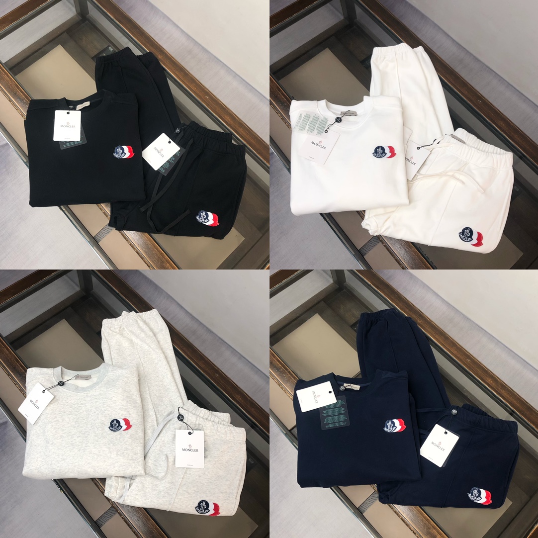 MONCLER 2025 early autumn unisex sweatshirt and pants set. Custom 420g cotton, tailored fit. Colors: black, white, blue, gray. Sizes: S-XXL.