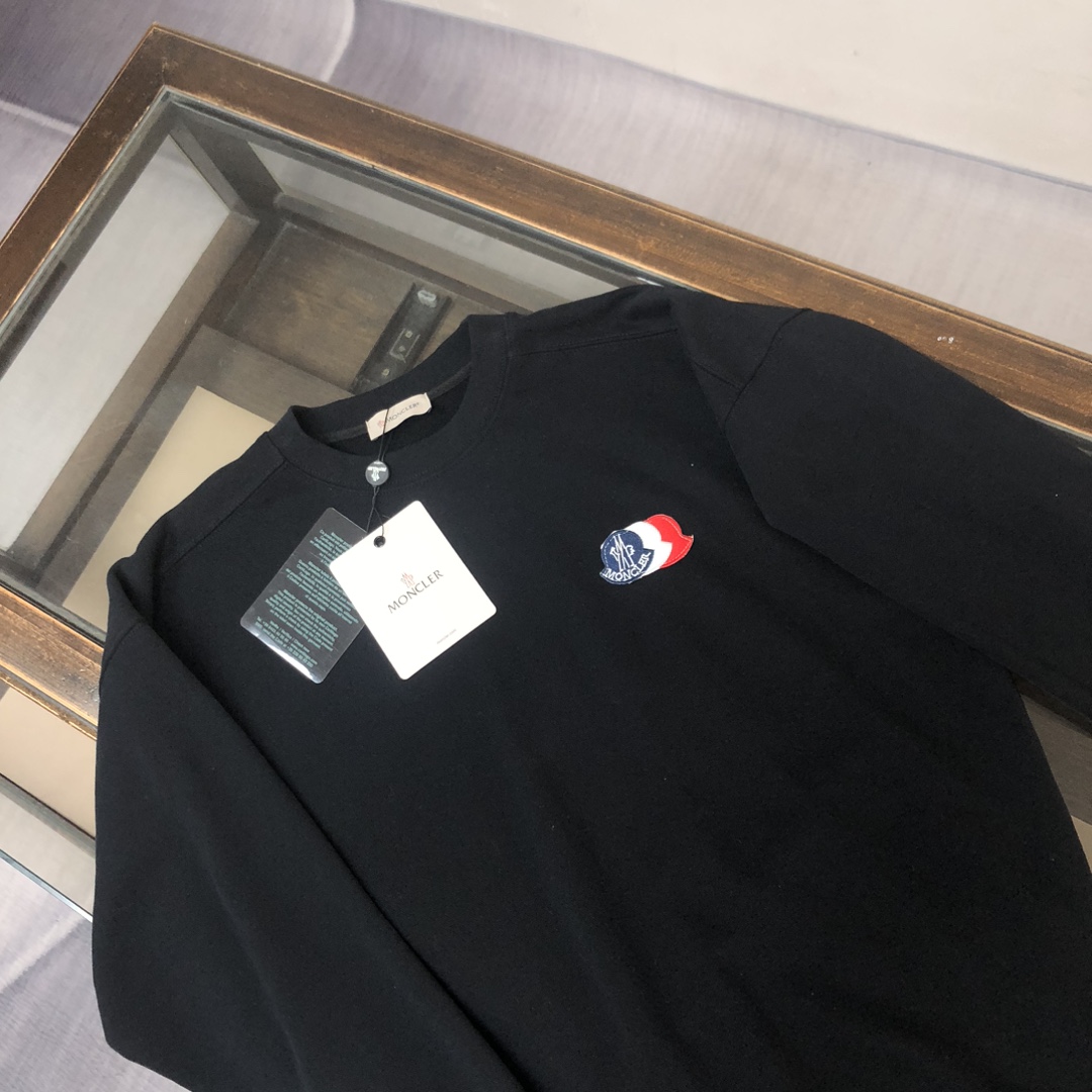 Moncler 2025 early autumn new couple's sweatshirt and pants set, custom 420g cotton. Colors: black, white, navy, gray. Sizes: S to XXL.