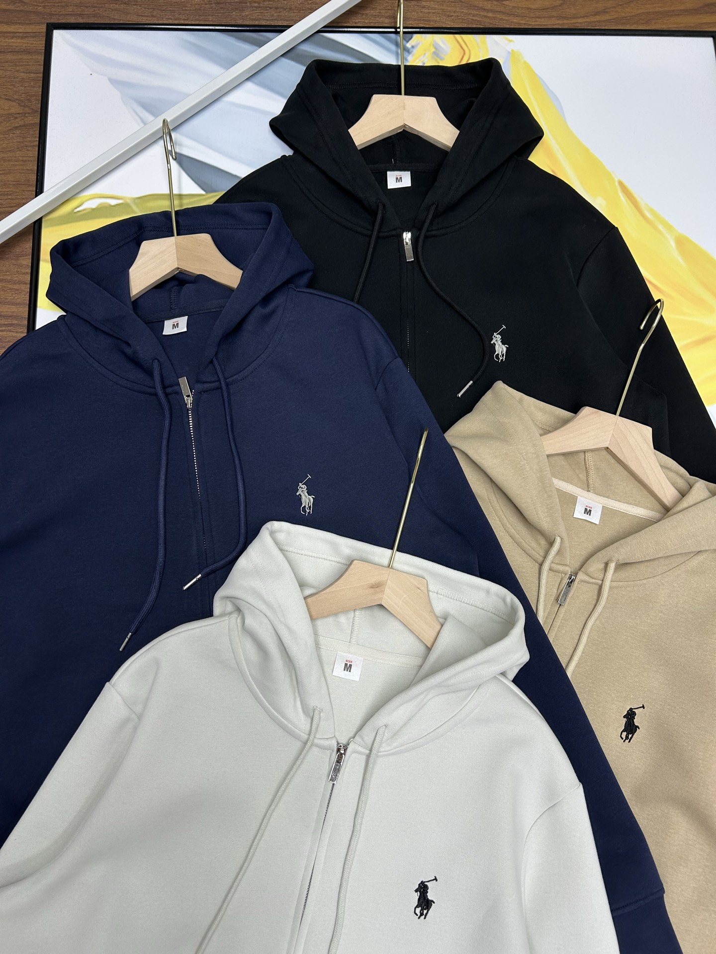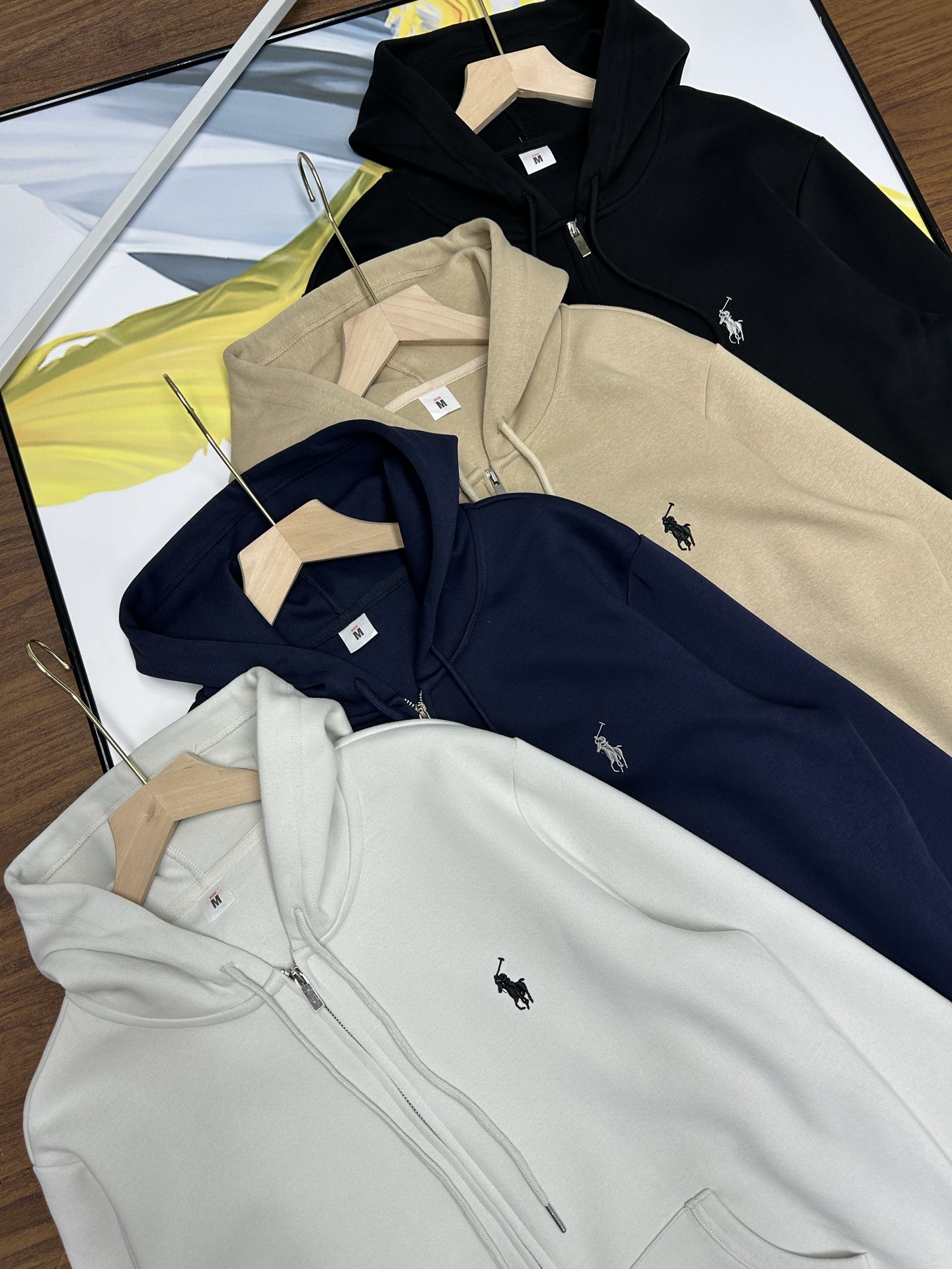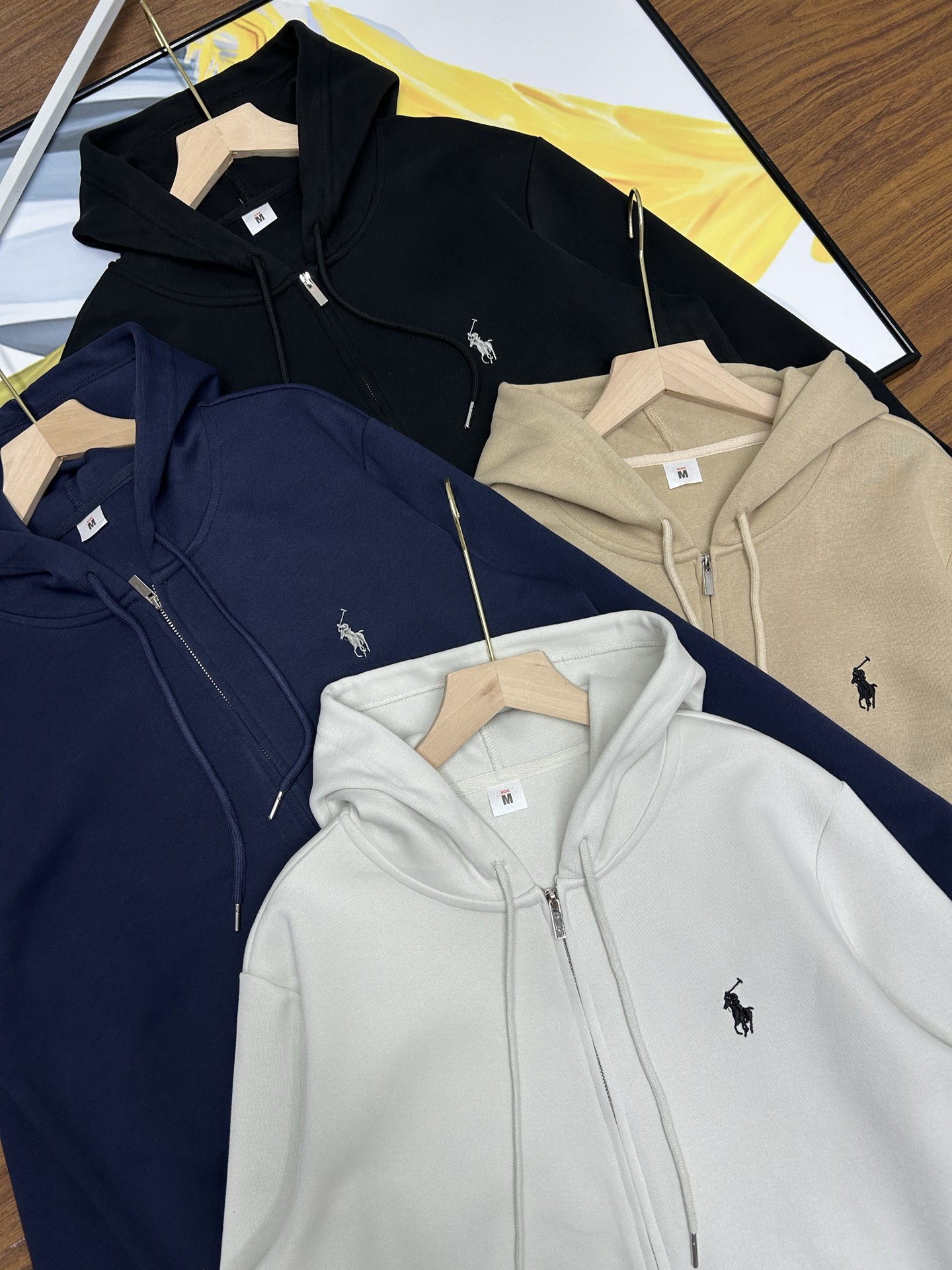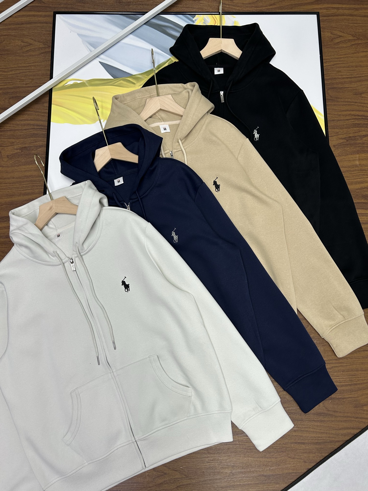 Ralph Lauren embroidered pony hooded sweatshirt, unisex, loose fit. High-quality fabric, precise details. Colors: black, white, khaki, navy. Sizes: M-3XL.