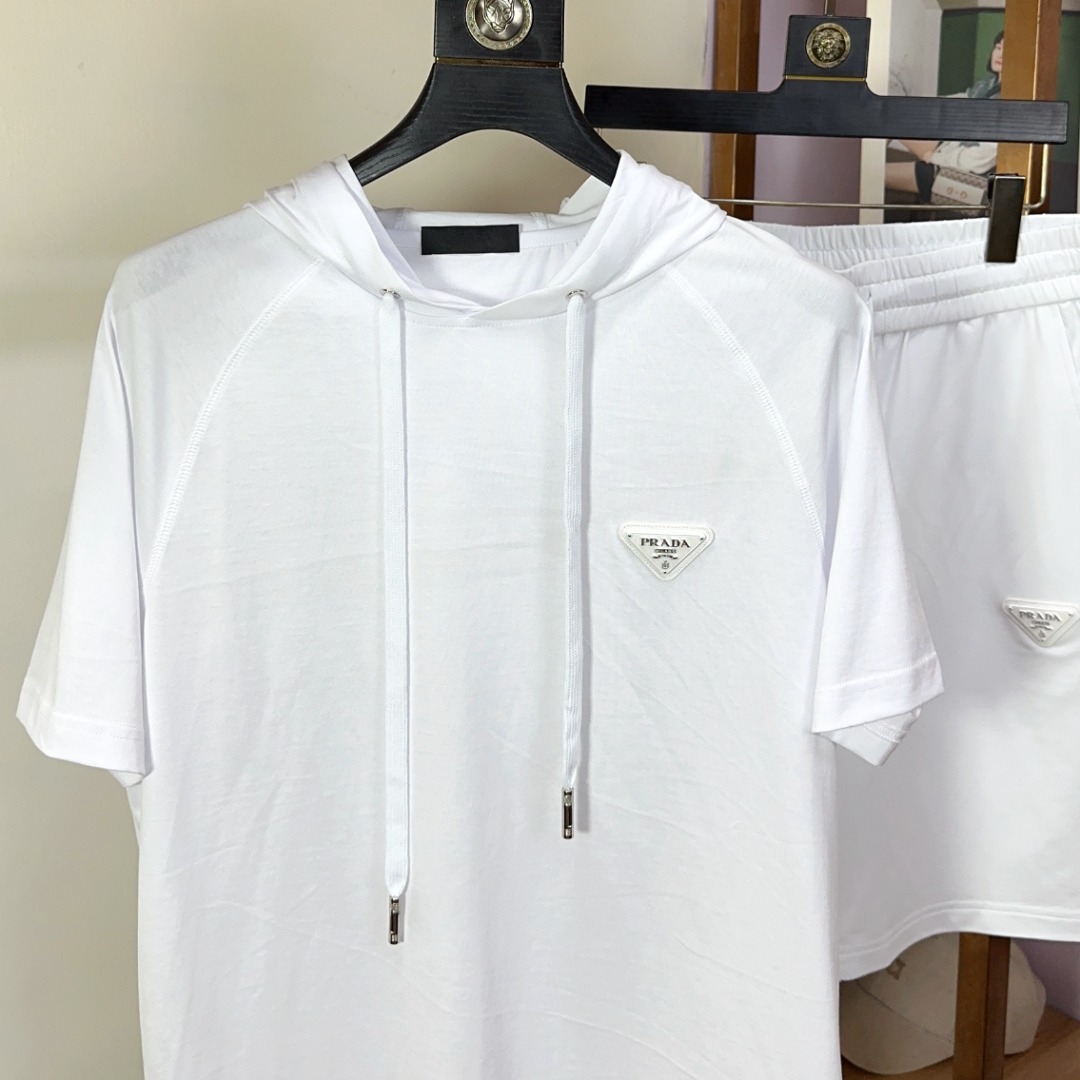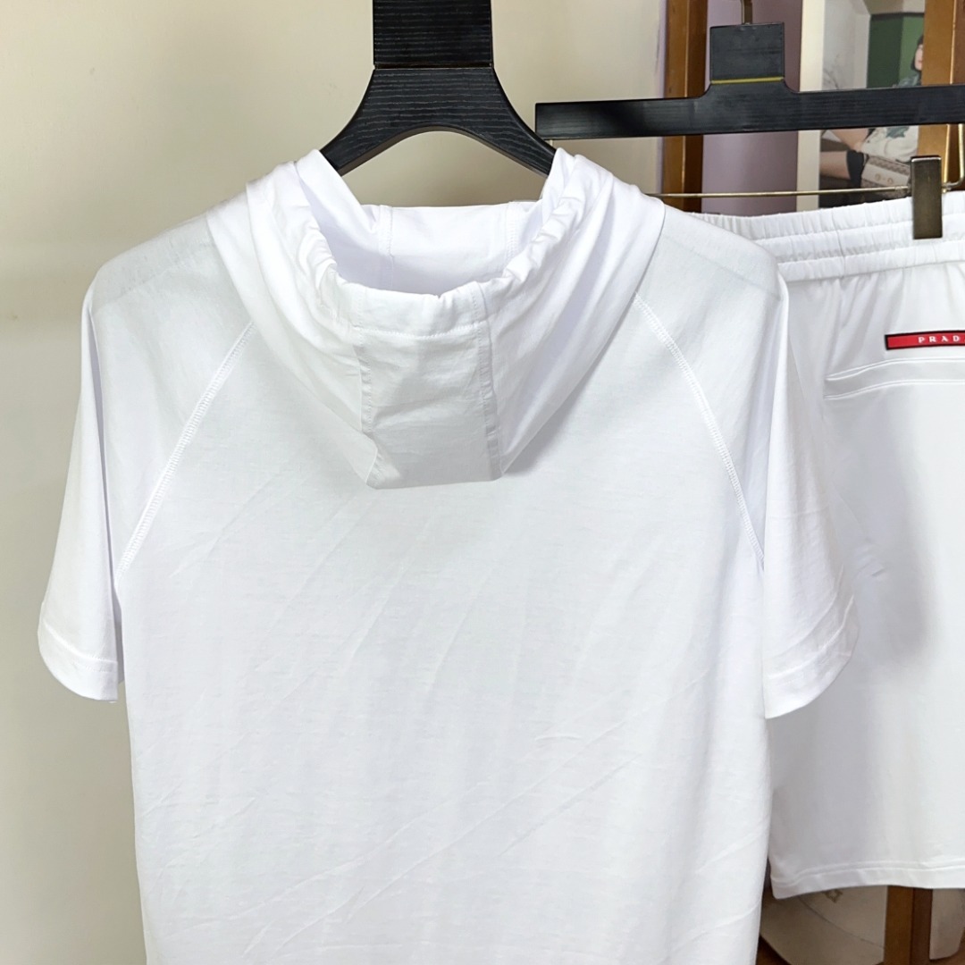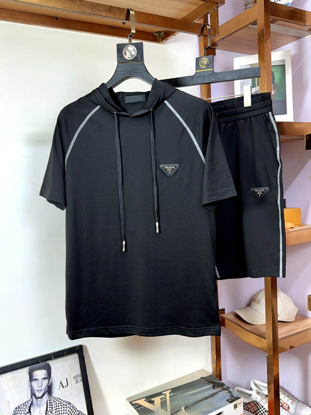 Prada men's short sleeve t-shirt and shorts set. Breathable, comfortable, high-quality details. Brand elements. Great fit. Sizes: M-3XL.