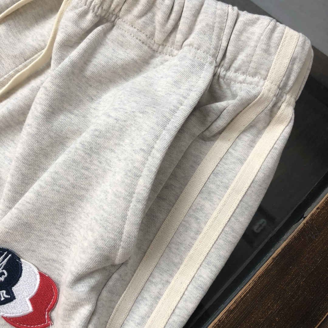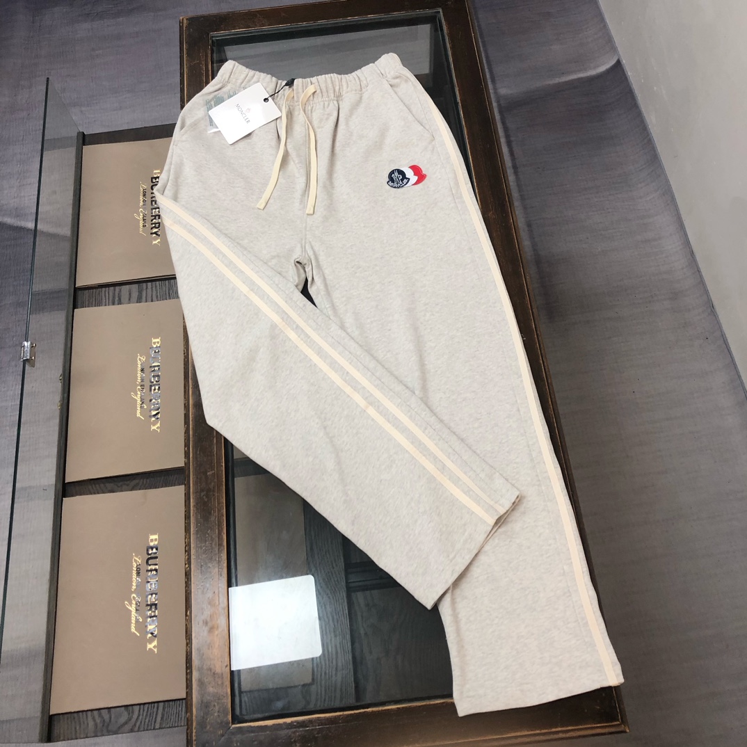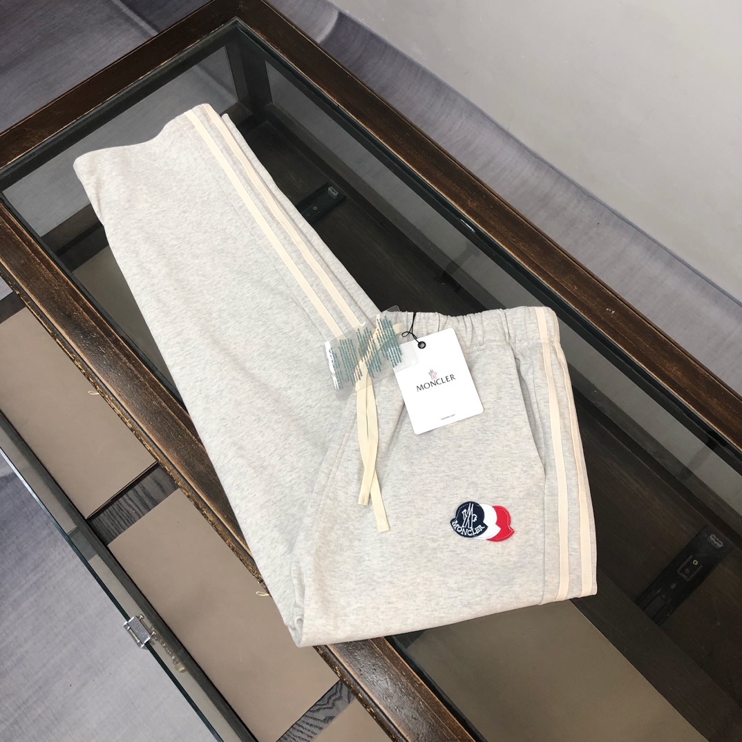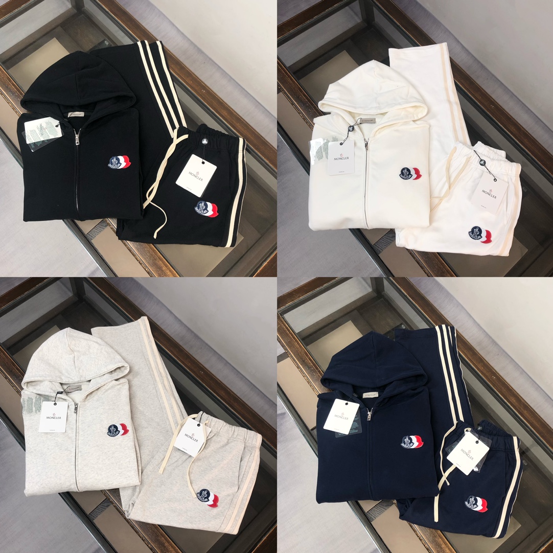 MON*CLER 2025 early autumn couples sweatshirt & straight-leg pants set. Custom 420g cotton. Black, white, blue, gray. Sizes S-XXL.
