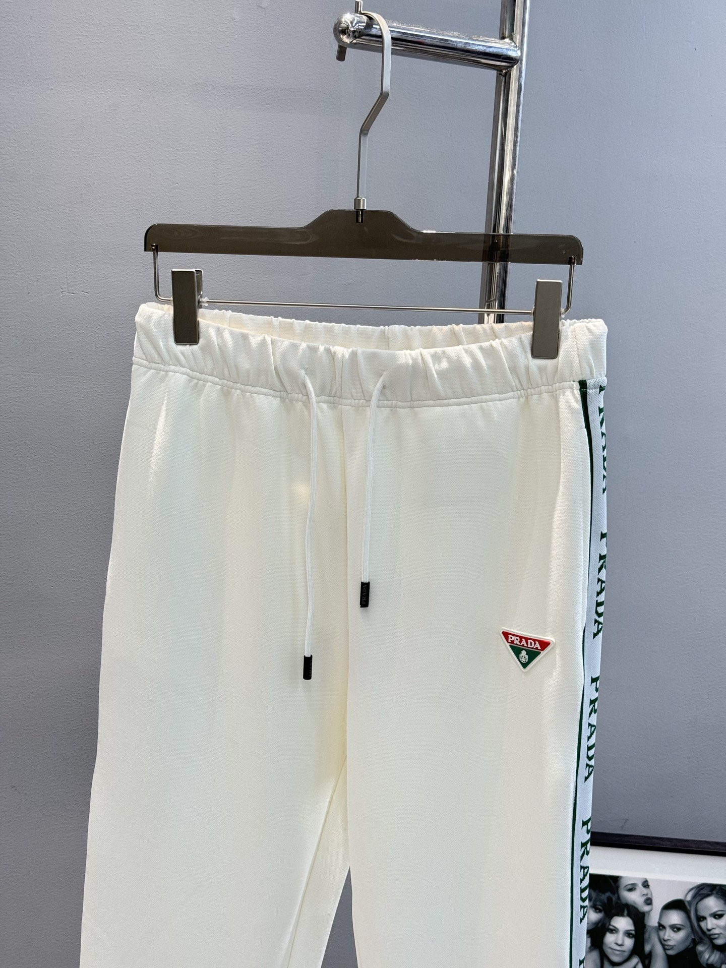 PRADA 25s trendy tracksuit set. Jacket and pants sold separately. 2025 new unisex sportswear with retro style, woven branding, premium fabric. Colors: black, white. Sizes: M-3XL.
