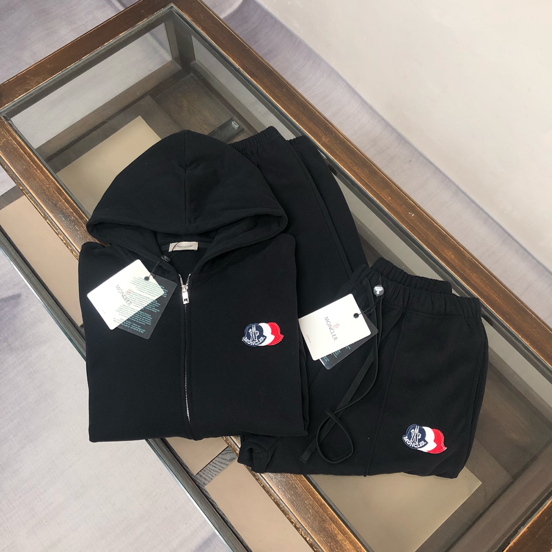 Moncler 2025 early autumn couples sweatshirt and pants set, custom 420g cotton. Colors: black, white, blue, gray. Sizes: S to XXL.