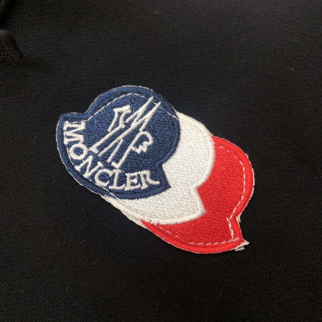 MONCLER 2025 early autumn couples sweatshirt and jogger set. Custom 420g cotton, breathable. Colors: black, white, blue, gray. Sizes: S-XXL.